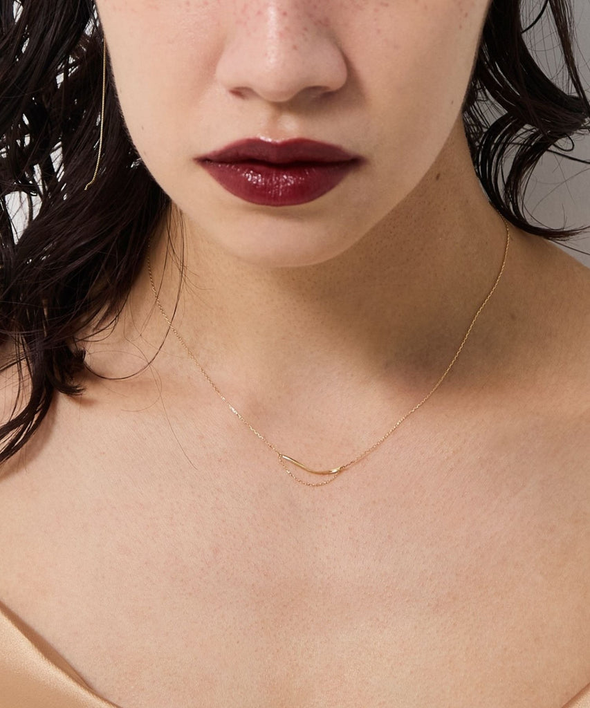 ネックレスの存在が際立ち、コーディネート全体を引き締めてくれます。