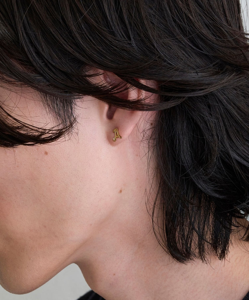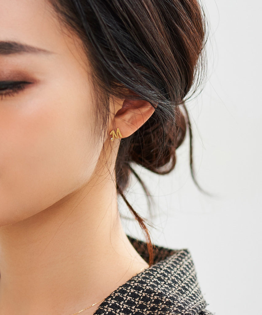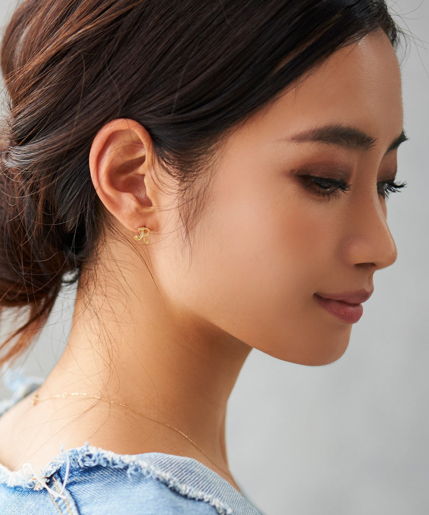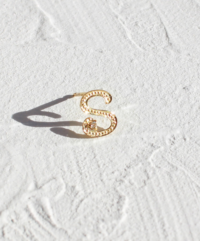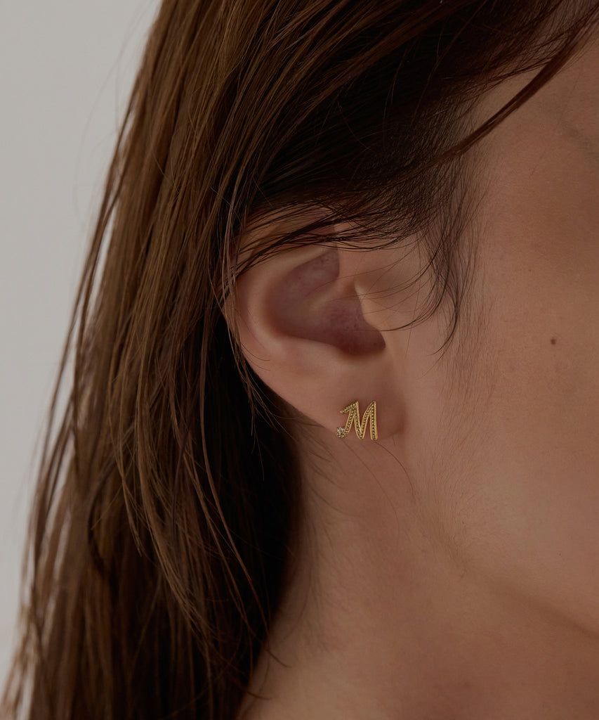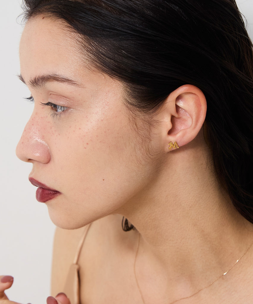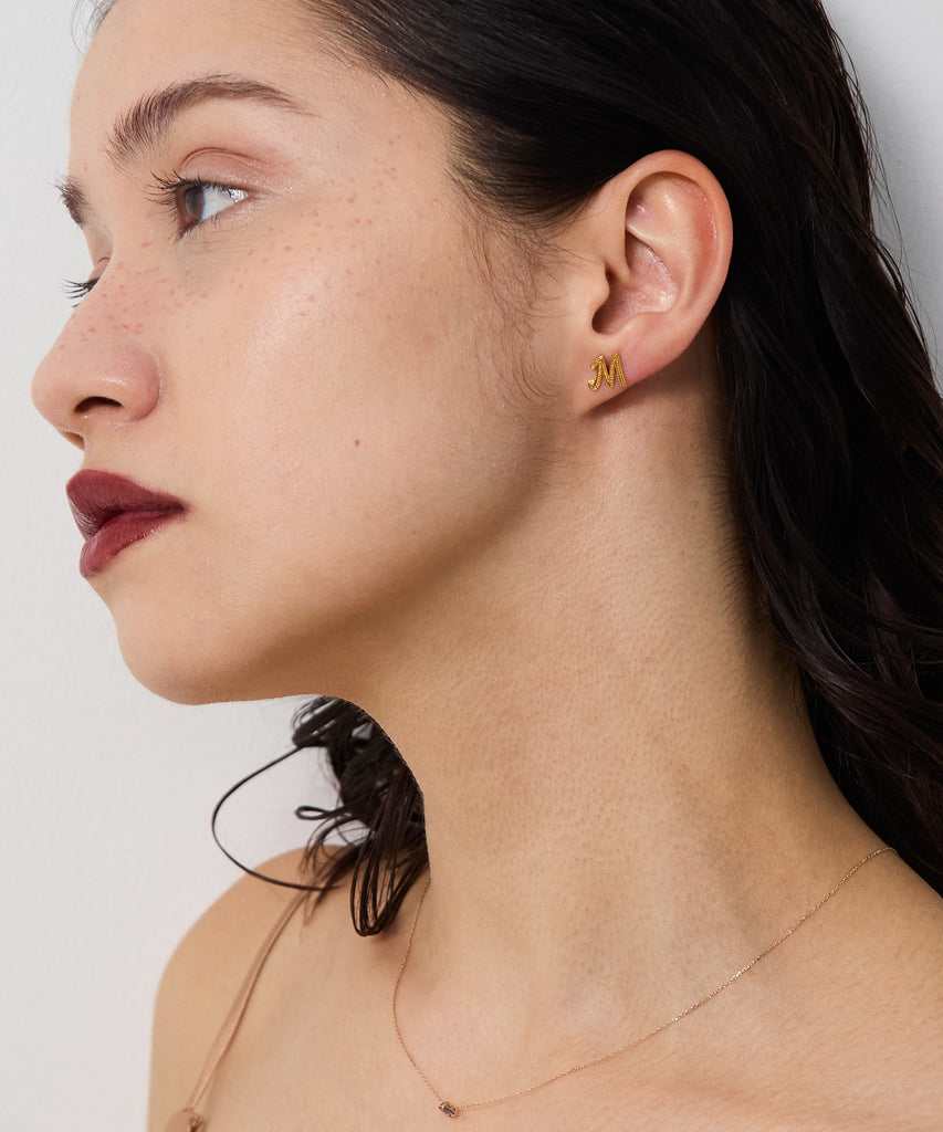 程よく主張するイニシャルモチーフのサイズ感が魅力的。片耳販売なので着け方のアレンジもお楽しみいただけます。
