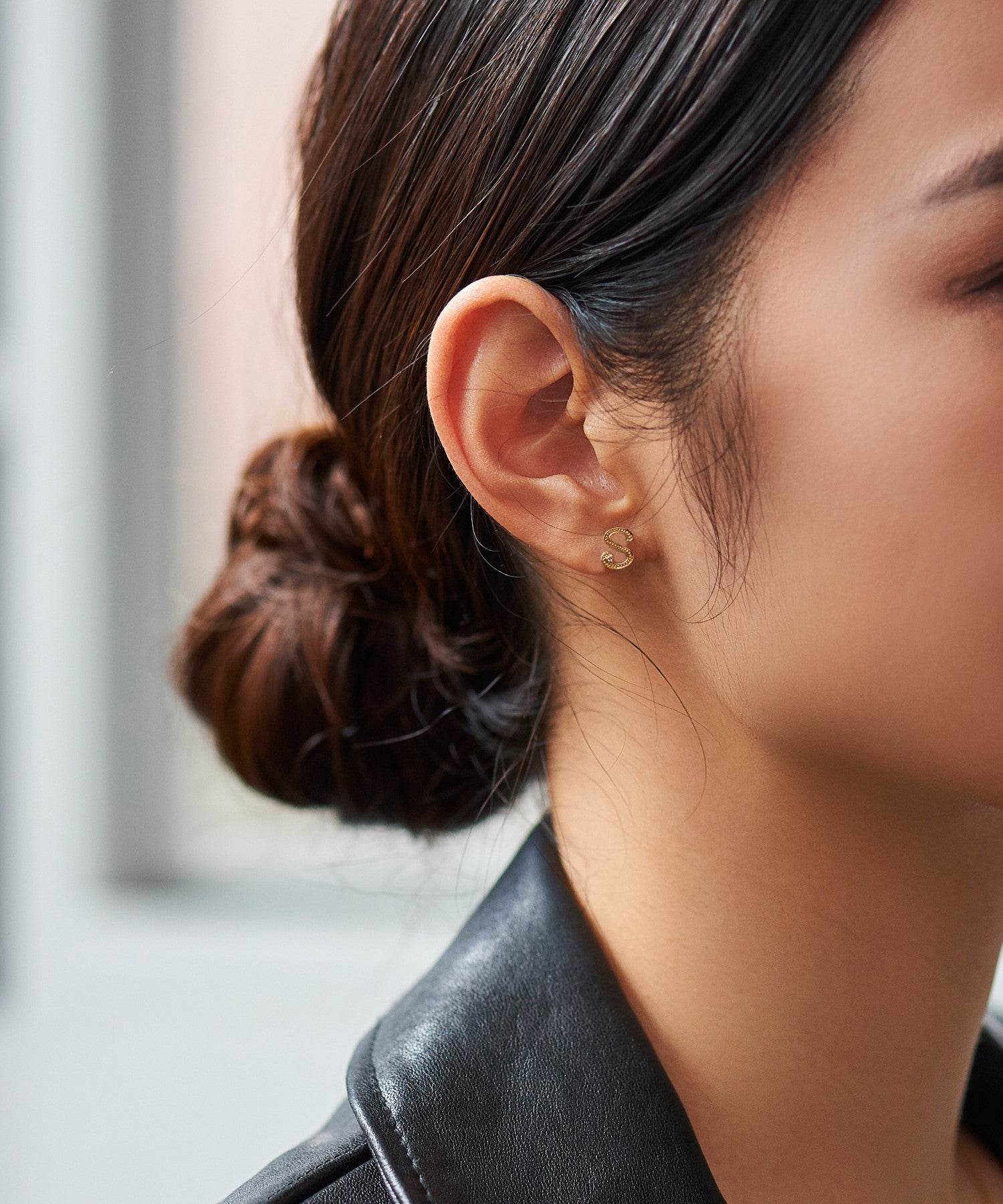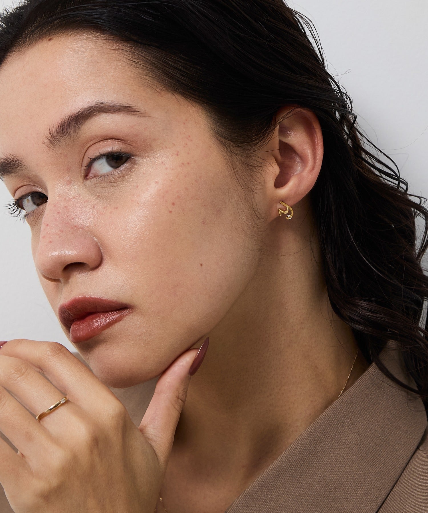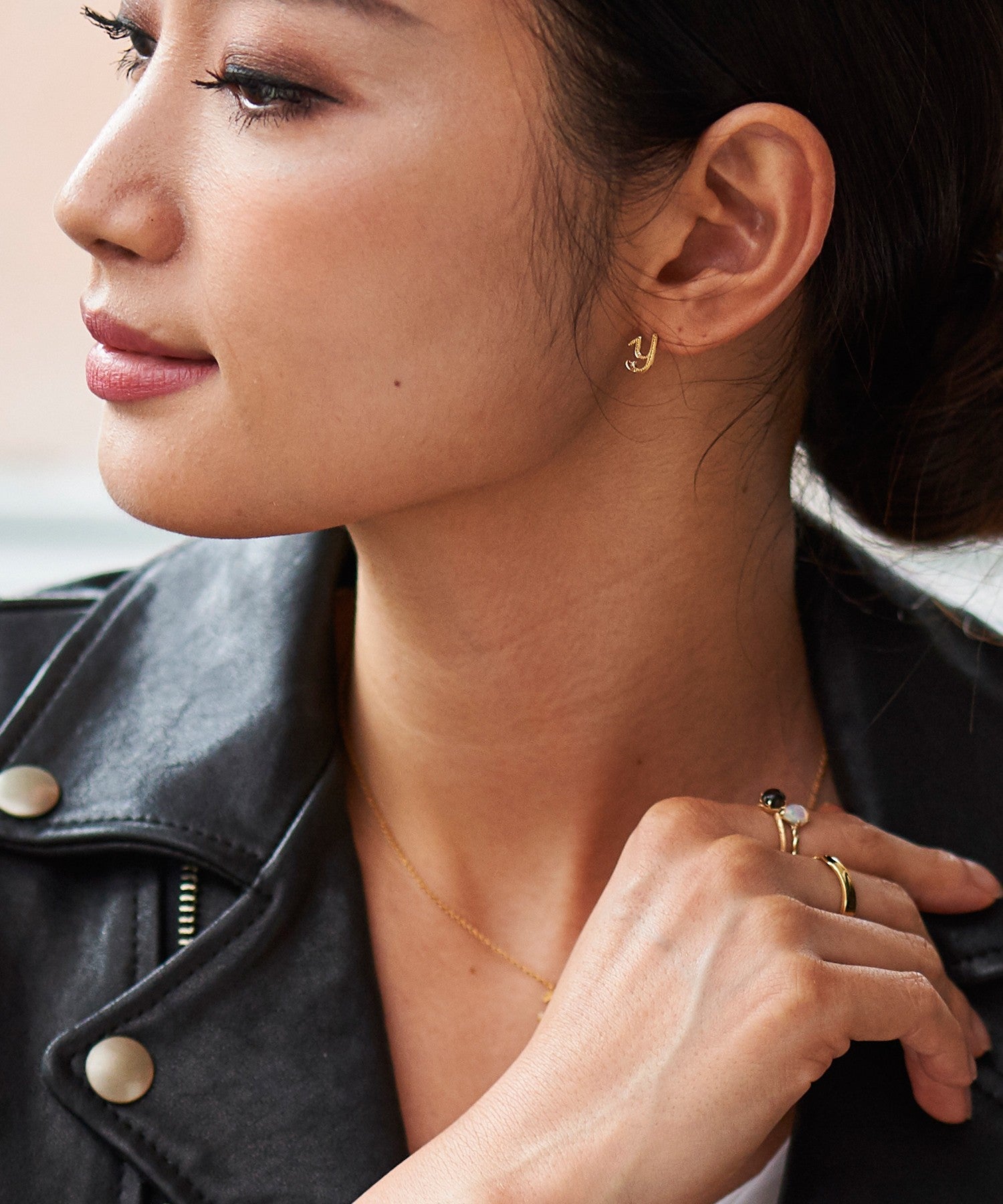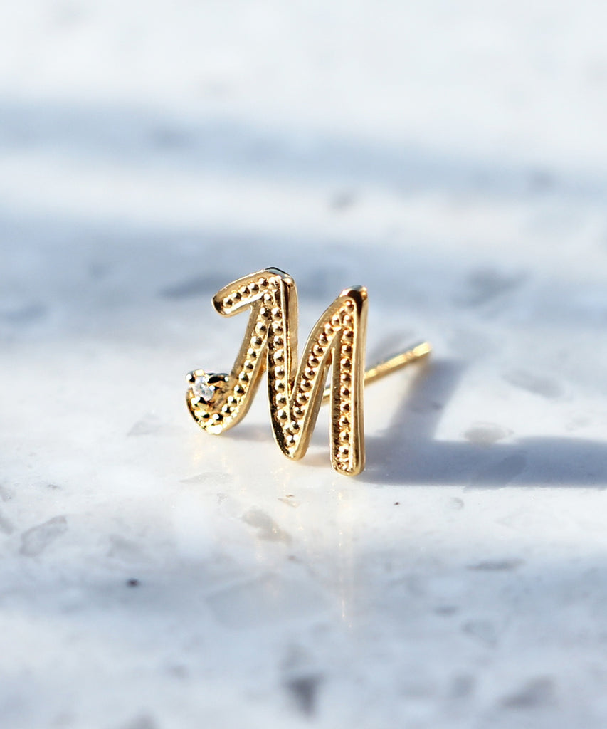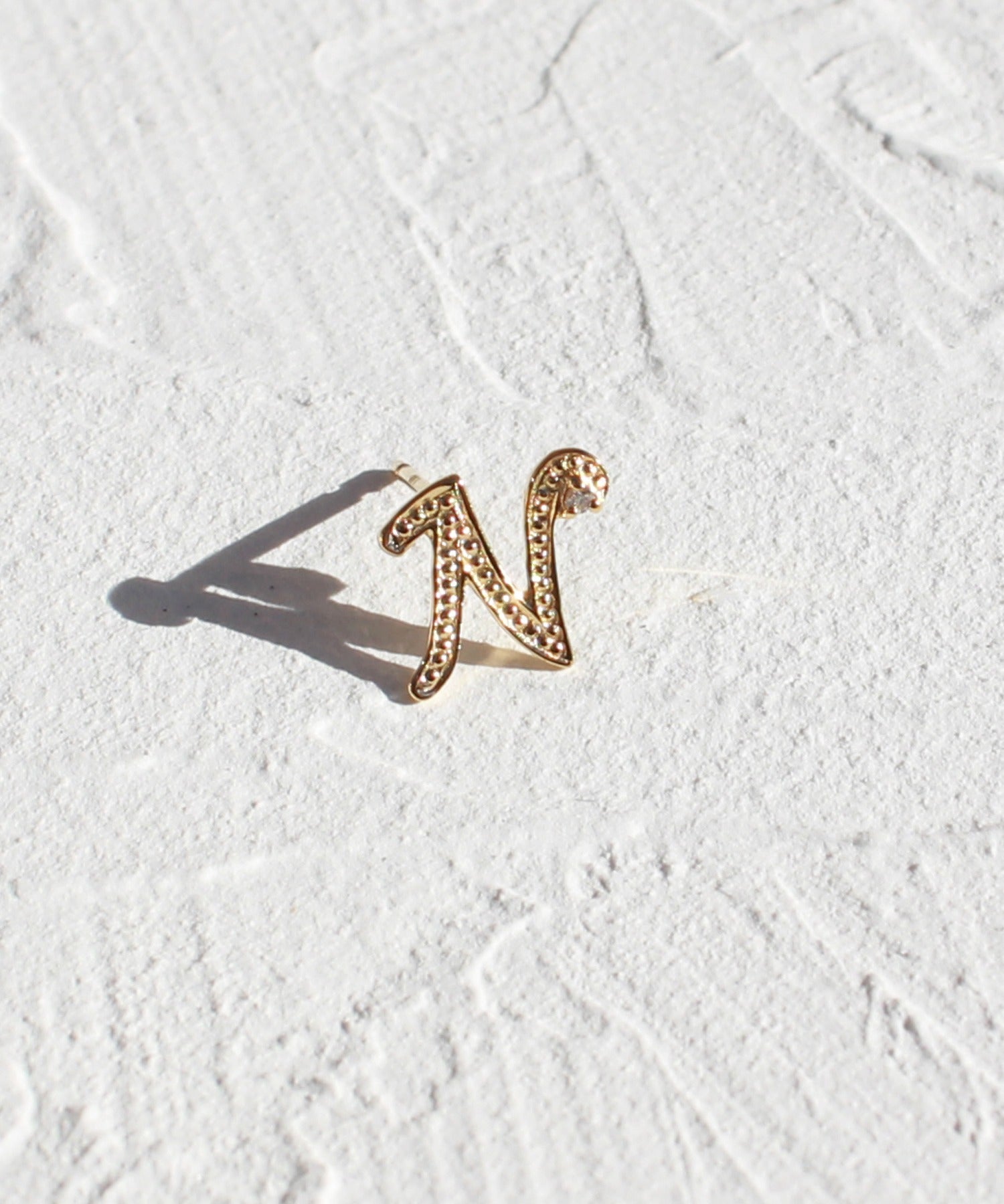 程よく主張するイニシャルモチーフのサイズ感が魅力的。片耳販売なので着け方のアレンジもお楽しみいただけます。
