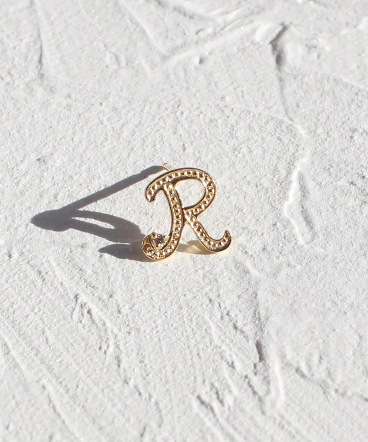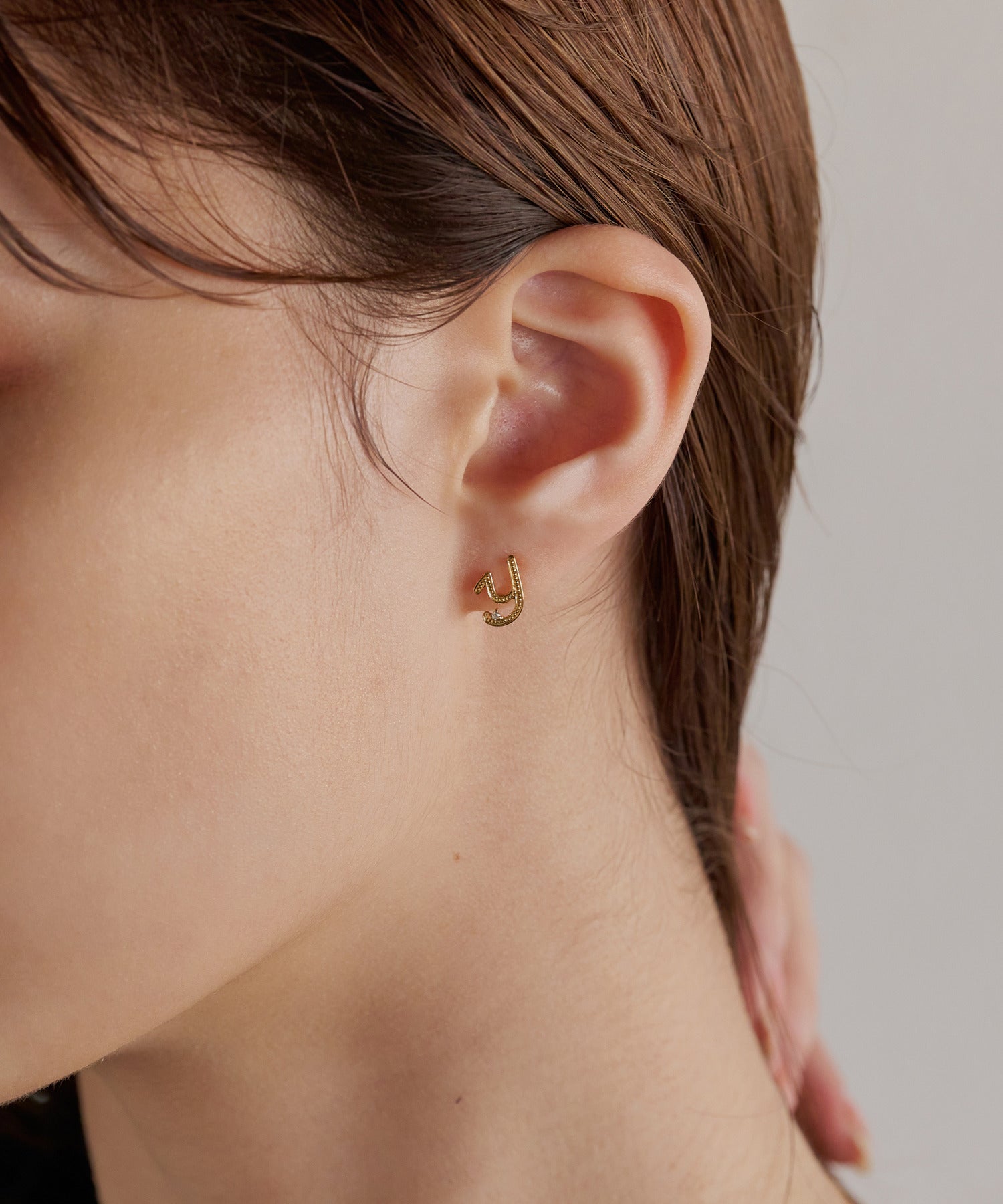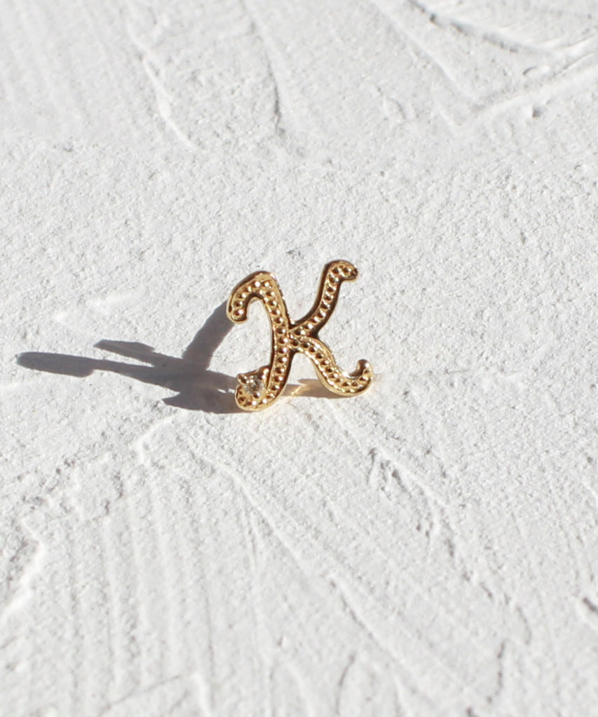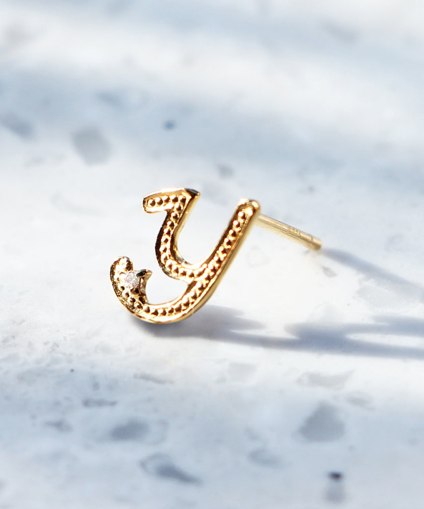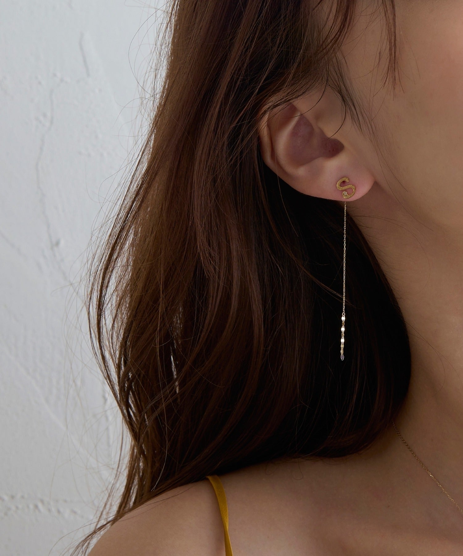 程よく主張するイニシャルモチーフのサイズ感が魅力的。片耳販売なので着け方のアレンジもお楽しみいただけます。