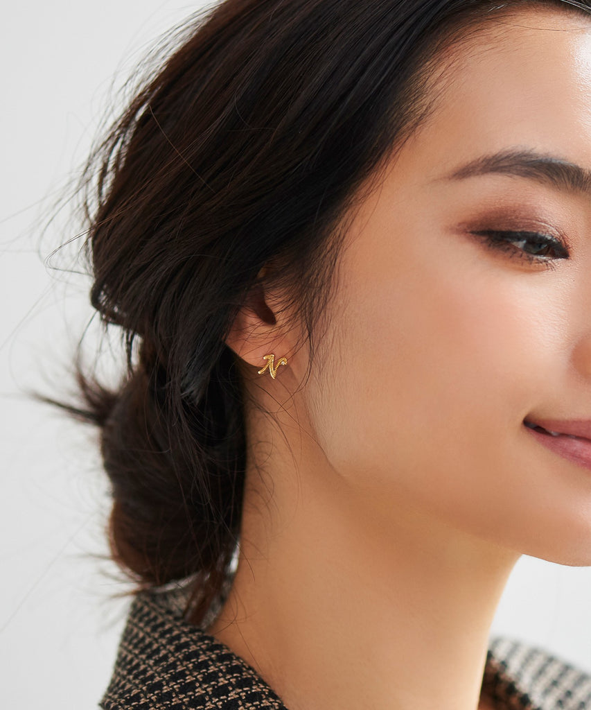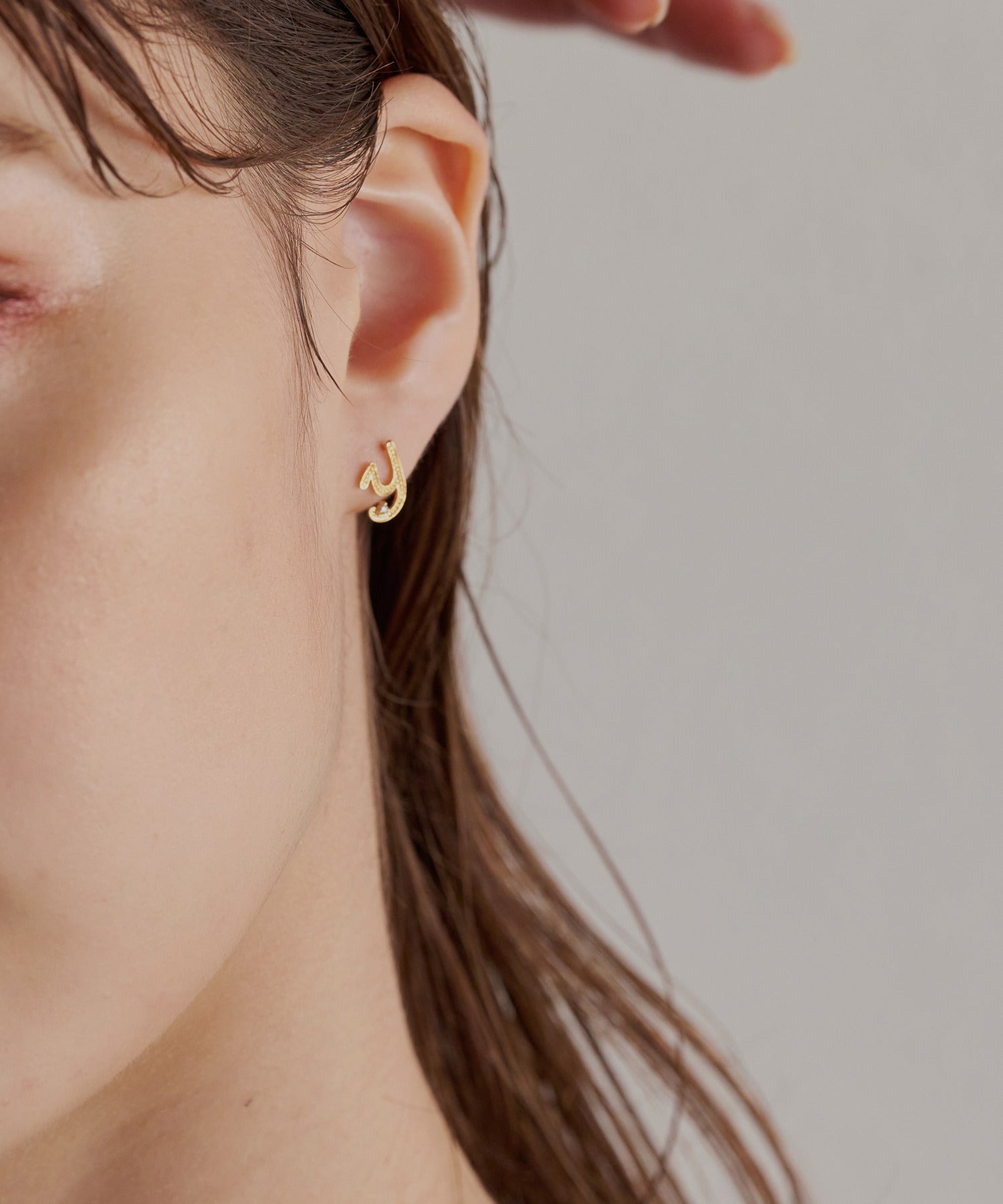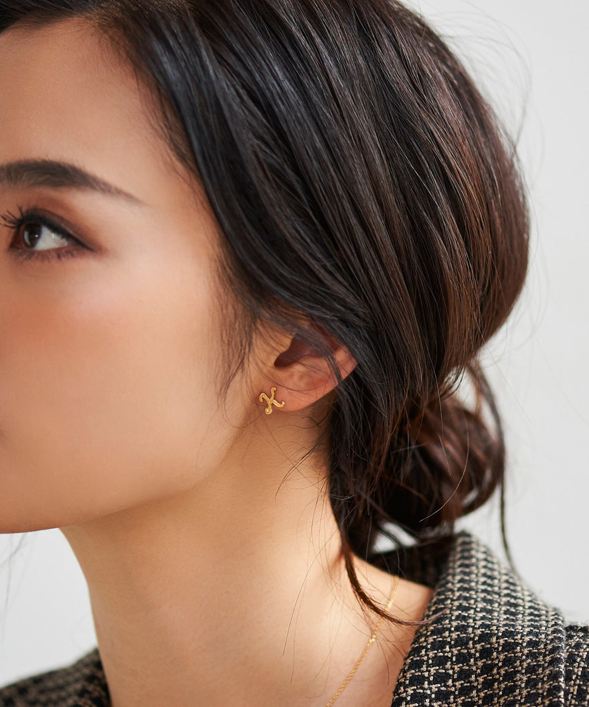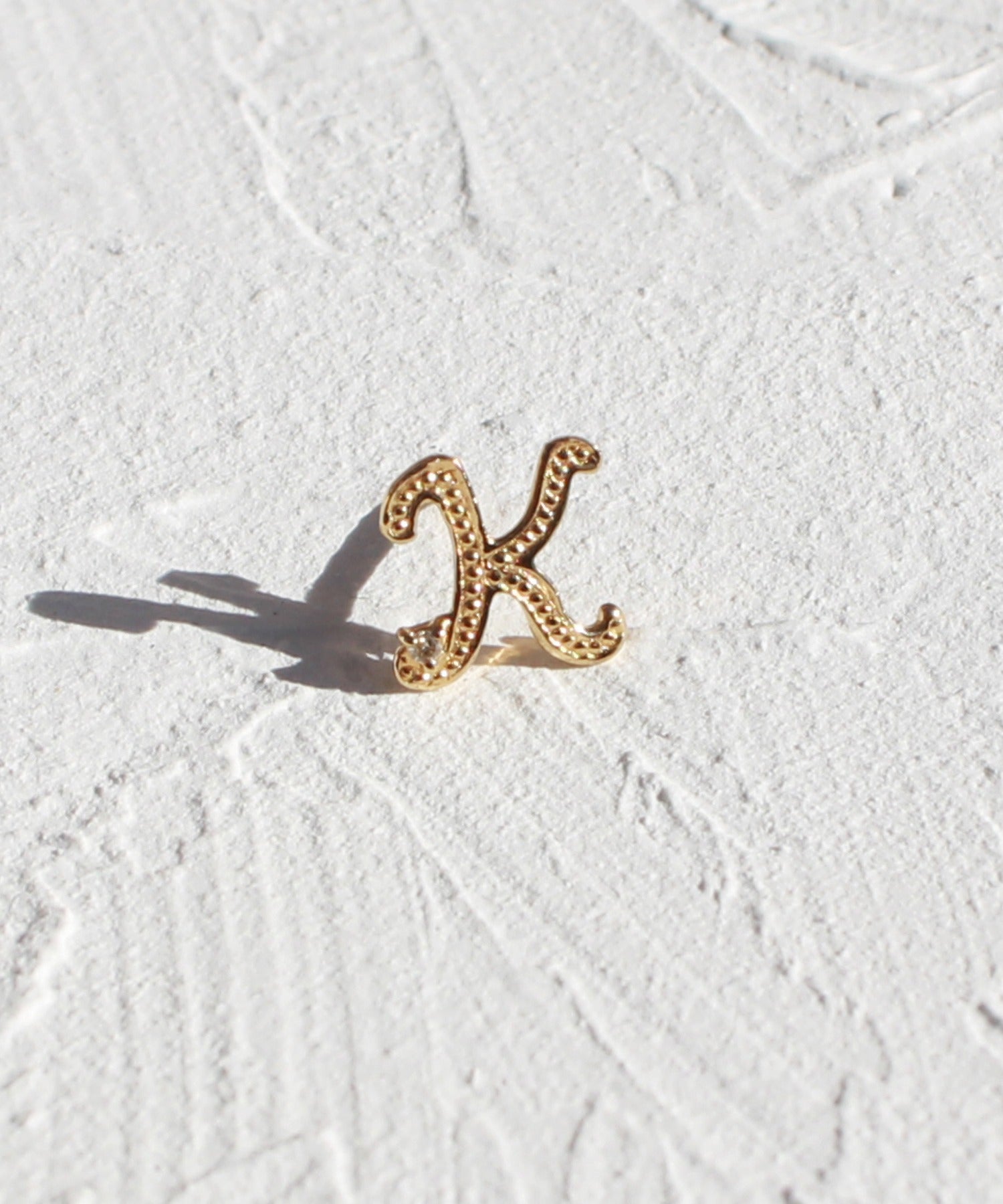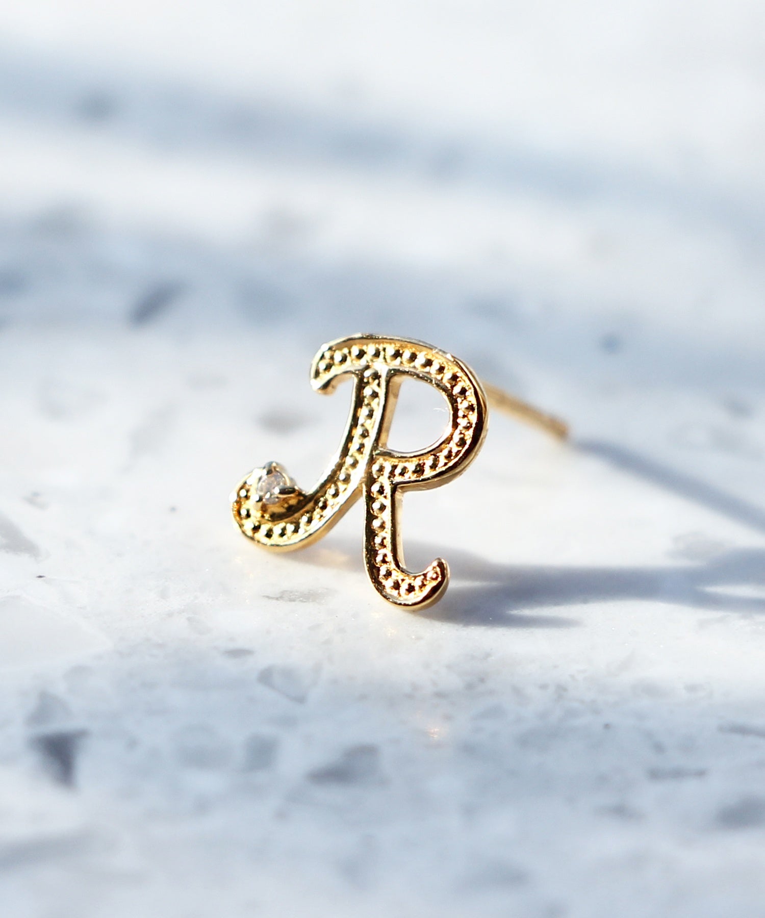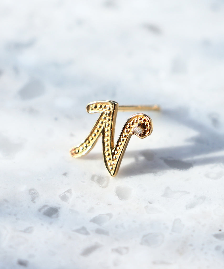 程よく主張するイニシャルモチーフのサイズ感が魅力的。片耳販売なので着け方のアレンジもお楽しみいただけます。