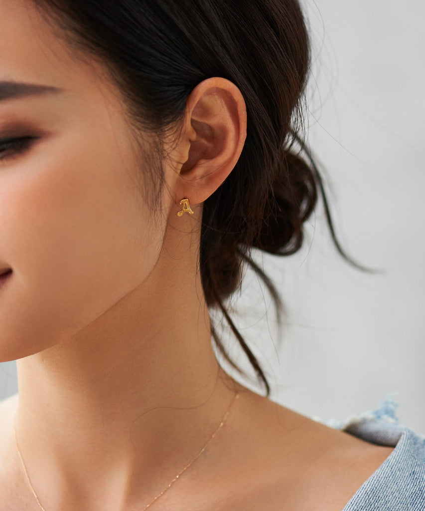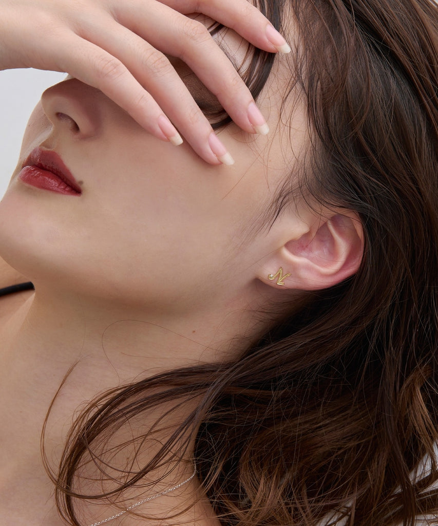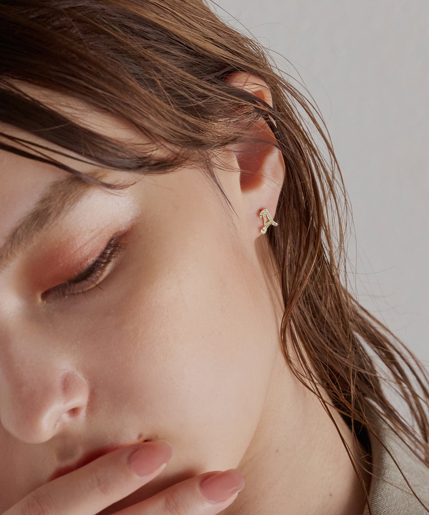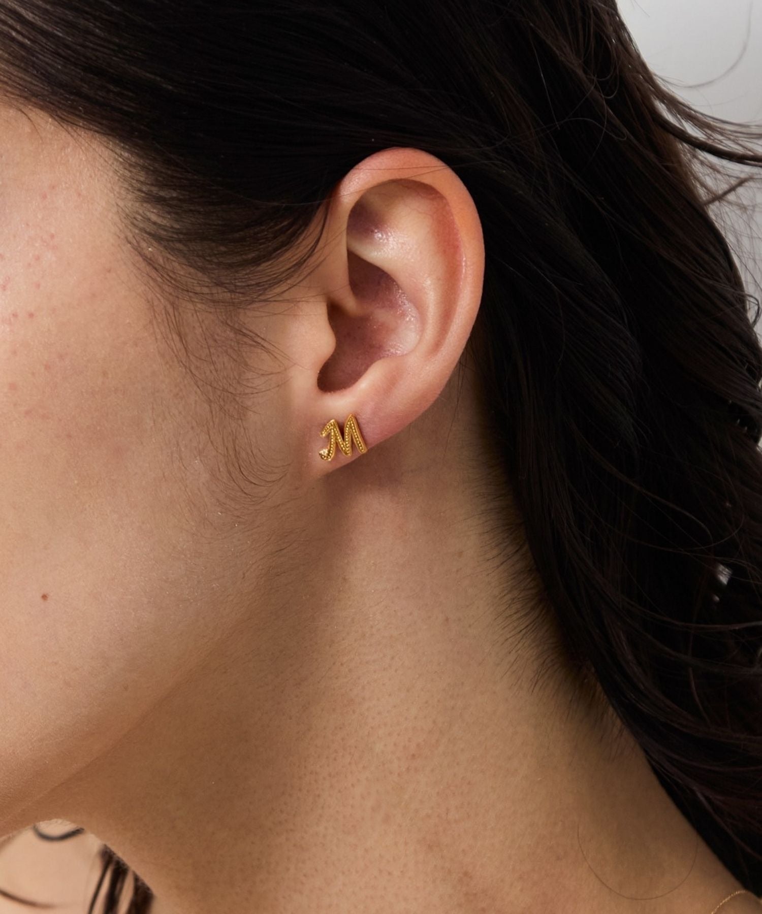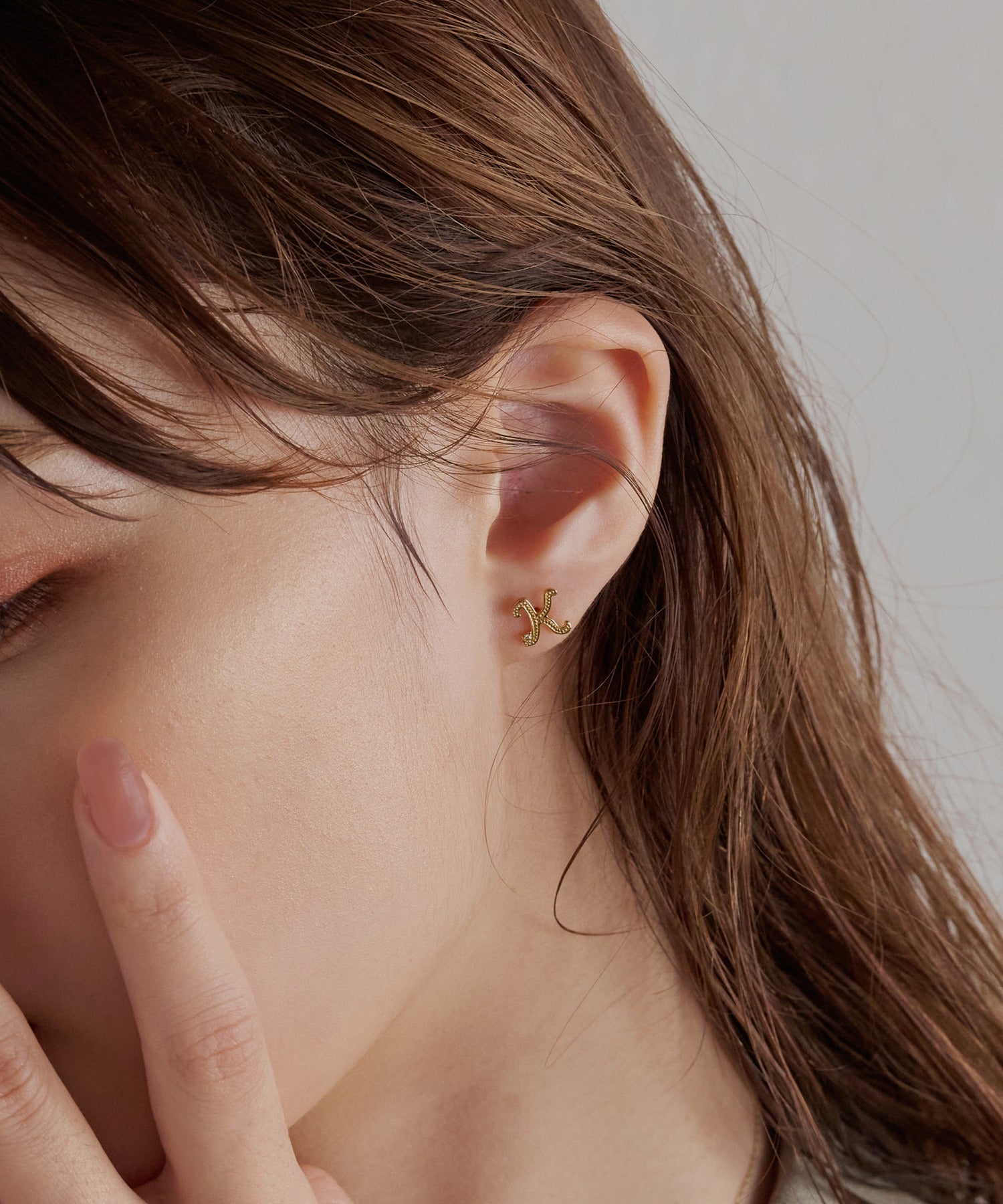 程よく主張するイニシャルモチーフのサイズ感が魅力的。片耳販売なので着け方のアレンジもお楽しみいただけます。