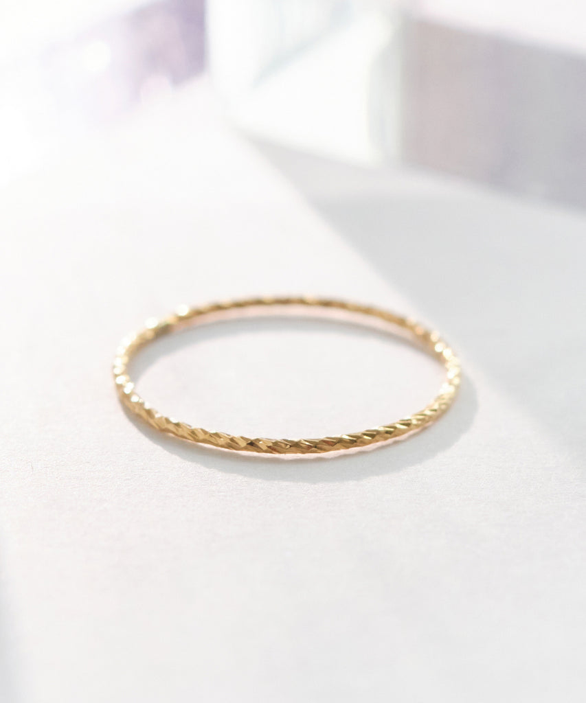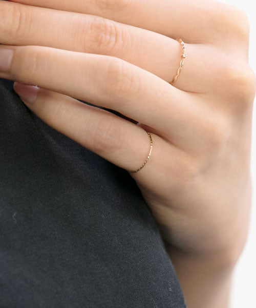 細かなカットを施した極細のK18ゴールド素材ピンキーリング。