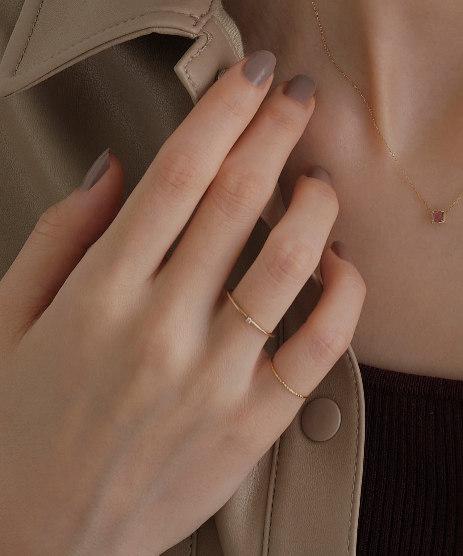 華奢なデザインと繊細な輝きが魅力の、人気NO.1アイテムです。お守りのようにいつも身に着けられる程よい存在感と指に馴染む華奢さがいつでも喜ばれます。