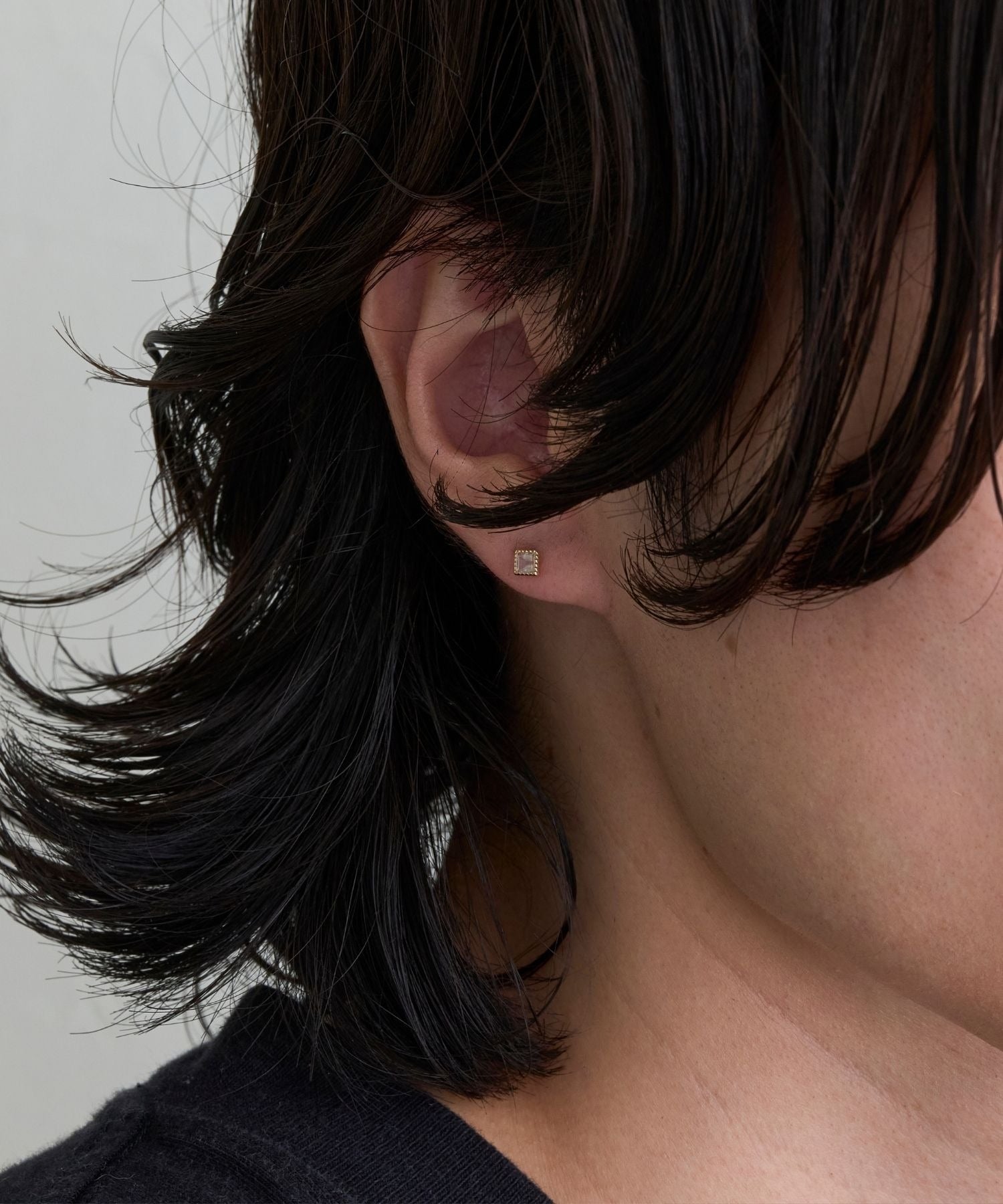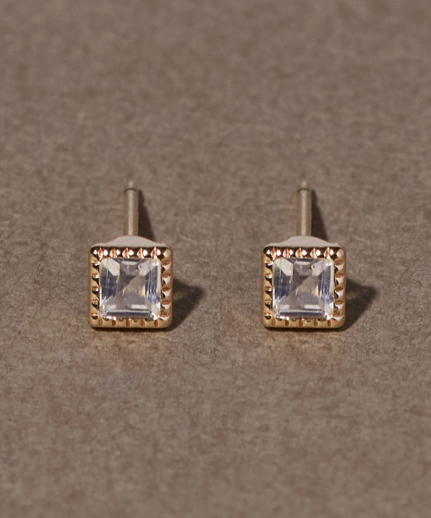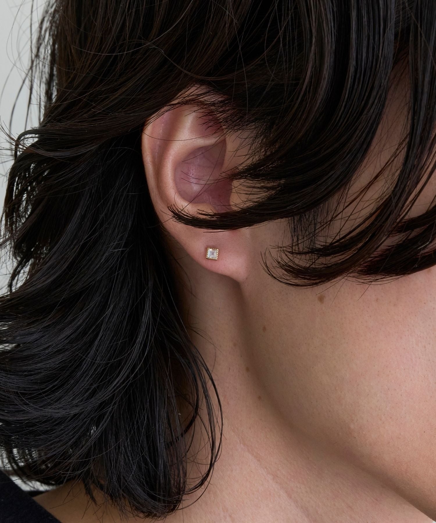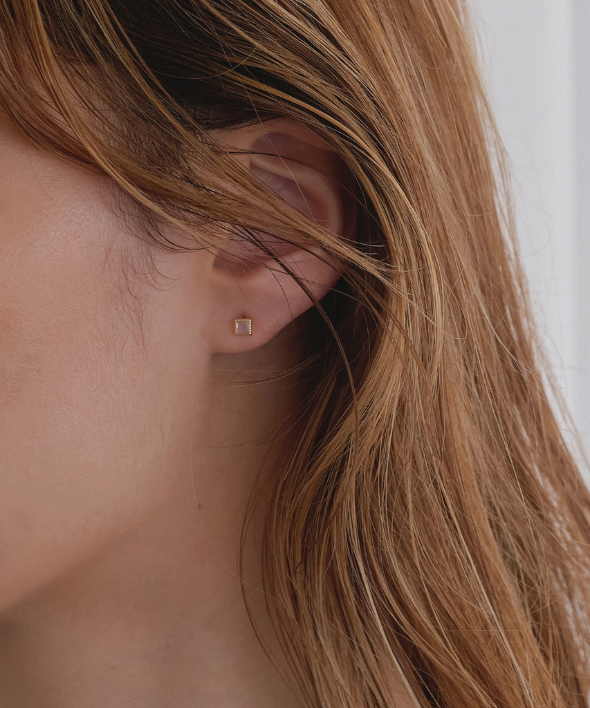 明るくすっきりとしたストーンが耳元に洗練されたアクセントを与えるプチピアス