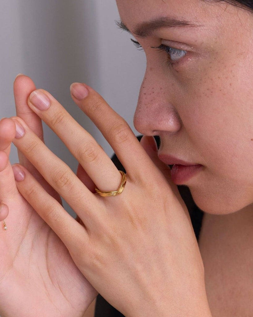 一粒のダイヤモンドがさりげなく輝き、女性らしい手元を演出します。毎日身に着けていたくなるようなベーシックデザインは、日常使いに最適です。