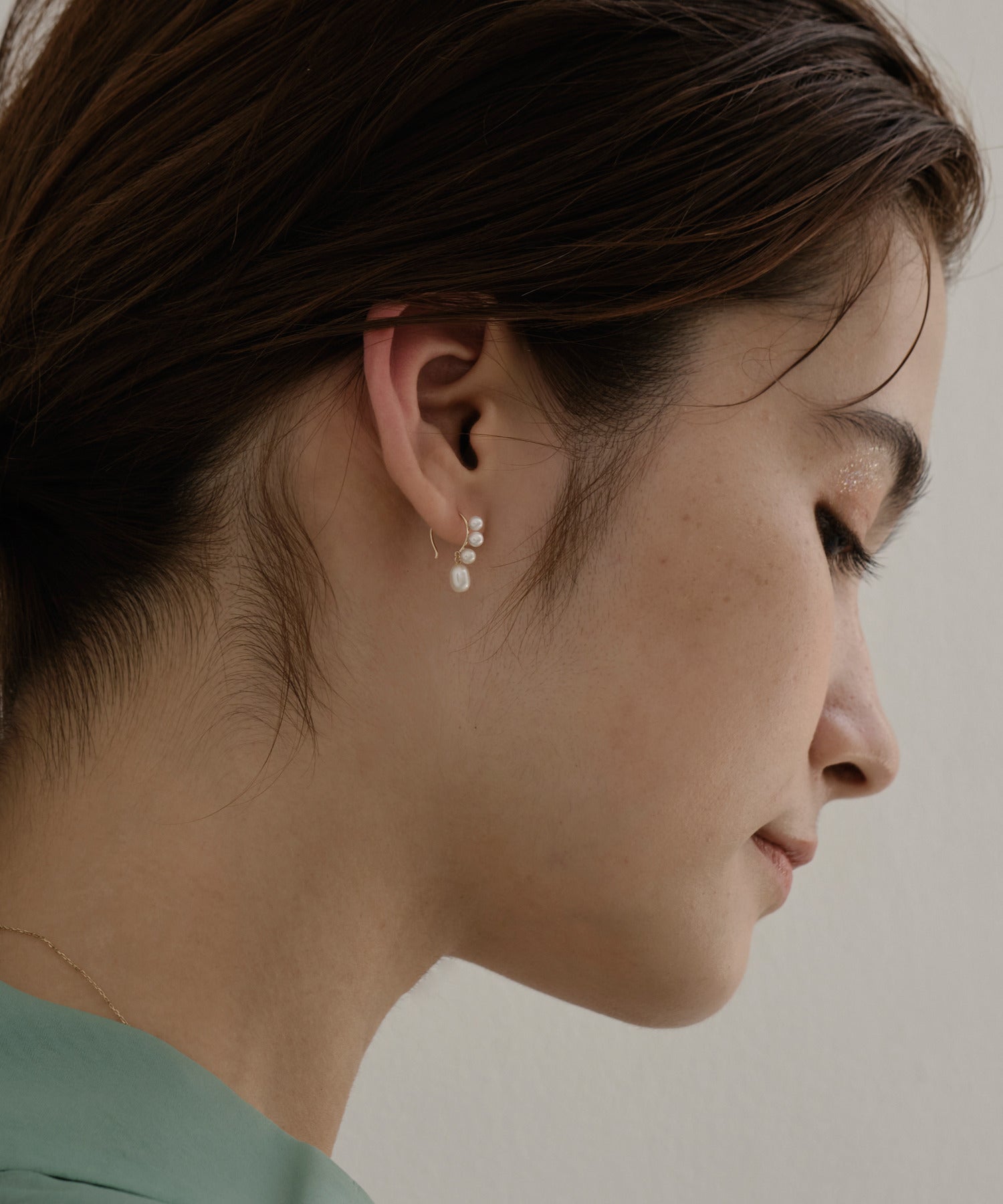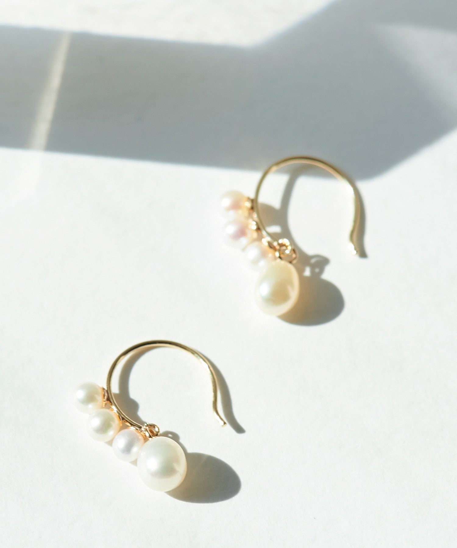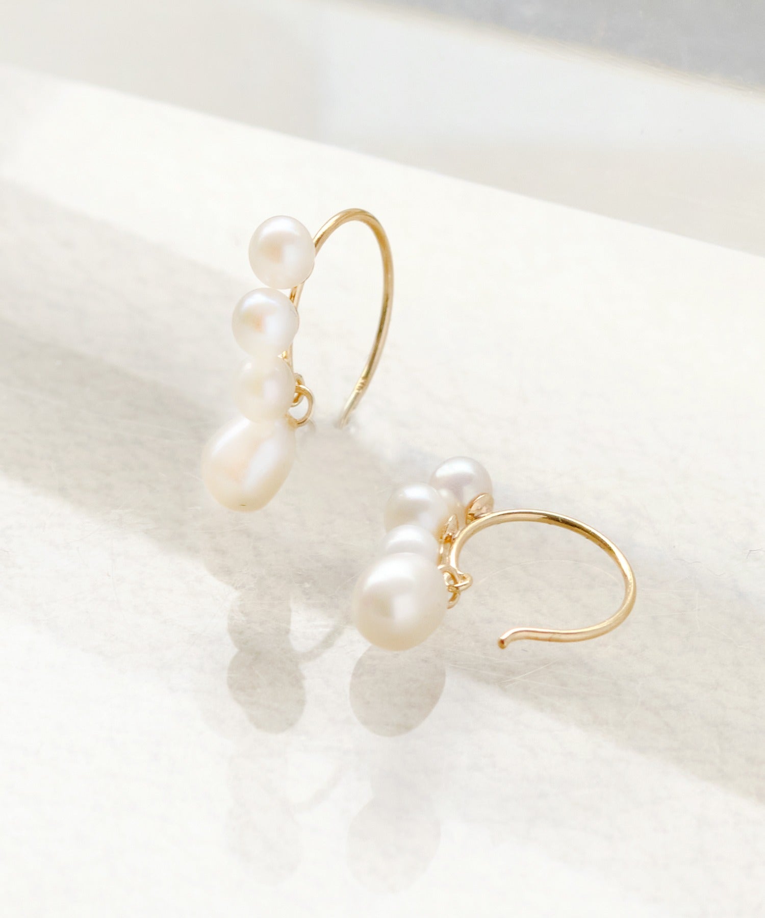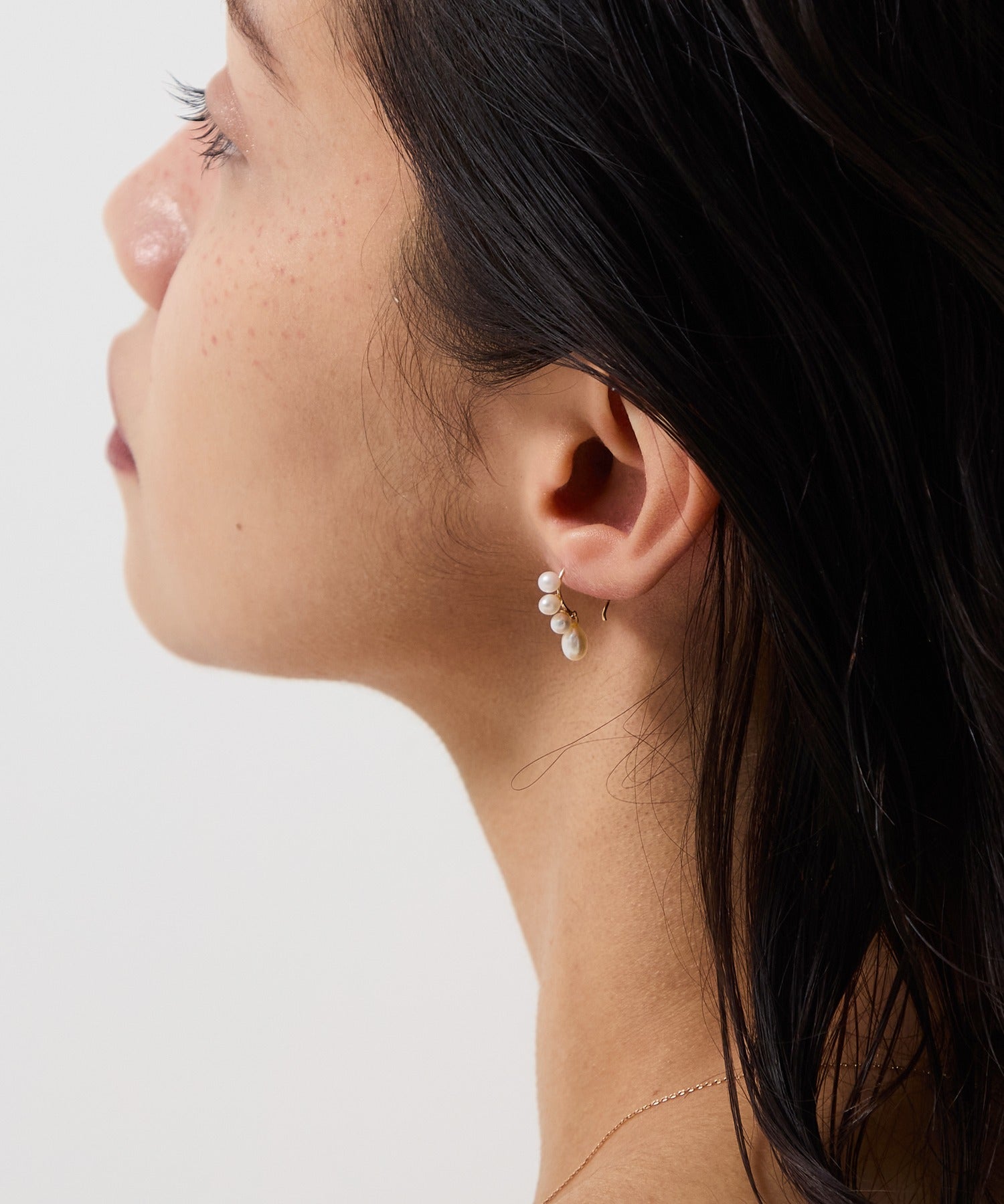 小さく並んで実った果実のような淡水パールが可憐な印象のフックピアス。