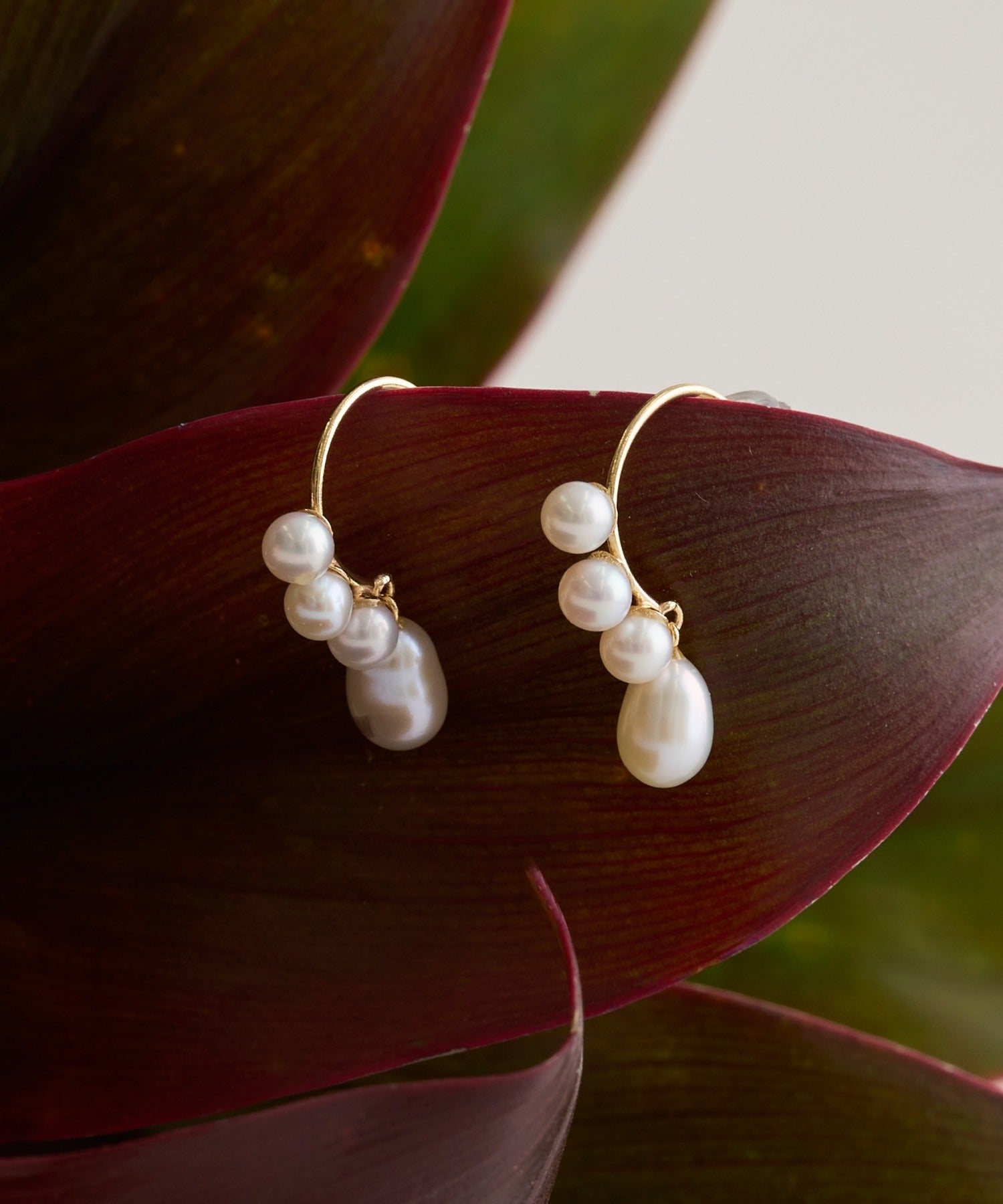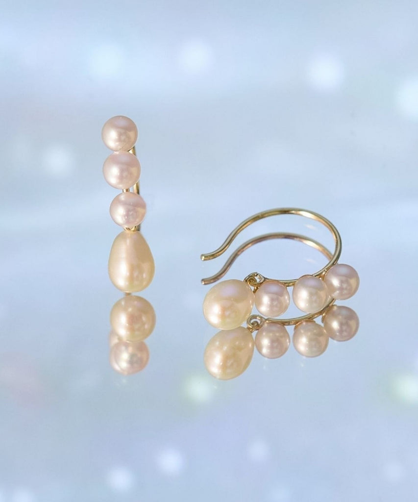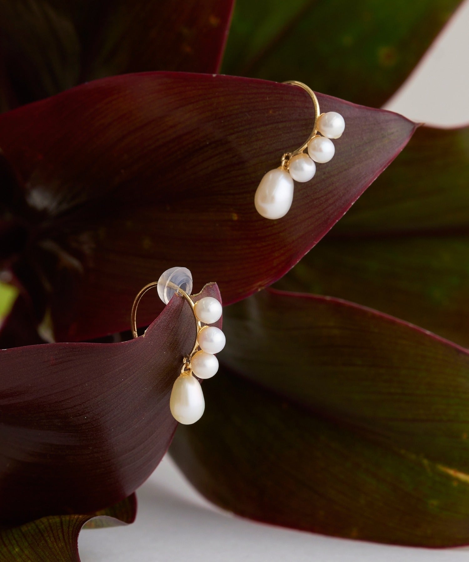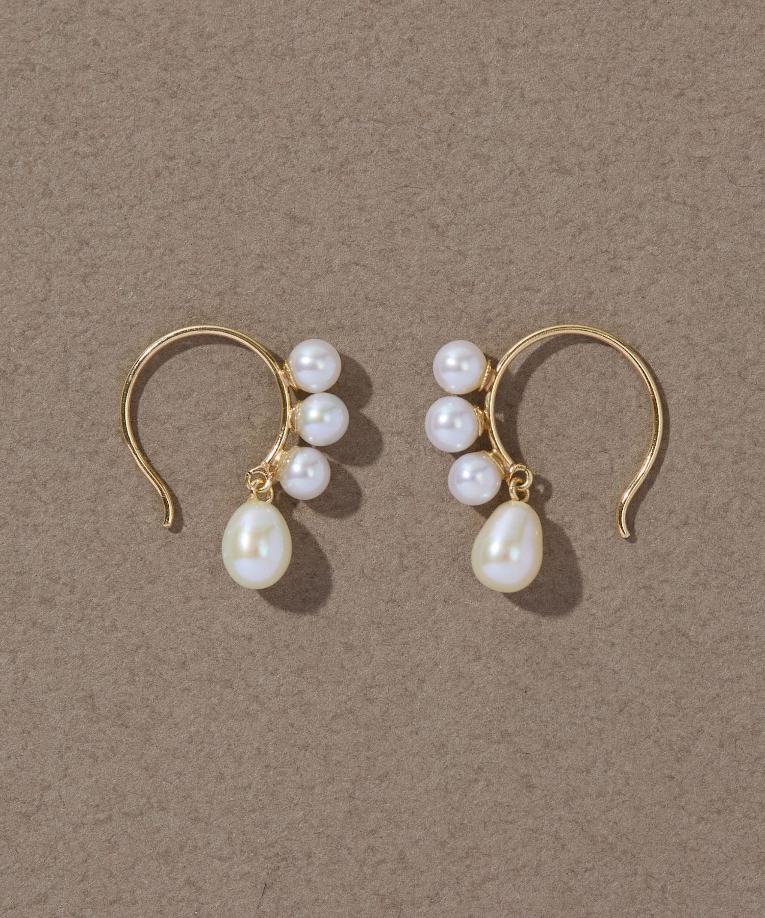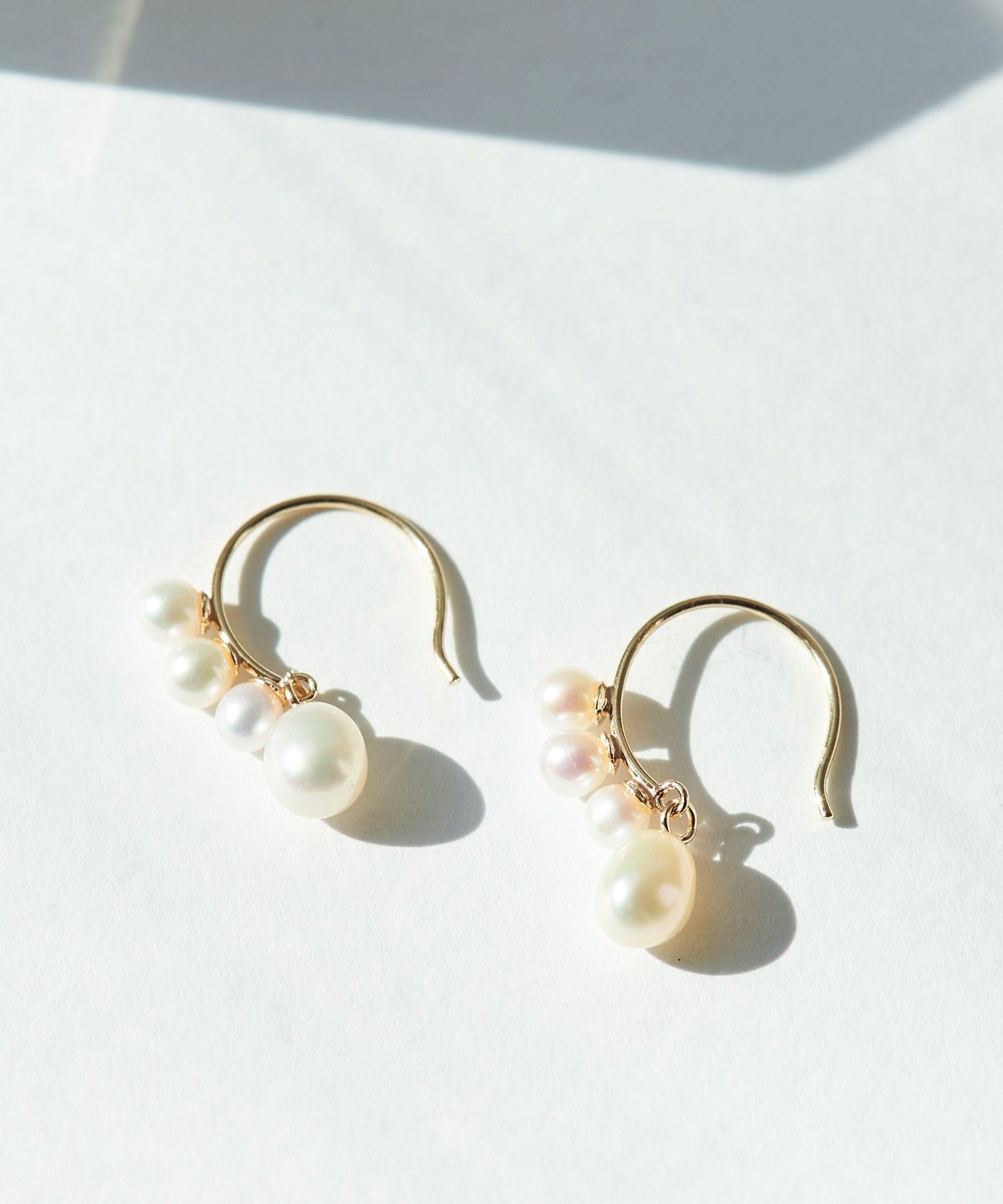 小さく並んで実った果実のような淡水パールが可憐な印象のフックピアス。