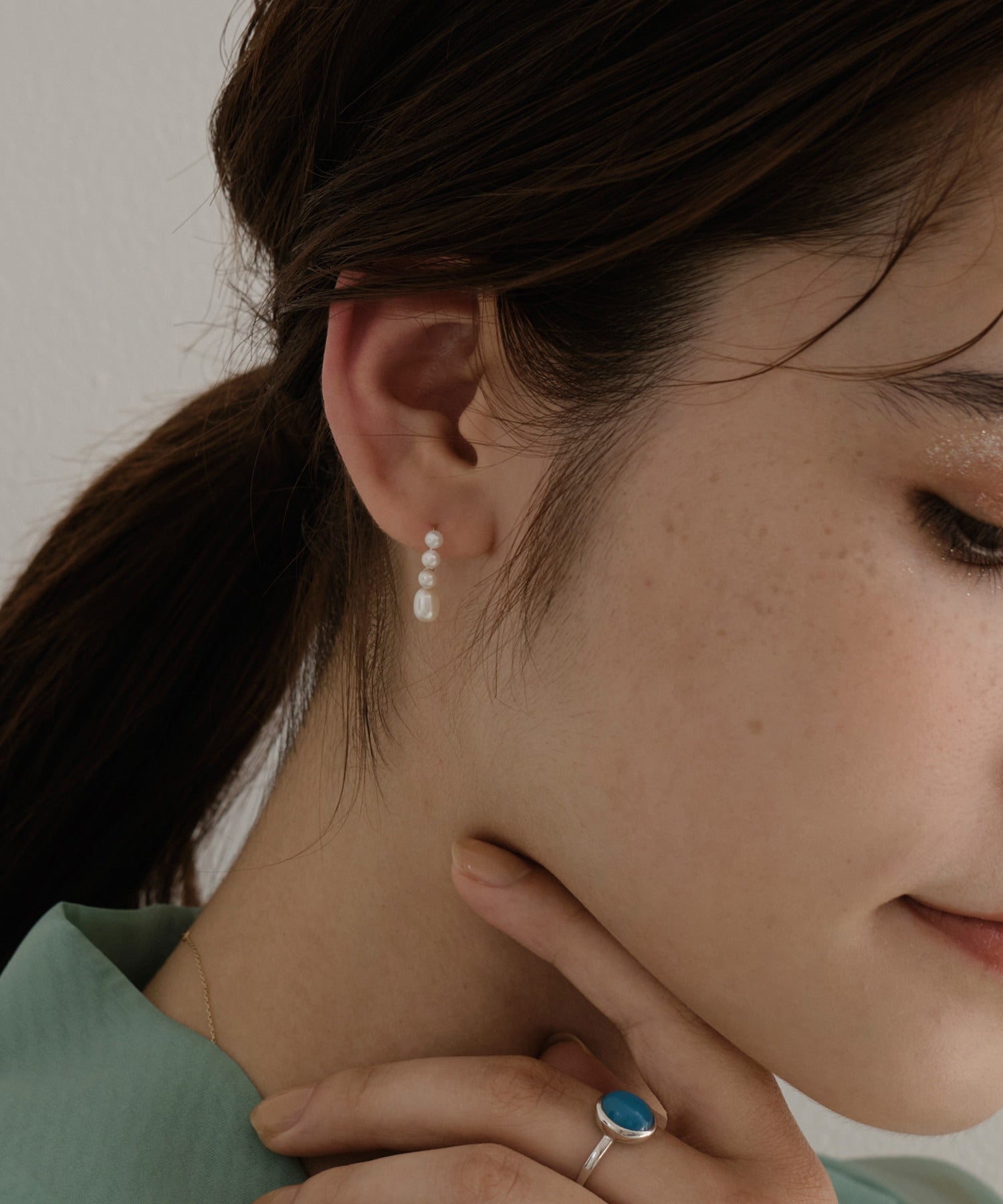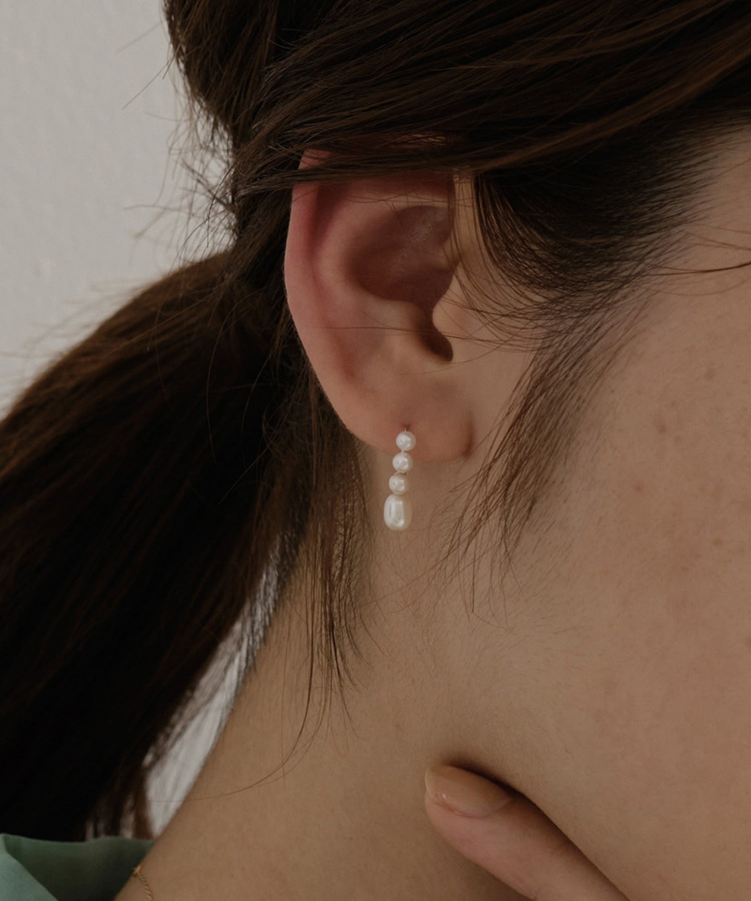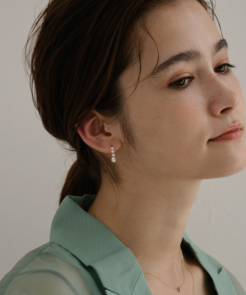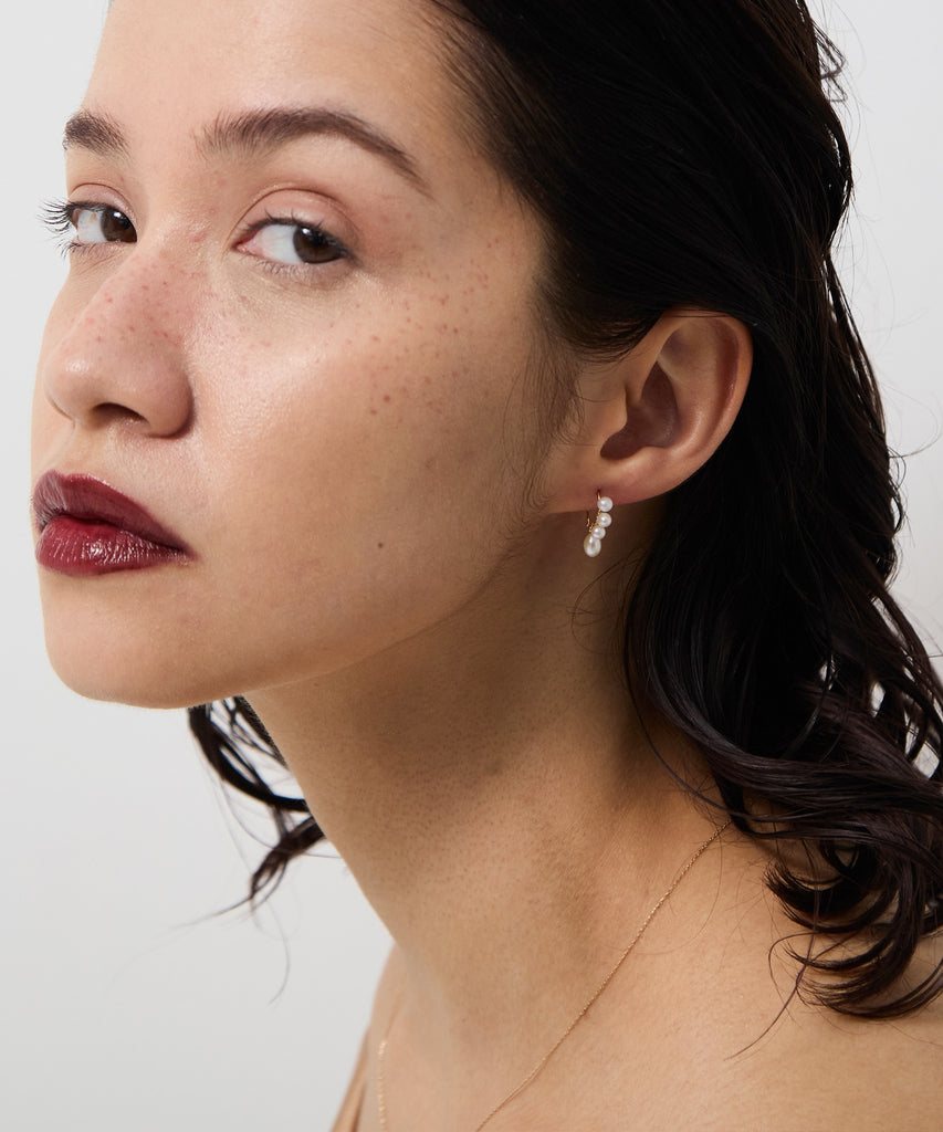 普段使いしやすいボリュームに 揺れるパールが華やかさを添えて、顔周りを明るく演出します。普段のコーディネートから結婚式などのパーティーシーンにもお使い頂けるデザインです。