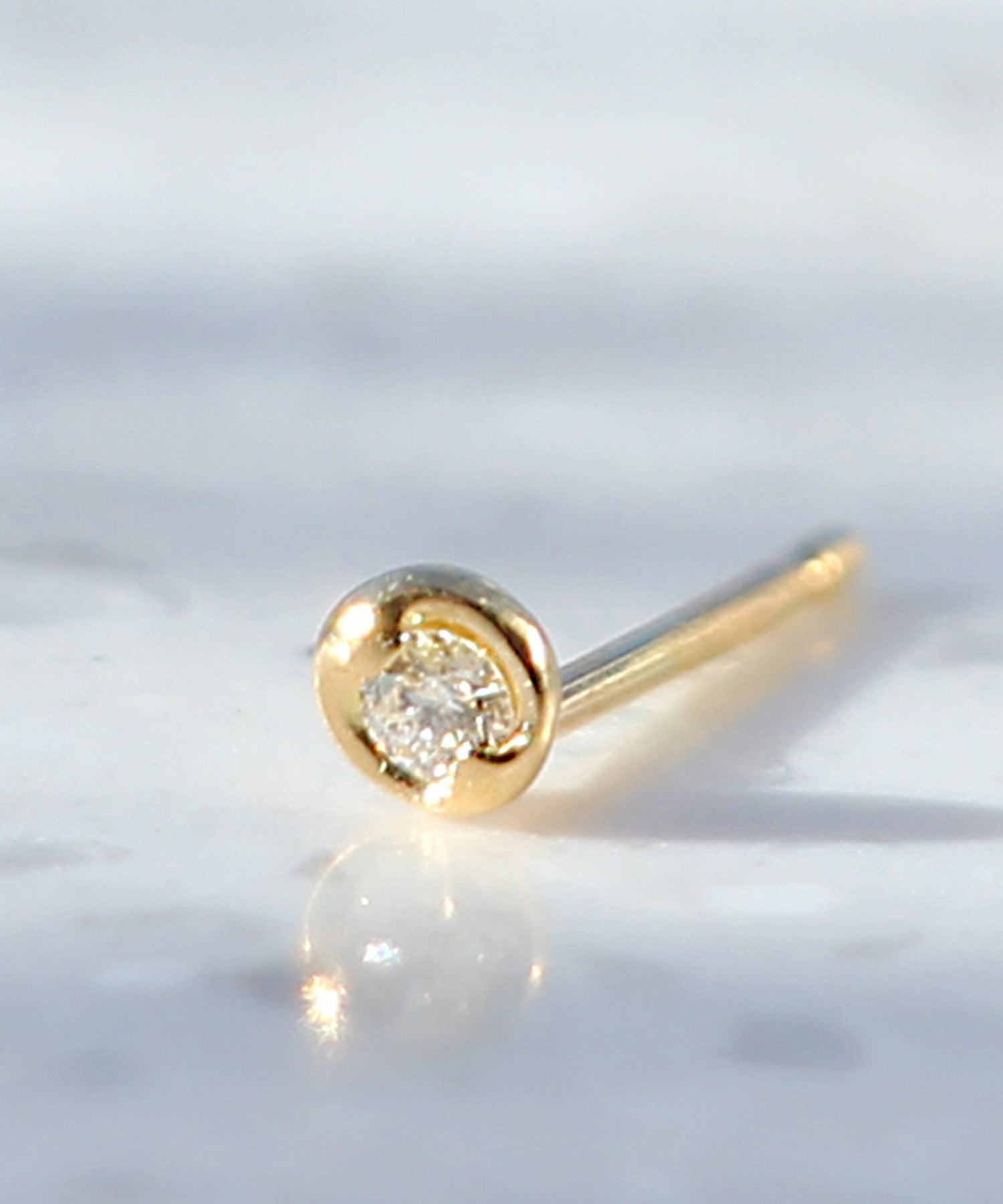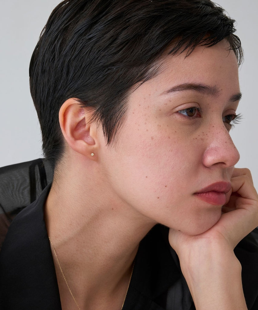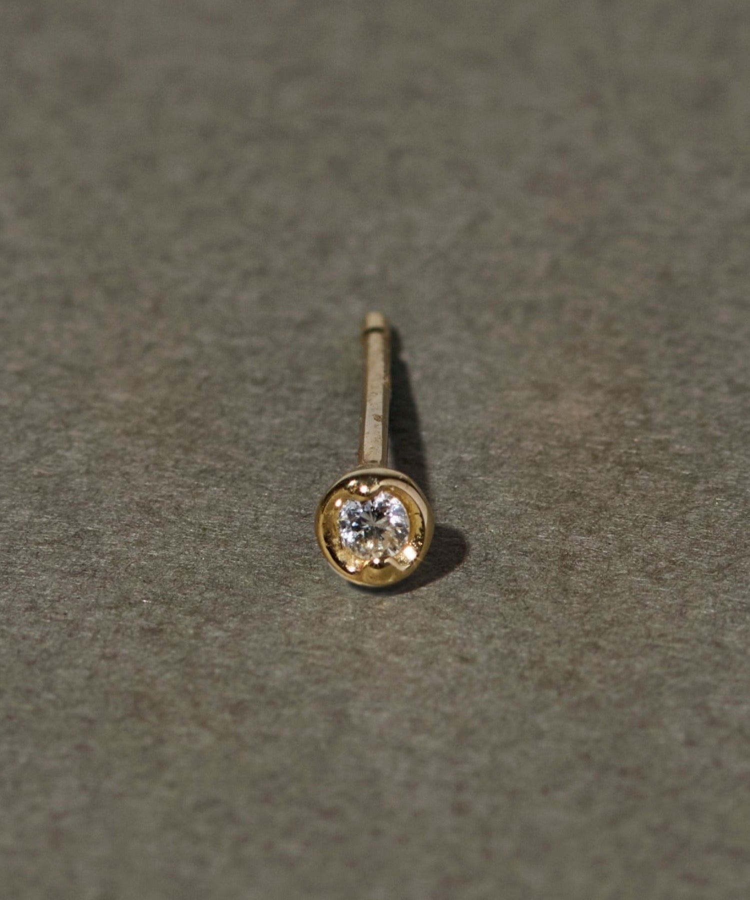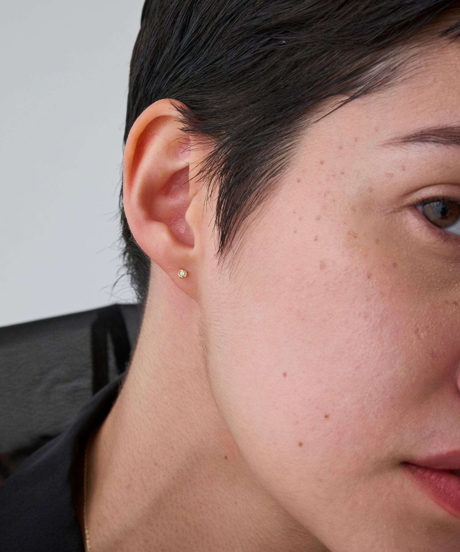 トレンドのアシンメトリーな表情を楽しめる片耳ピアスです。K18素材のゴールドに1粒のダイヤをあしらい、大人フェミニンなデザインに仕上げました。