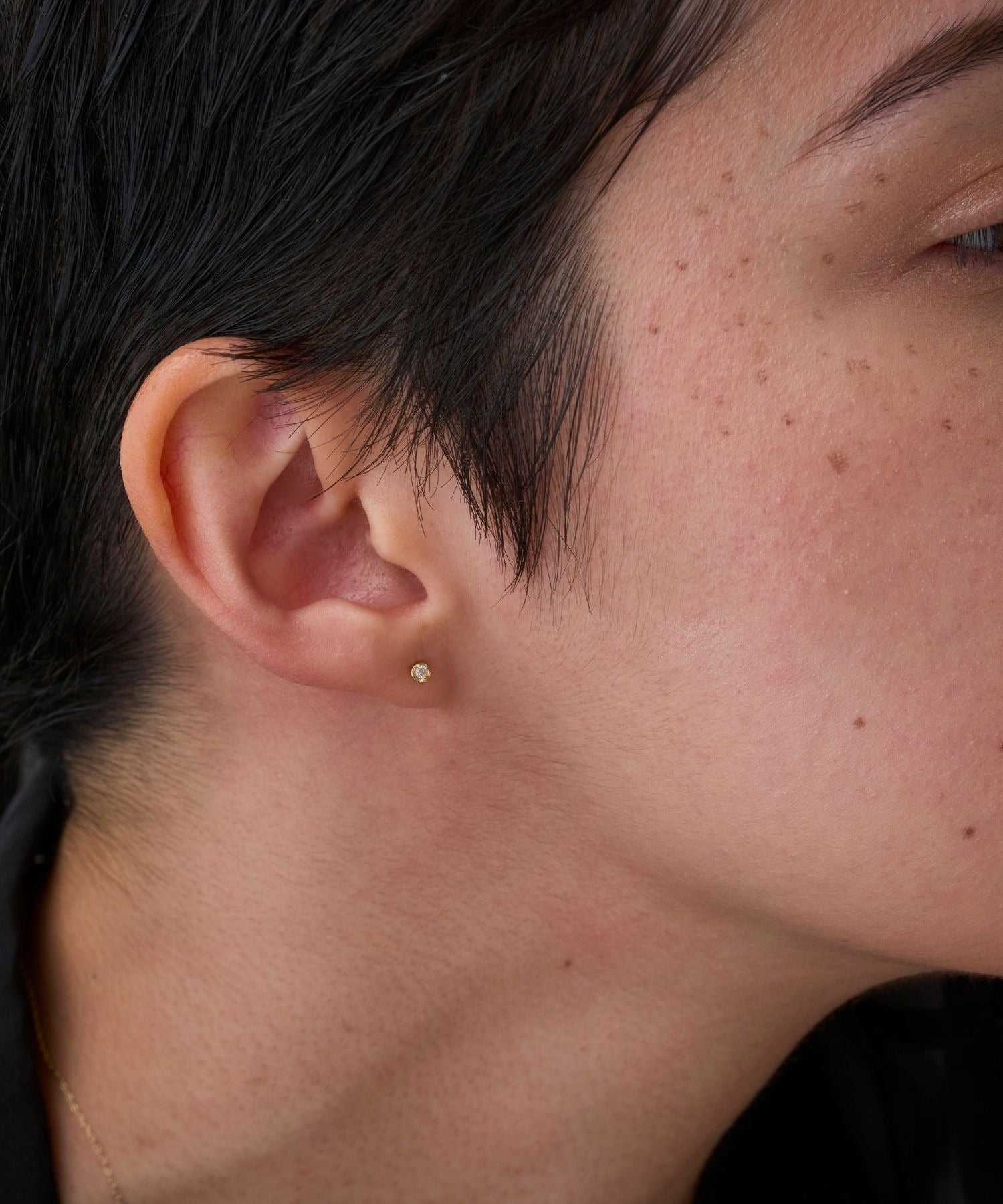 セカンドホールにもぴったりな、ダイヤモンドをふっくらとした石枠にセッティングした1粒タイプのシンプルなピアス。