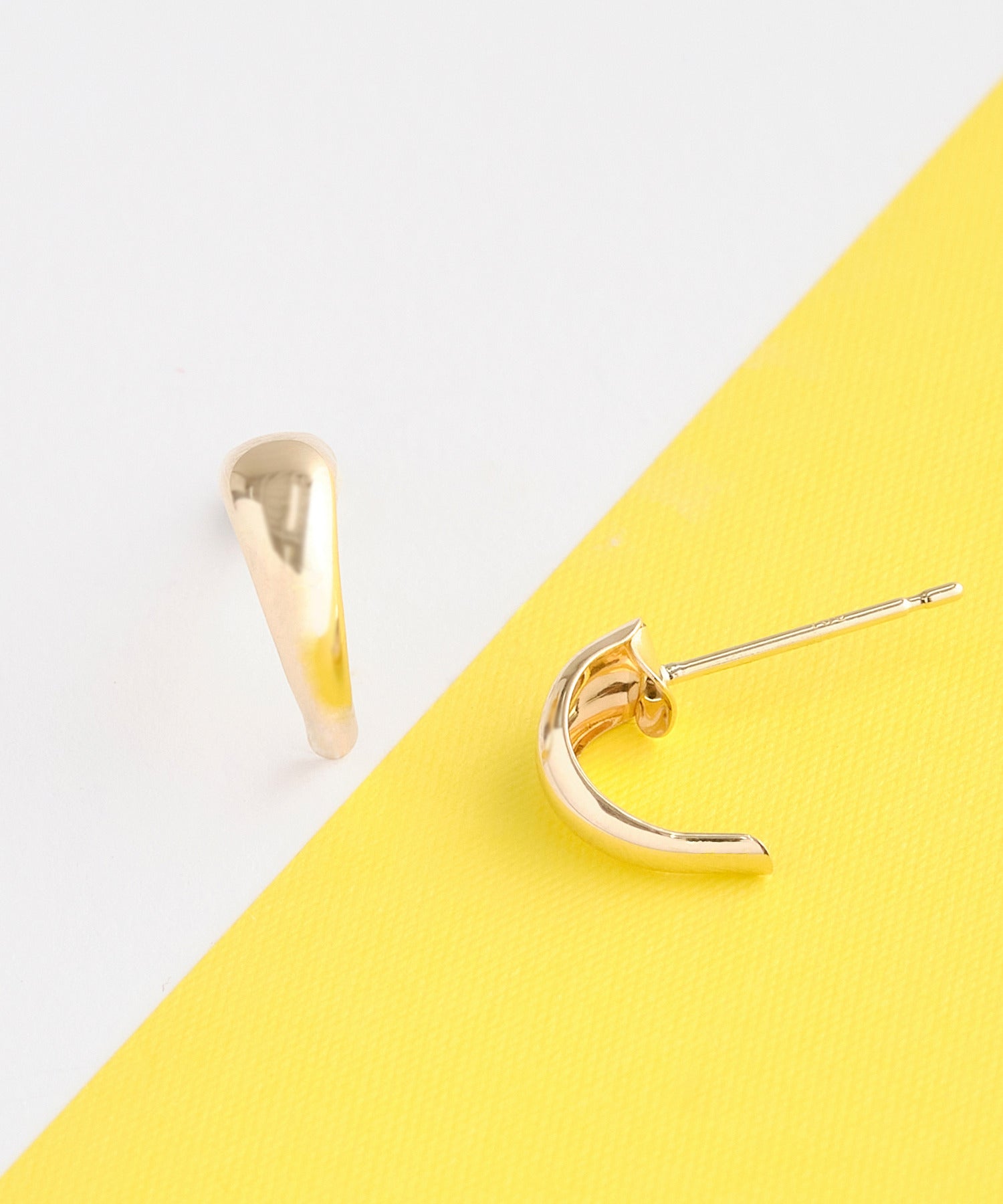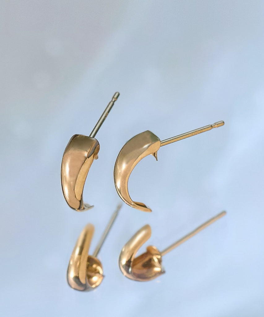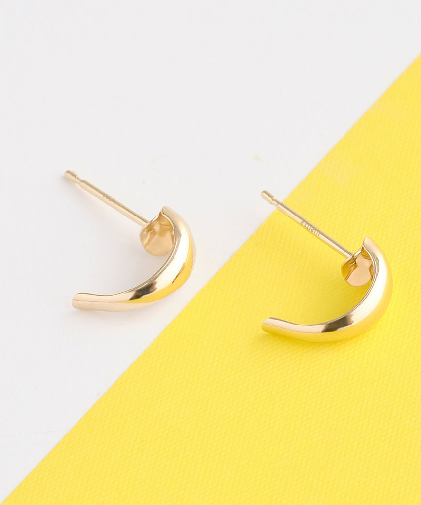 三日月が耳たぶを包み込むようなデザインのフープピアス
