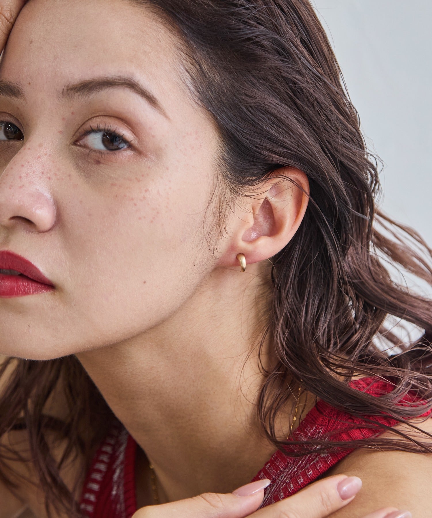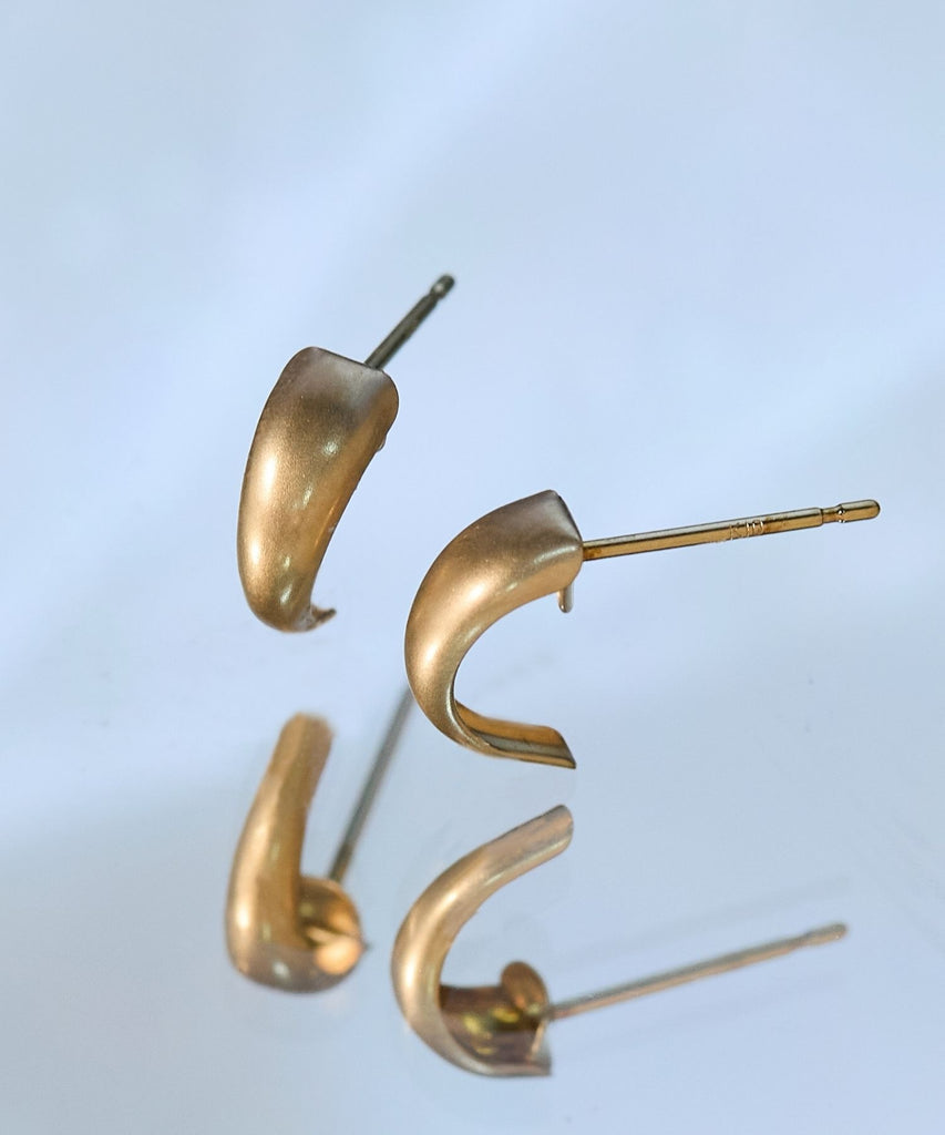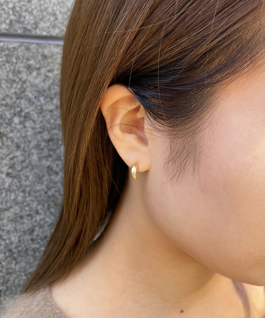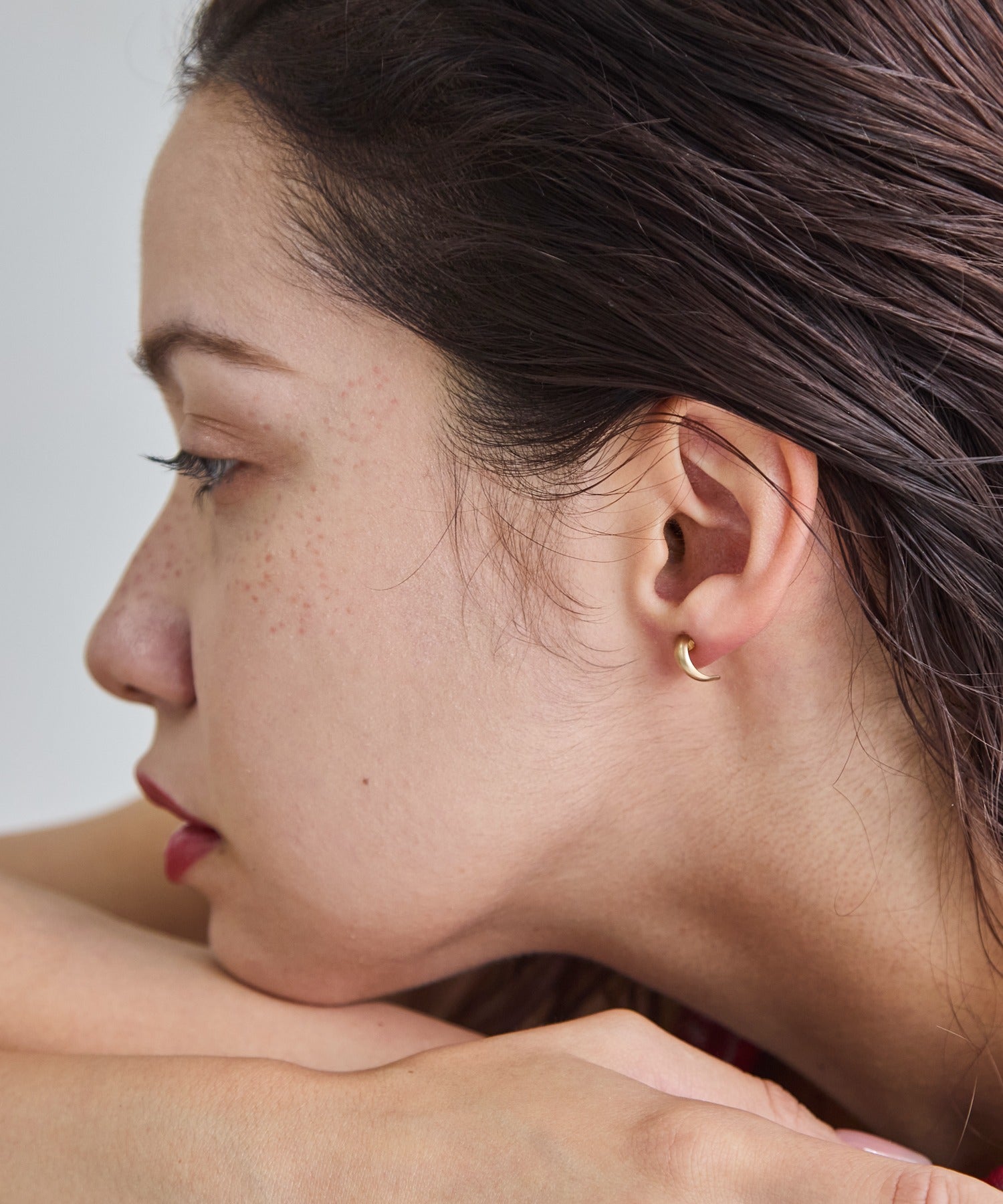 三日月が耳たぶを包み込むようなデザインのフープピアス