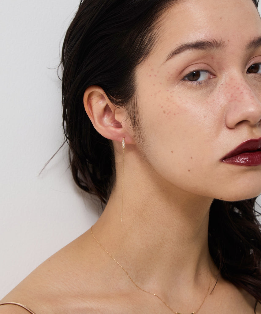 ー極細のベネチアンチェーンが揺れる天然石ピアスー