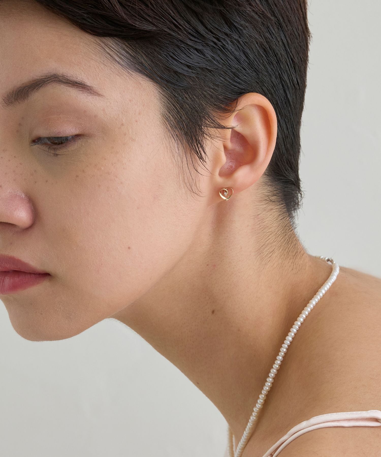 コーディネートに程よい甘さをプラスするハートモチーフは、普段の装いを女性らしく演出します。パーティシーンなどにも活躍するダイヤモンドジュエリーです。
