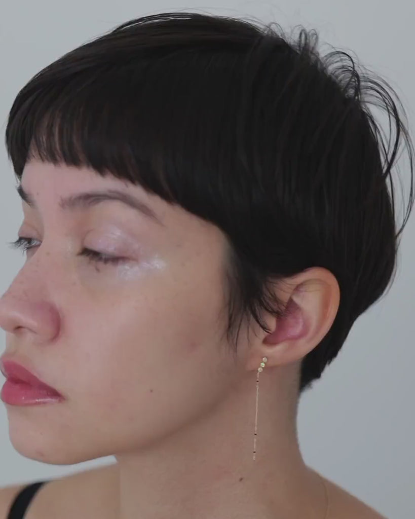 柔らかく優雅な印象を与えるペタルチェーンが揺れるモテピアス。