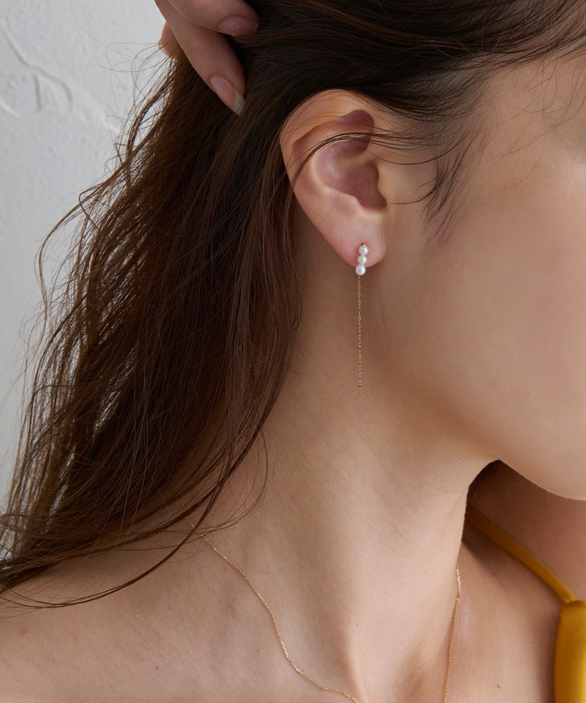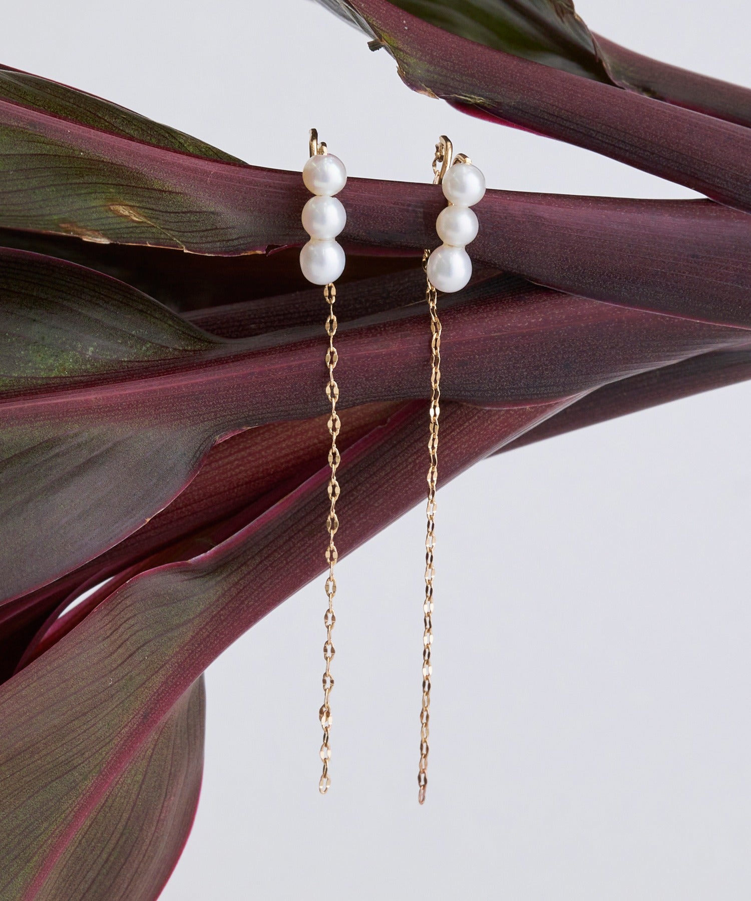 淡水パールを縦に3つセットしたデザインのイヤリング