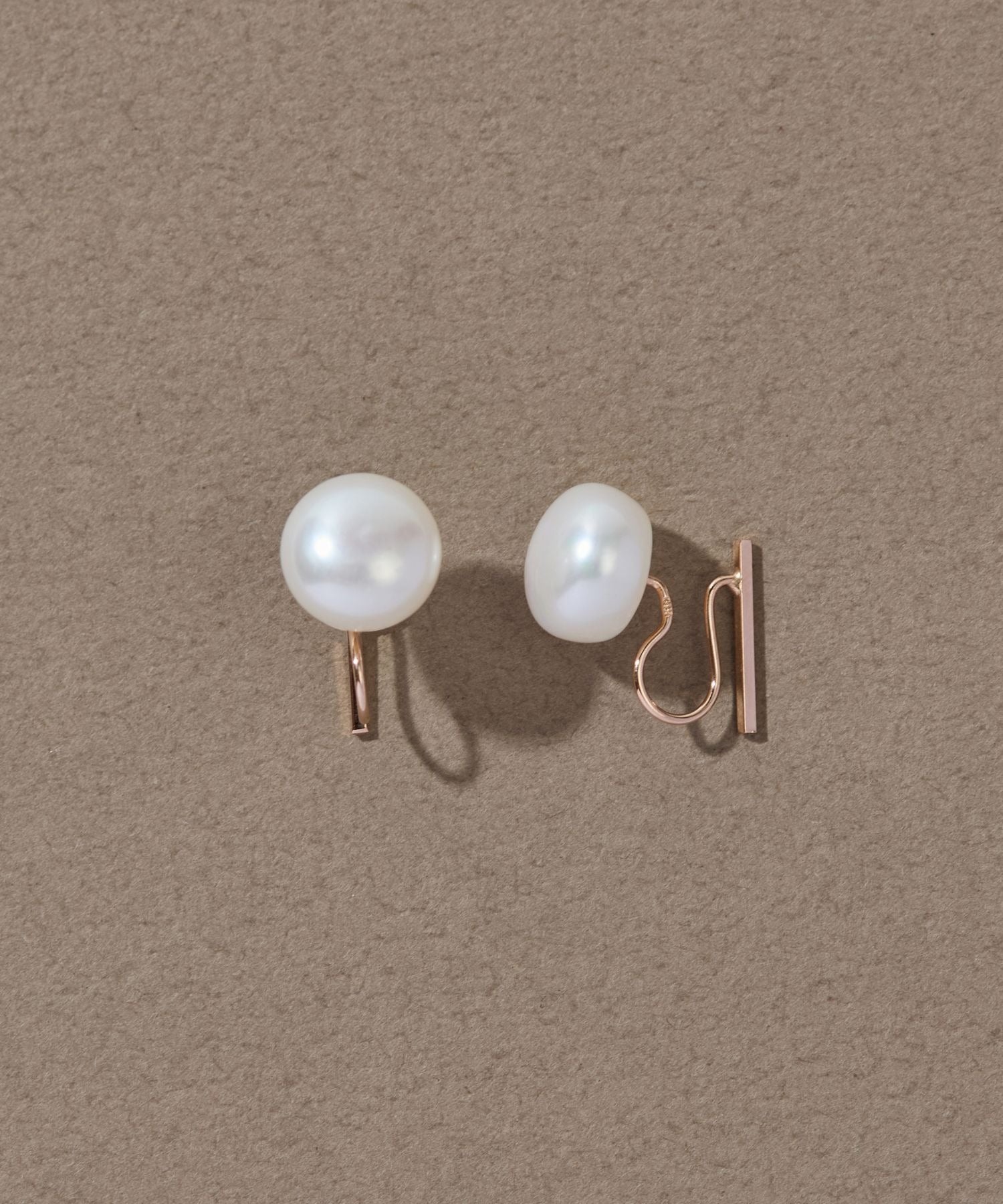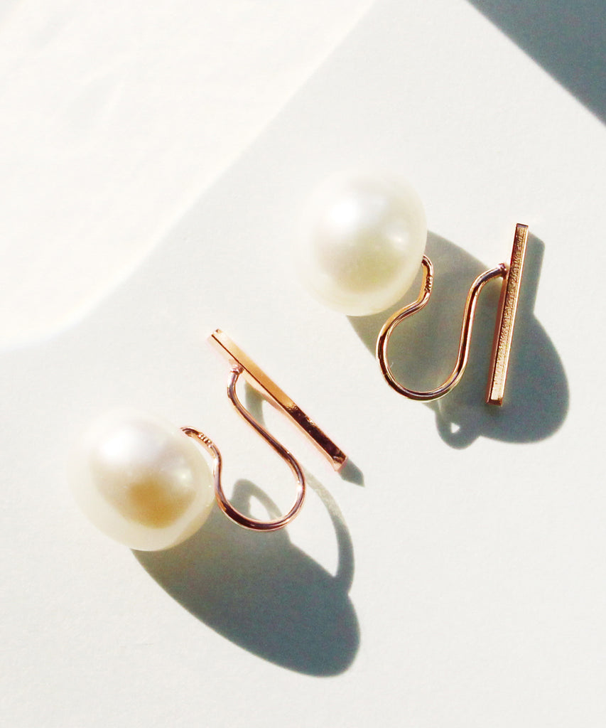 大粒パールとバーモチーフでクリップ金具が隠れて、ピアスを着けているように見えます。