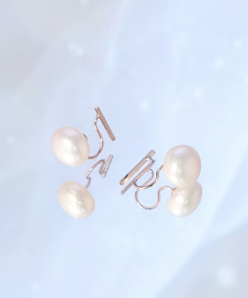 淡水パールとバーモチーフの痛くなりにくいクリップイヤリング