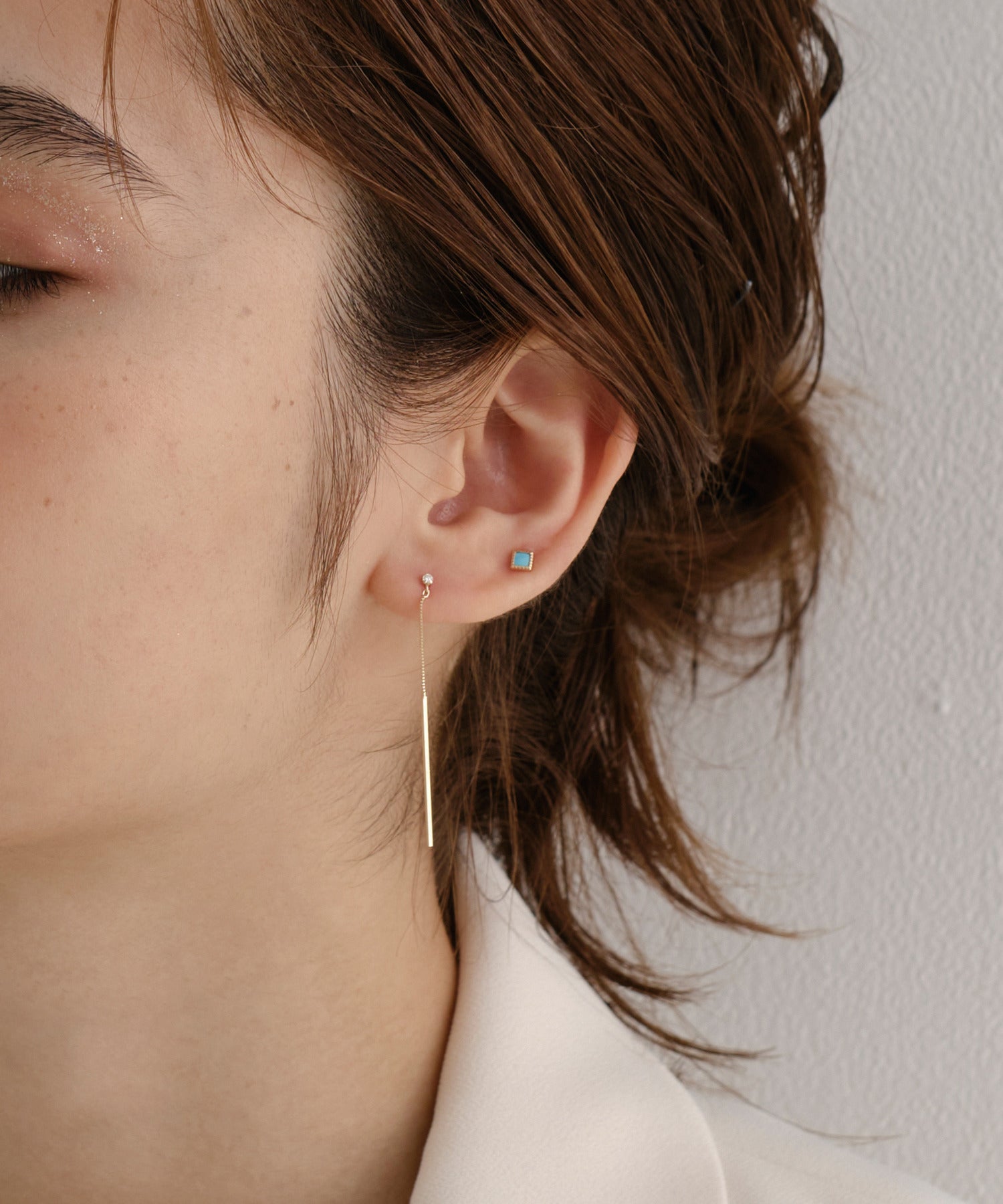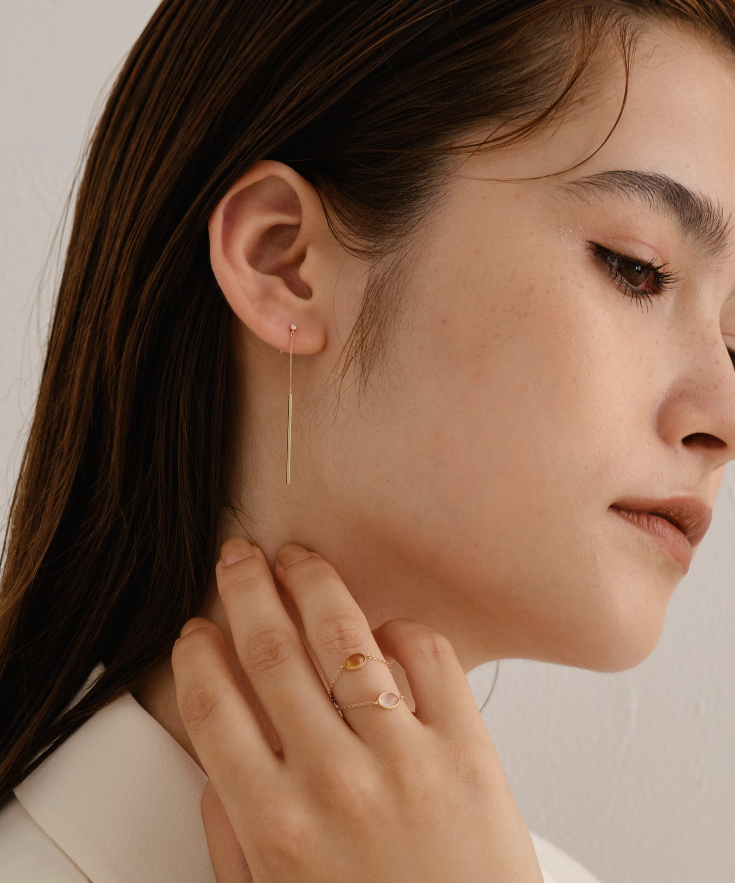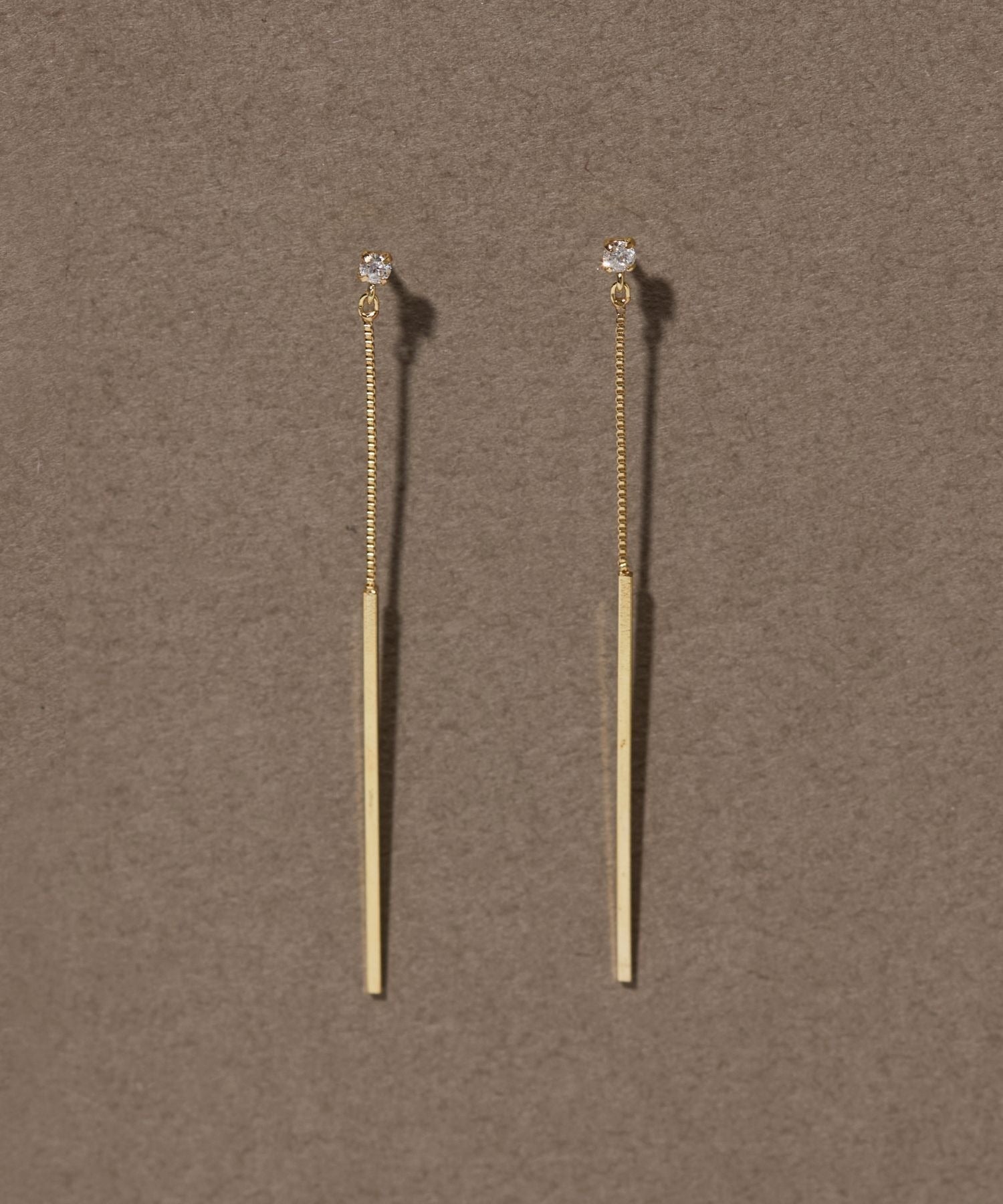 一粒ダイヤモンドが煌めくK10シンプルロングピアス