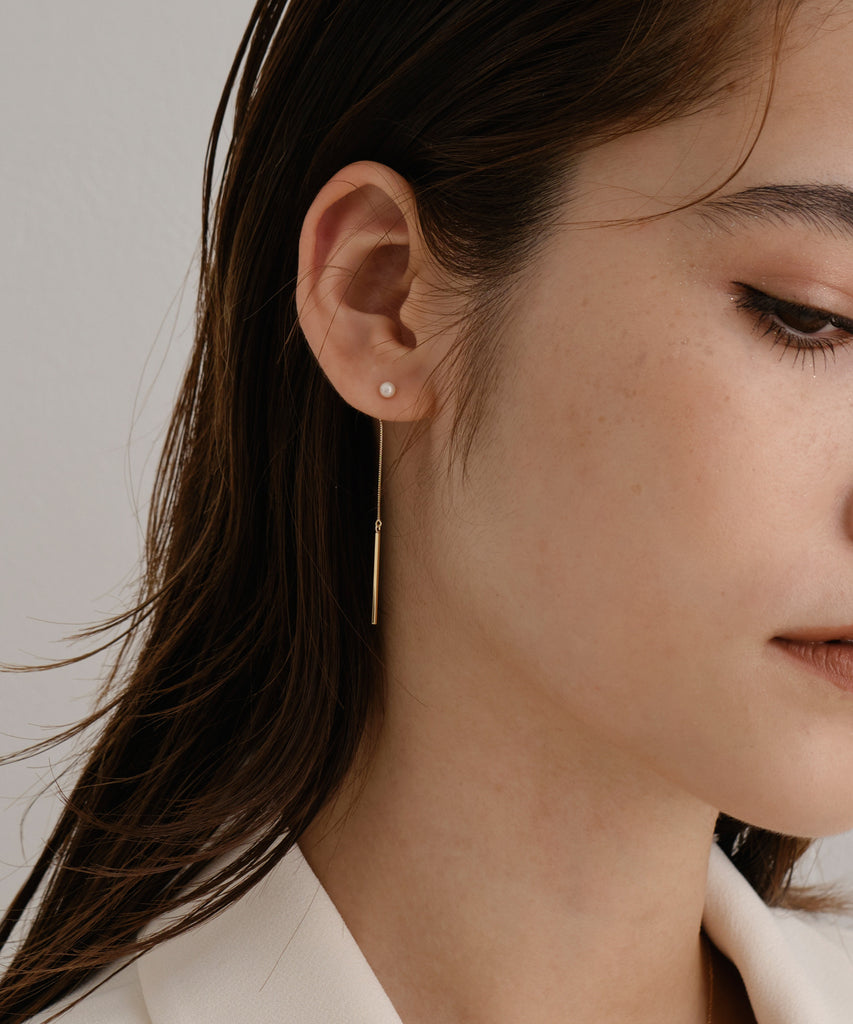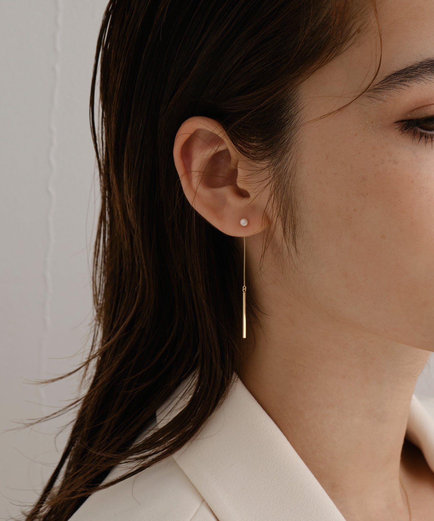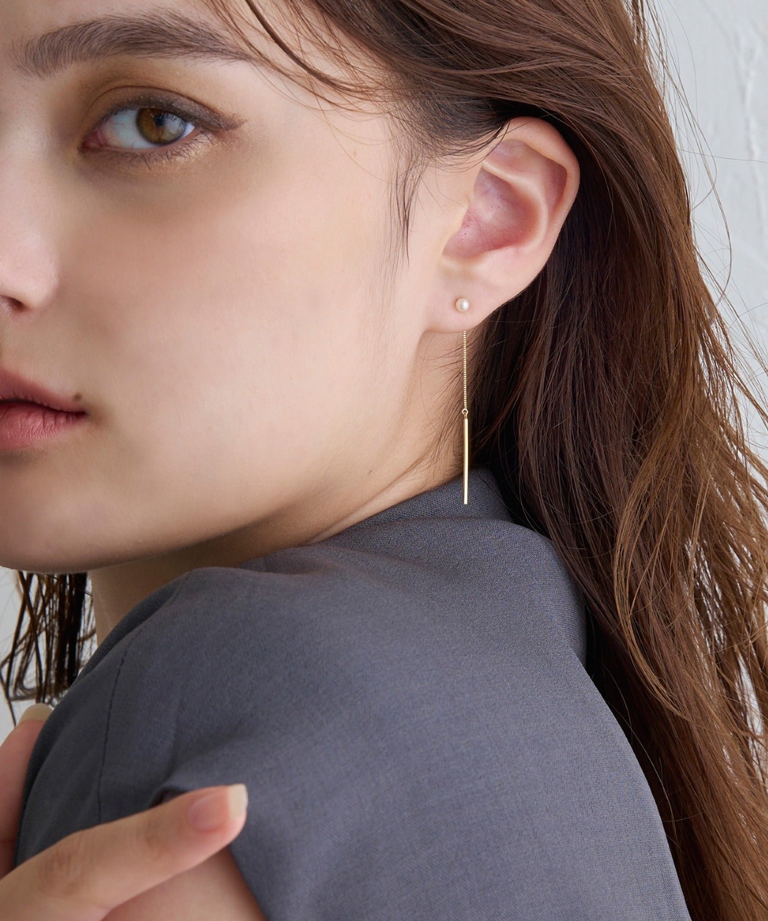 バーチャームが揺れるたびに繊細に輝き視線を集めるパールピアス。