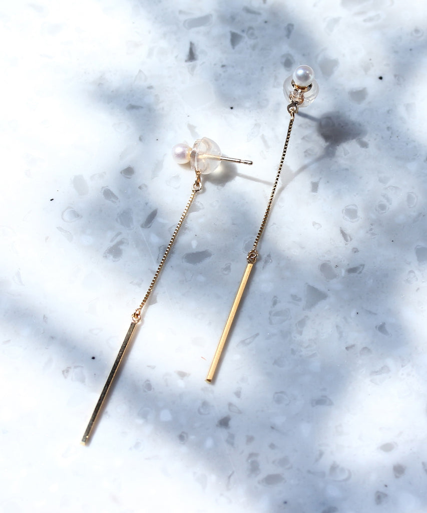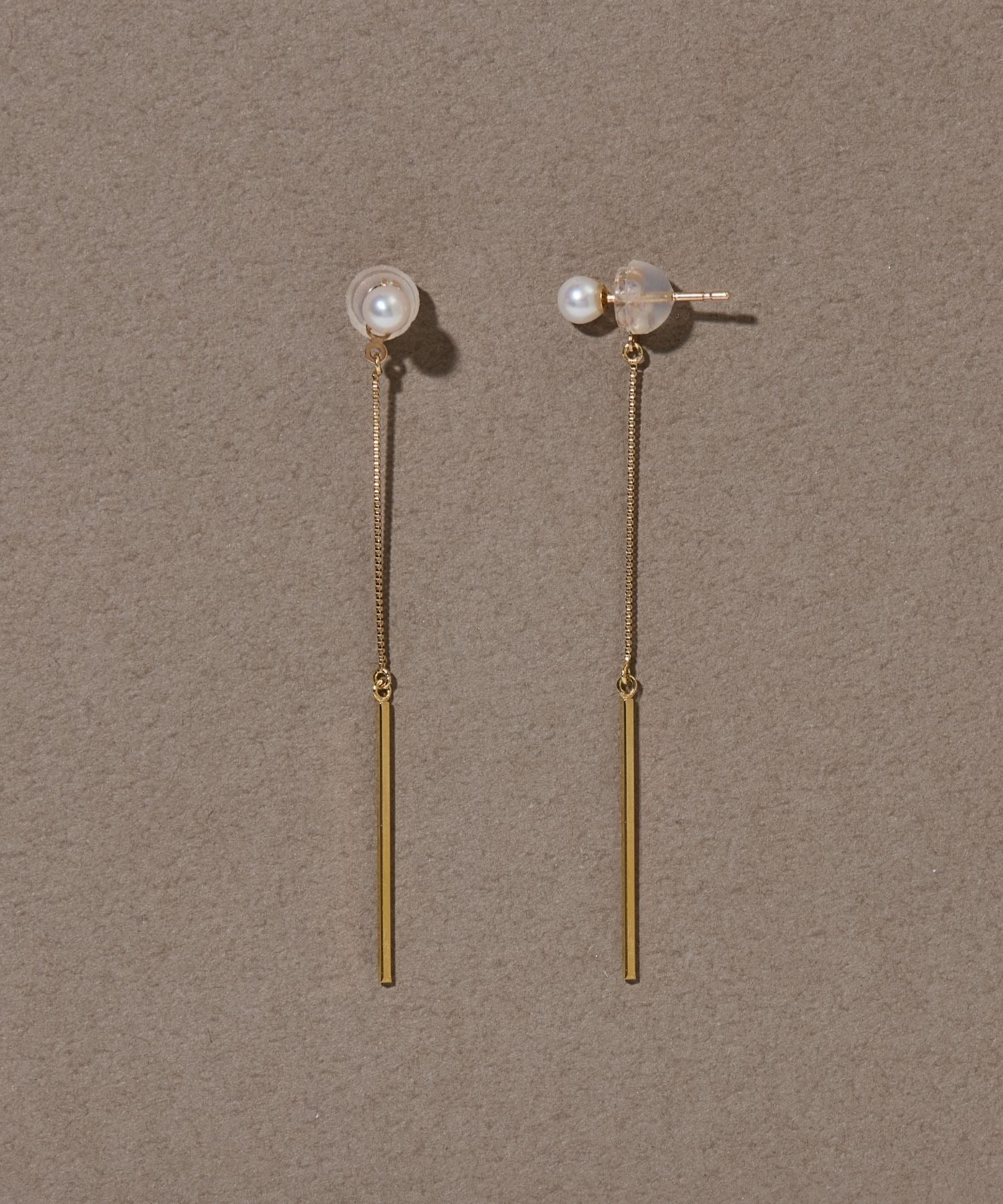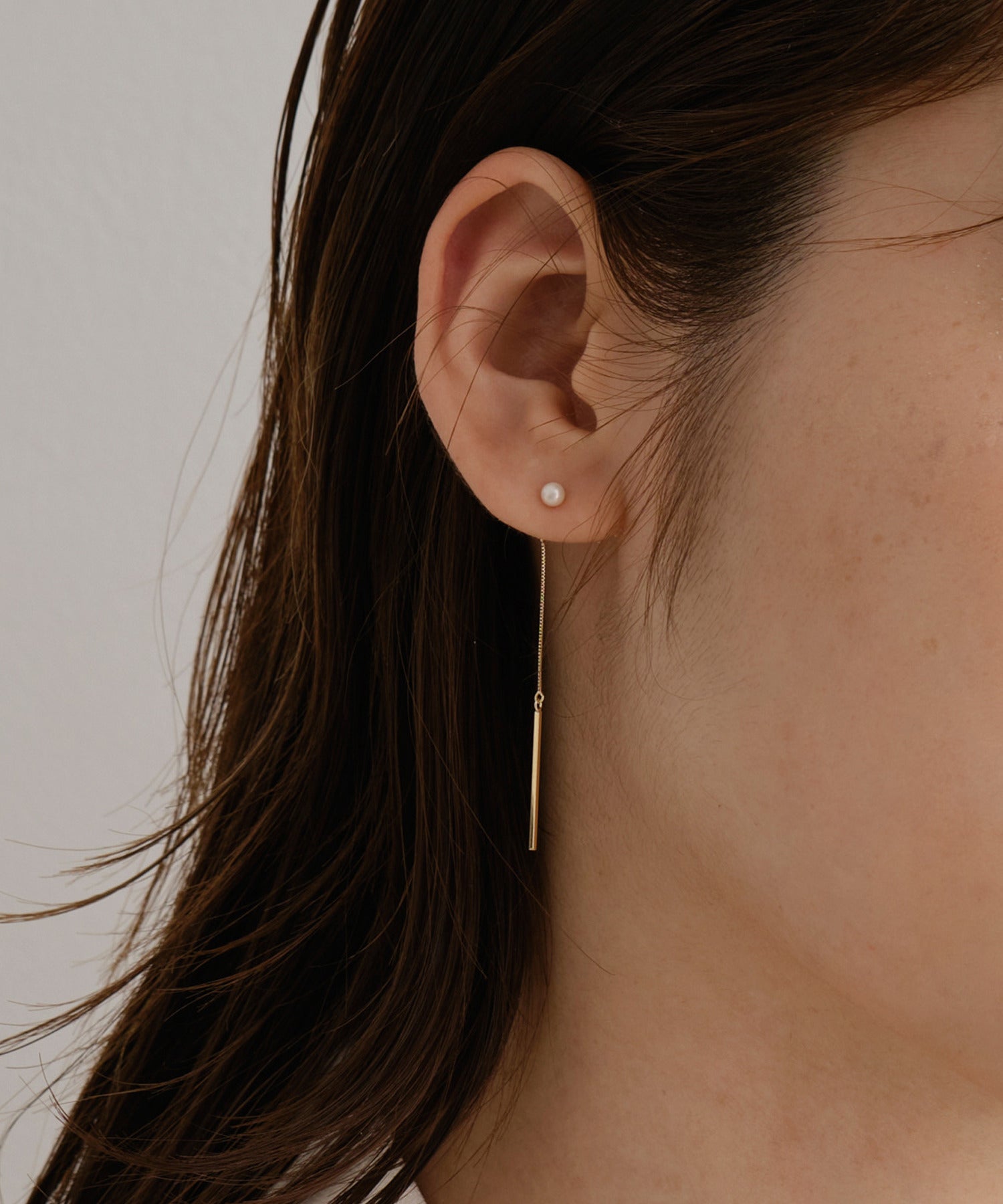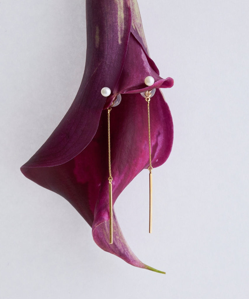 バーチャームが揺れるたびに繊細に輝き視線を集めるパールピアス。