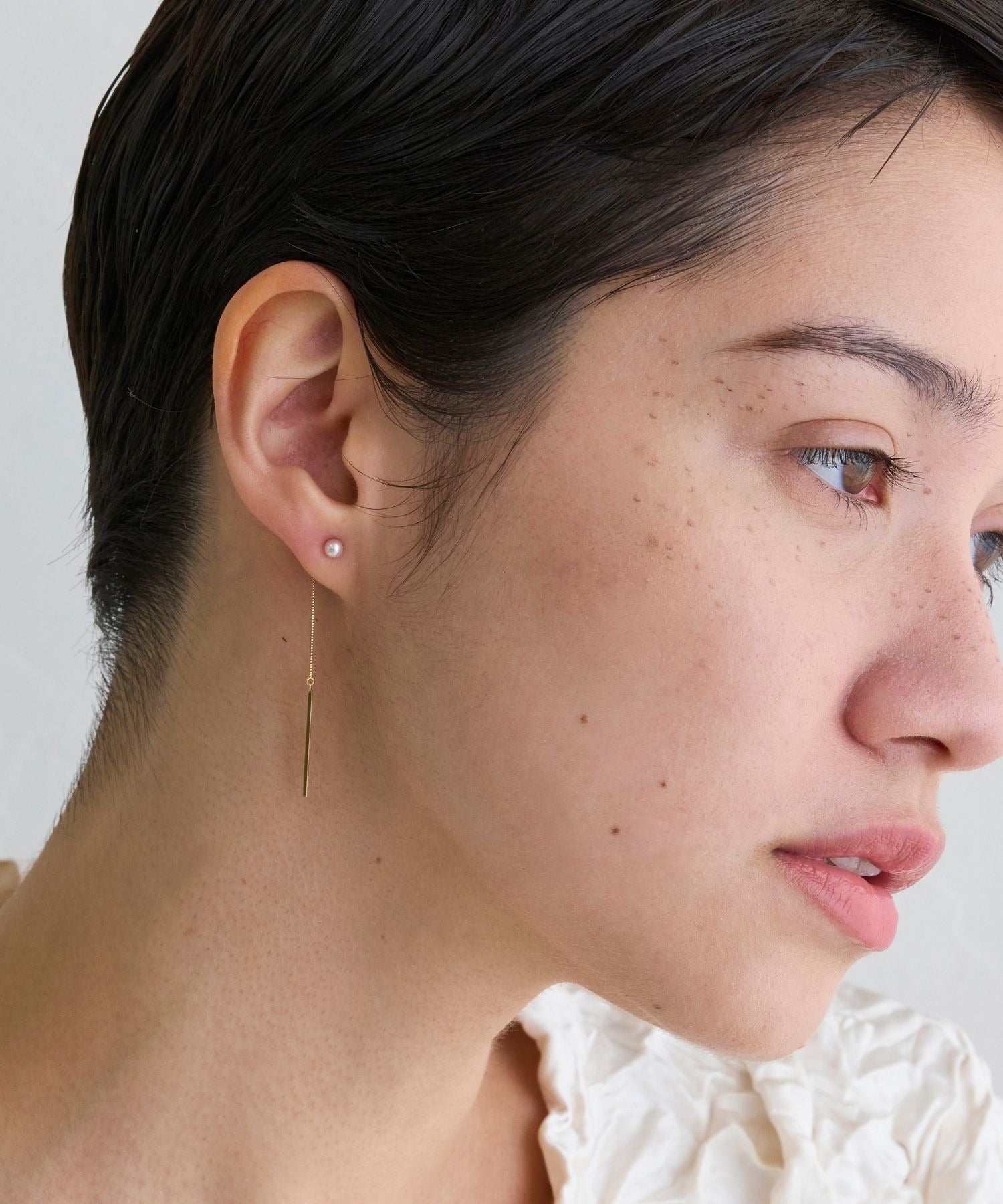 チャーム付きキャッチはお手持ちのスタッズピアスとも自在にスタイリングして頂けます。程よく存在感のあるデザインが着けるひとの美しさを引き出します。