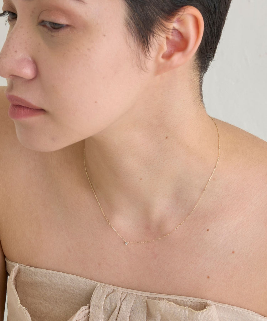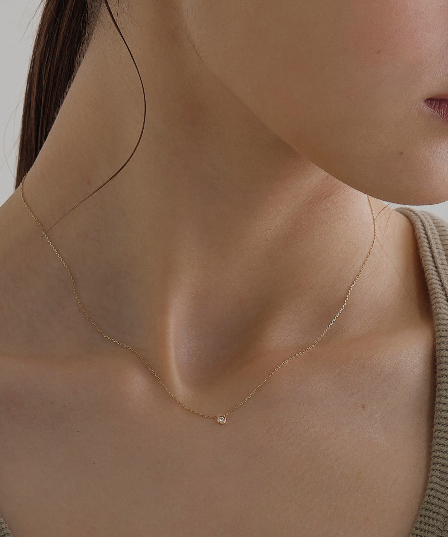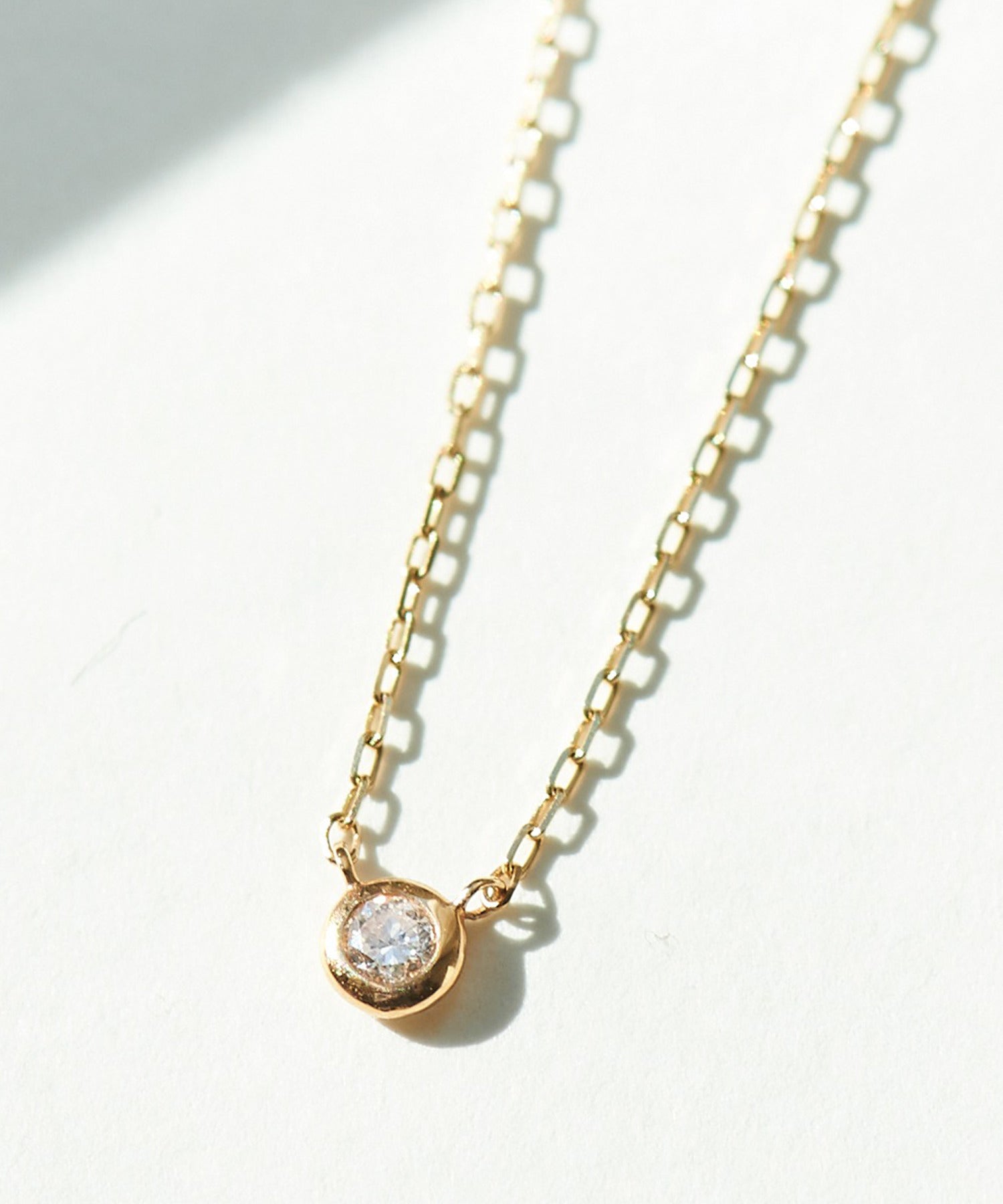 ダイヤと石枠の滑らかなフォルムが上品な一粒ダイヤネックレス