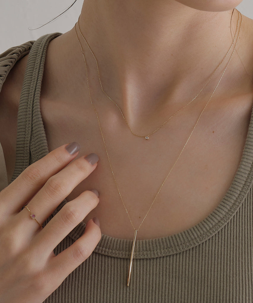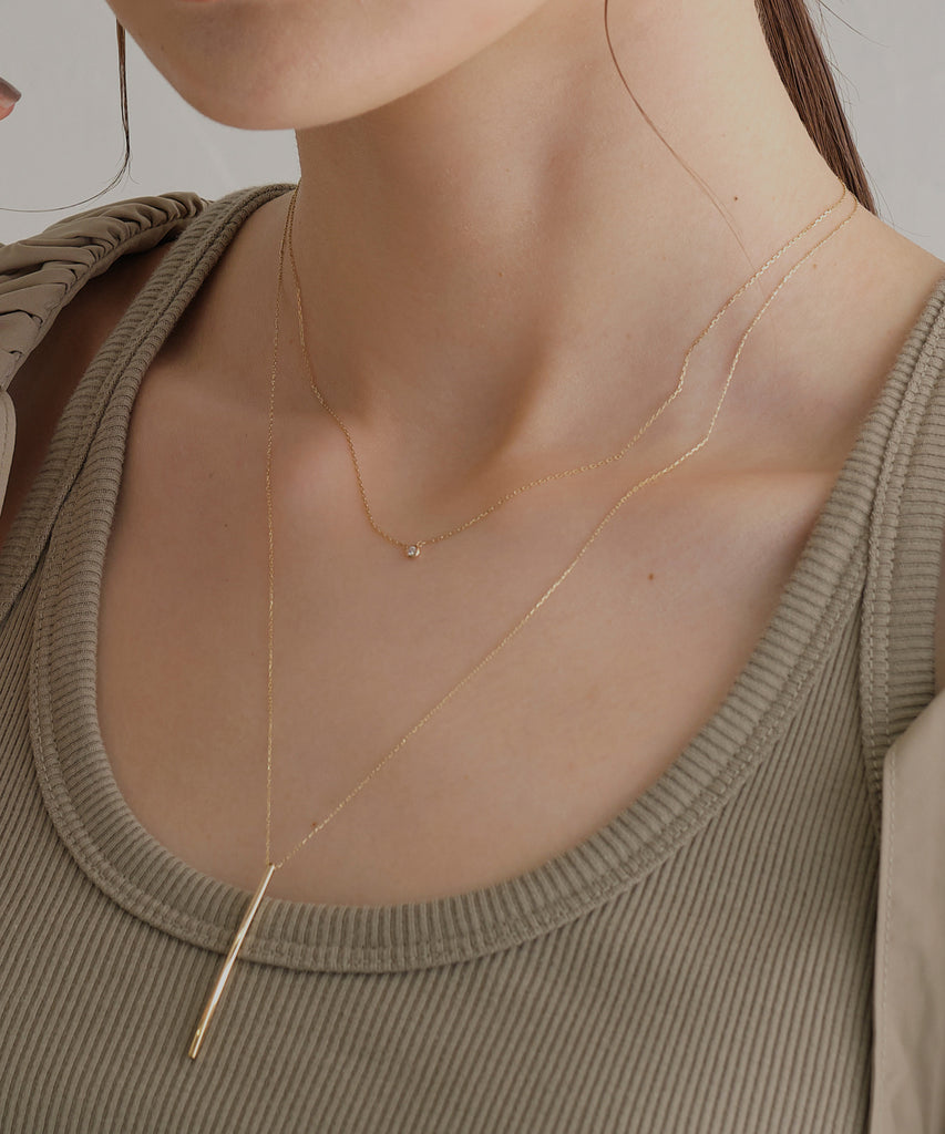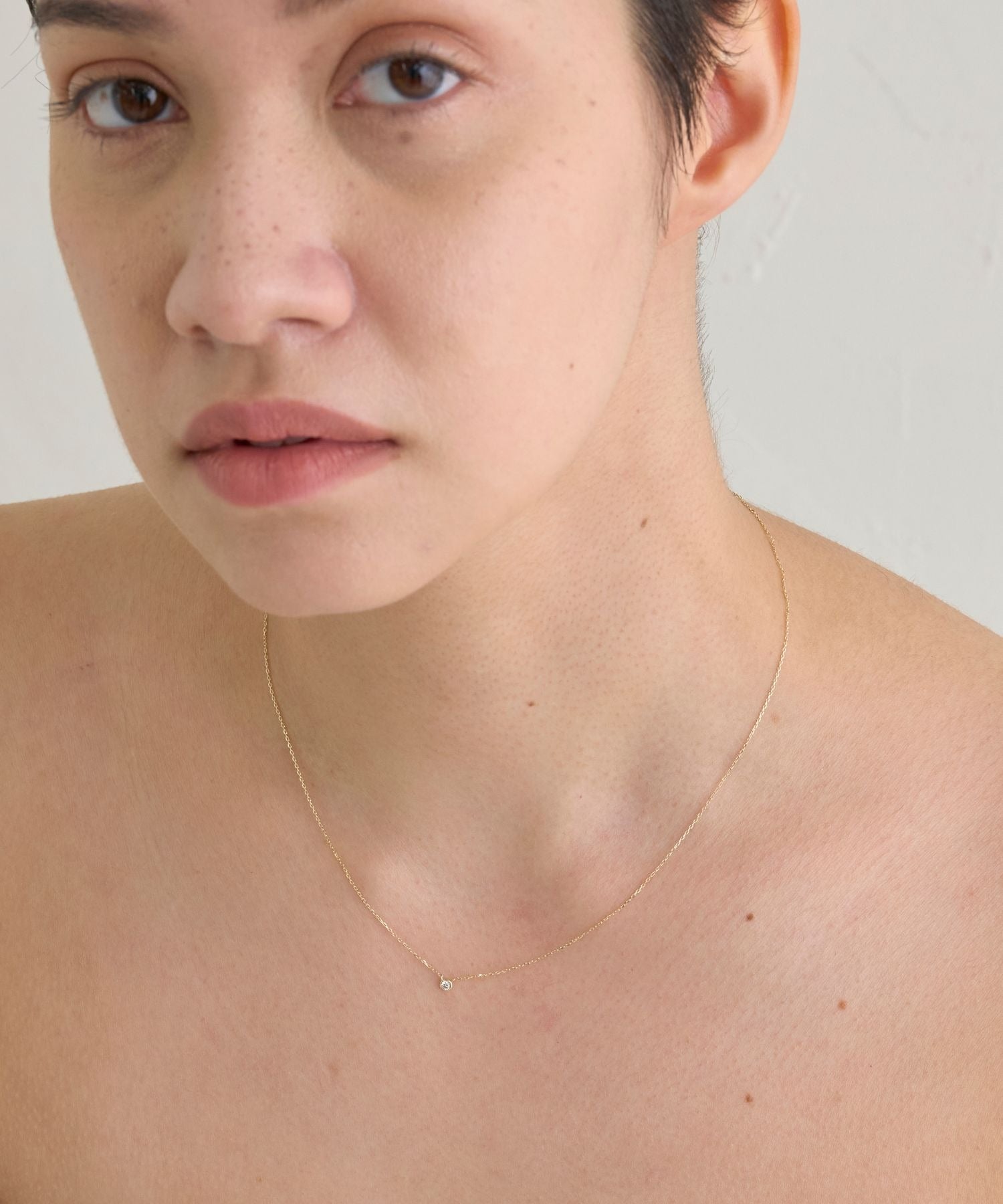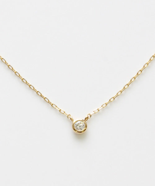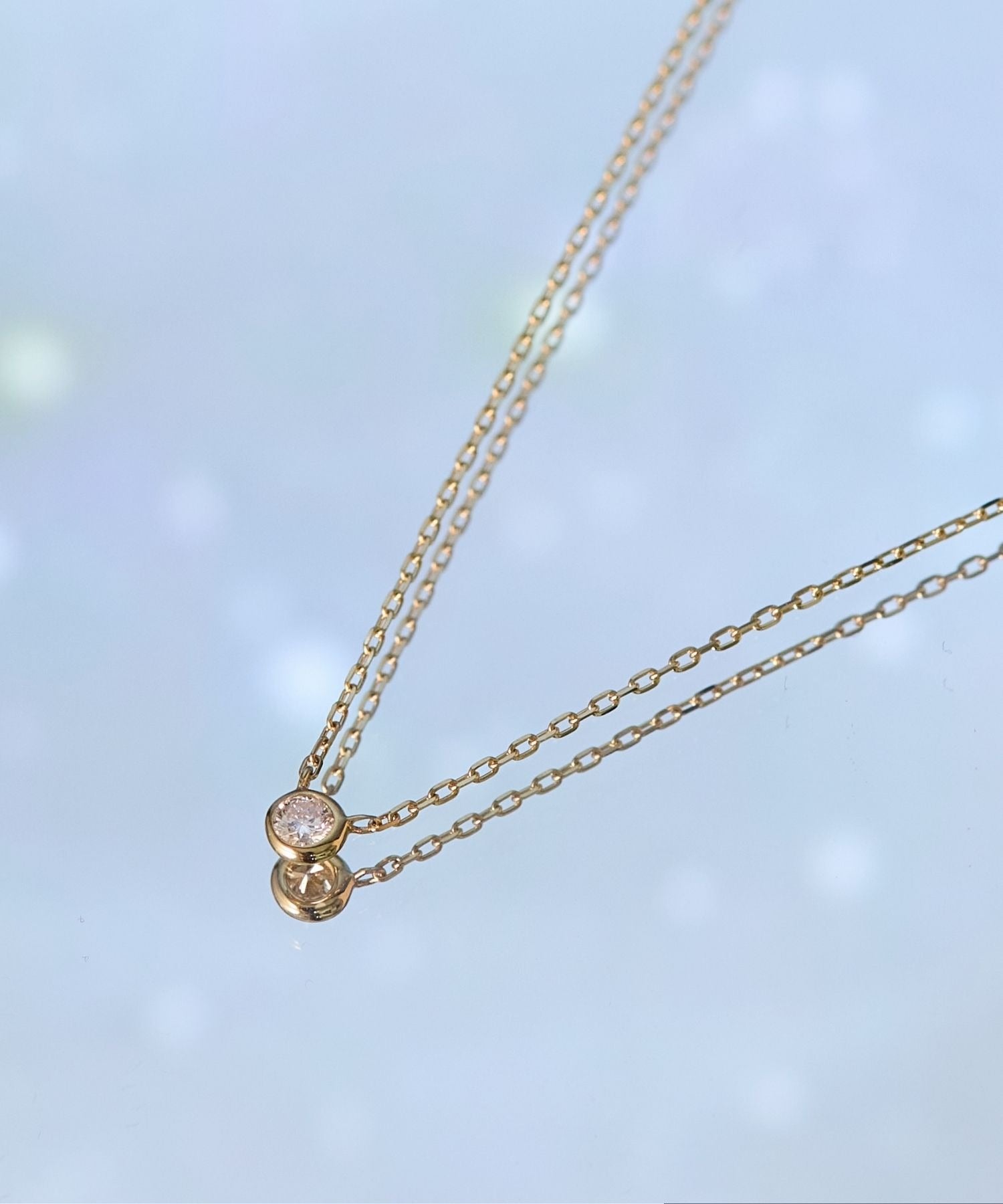ダイヤと石枠の滑らかなフォルムが上品な一粒ダイヤネックレス