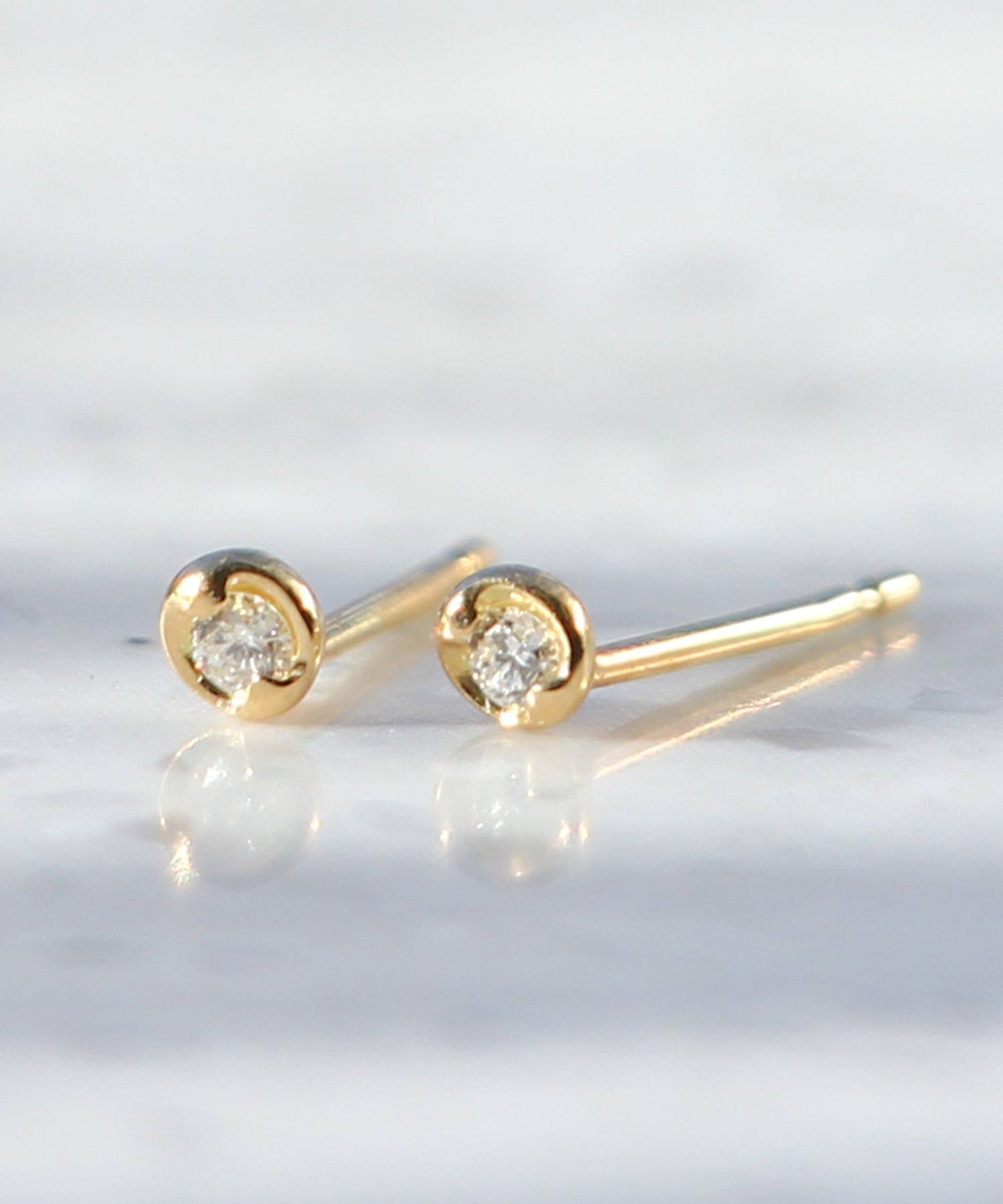 ふっくらとした石枠にダイヤをセッティングしました。シンプルで長くお使いいただけるデザインは、ひとつは持っていたいアイテム。