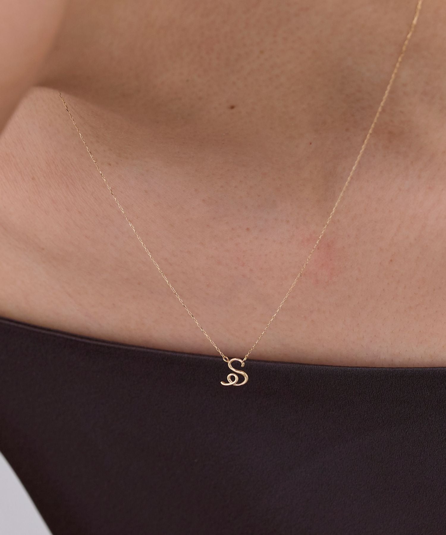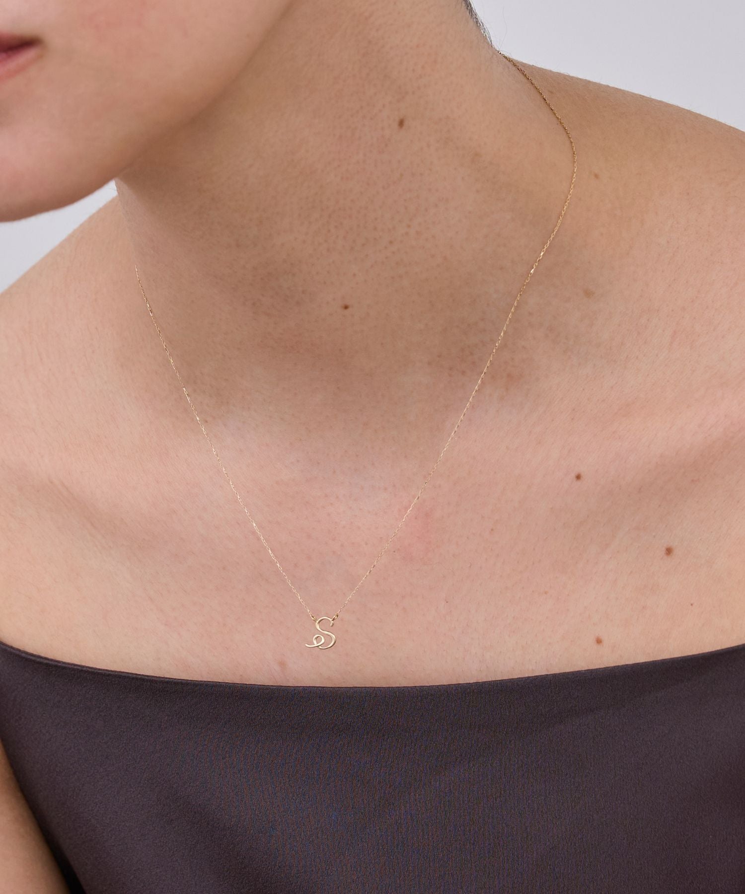 一筆書きのような柔らかいフォルムのイニシャルネックレス