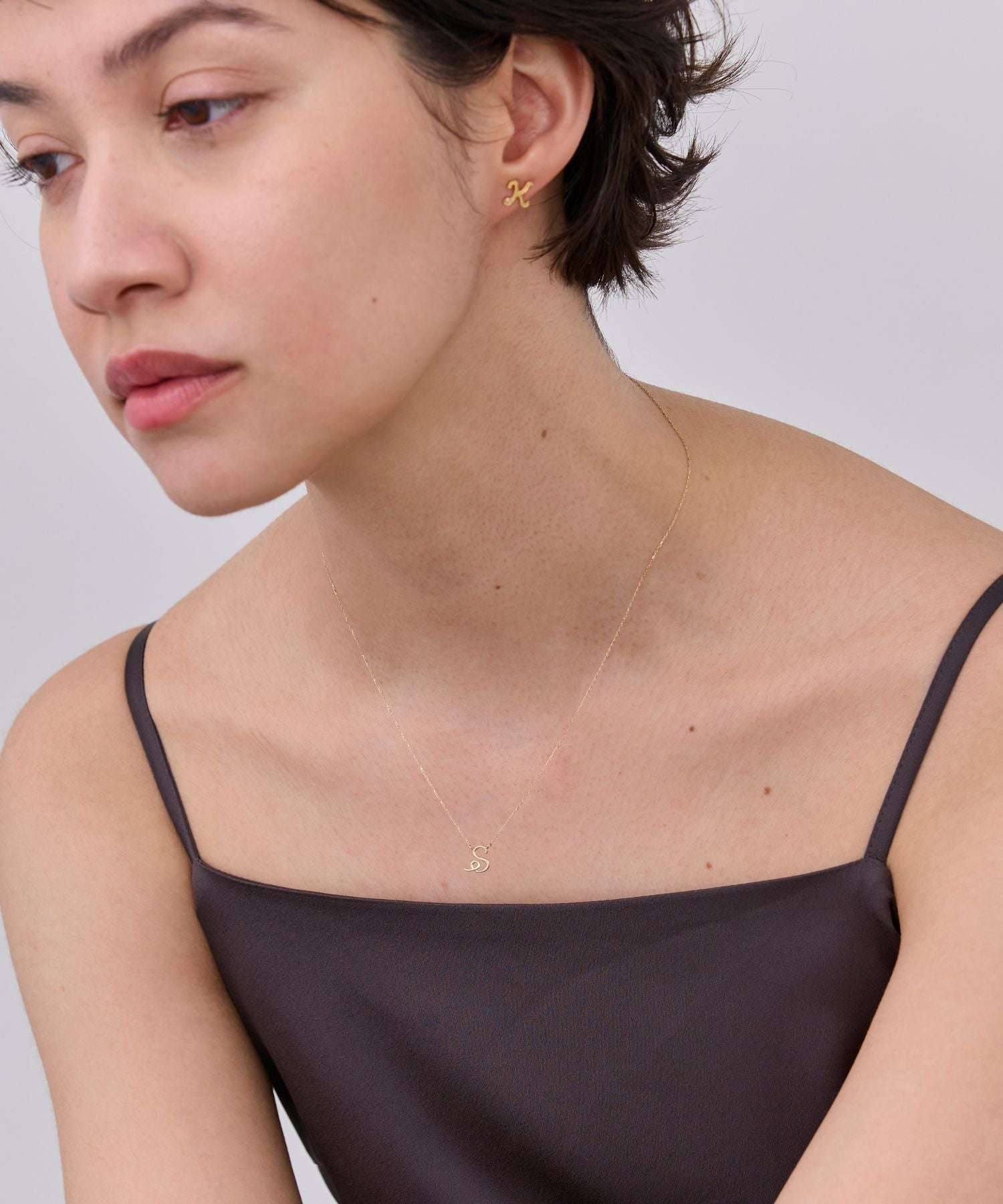 程よく主張するイニシャルモチーフのサイズ感が魅力的なデザイン。毎日お守りのように身に着けたいジュエリーです。
