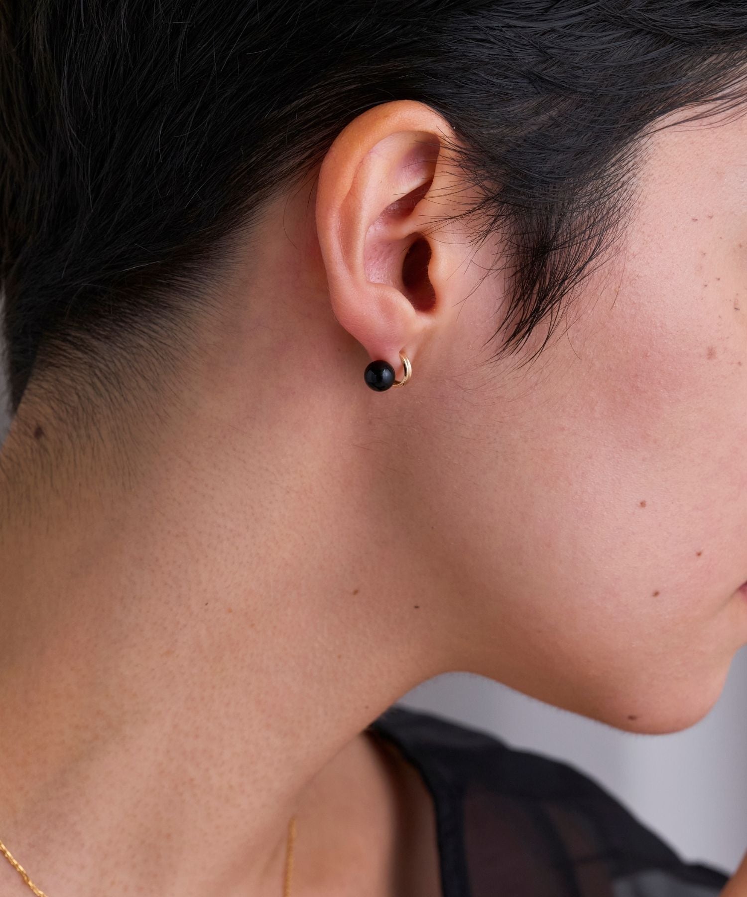 まるでピアスを2つ重ね着けしているかのように見えるピアス