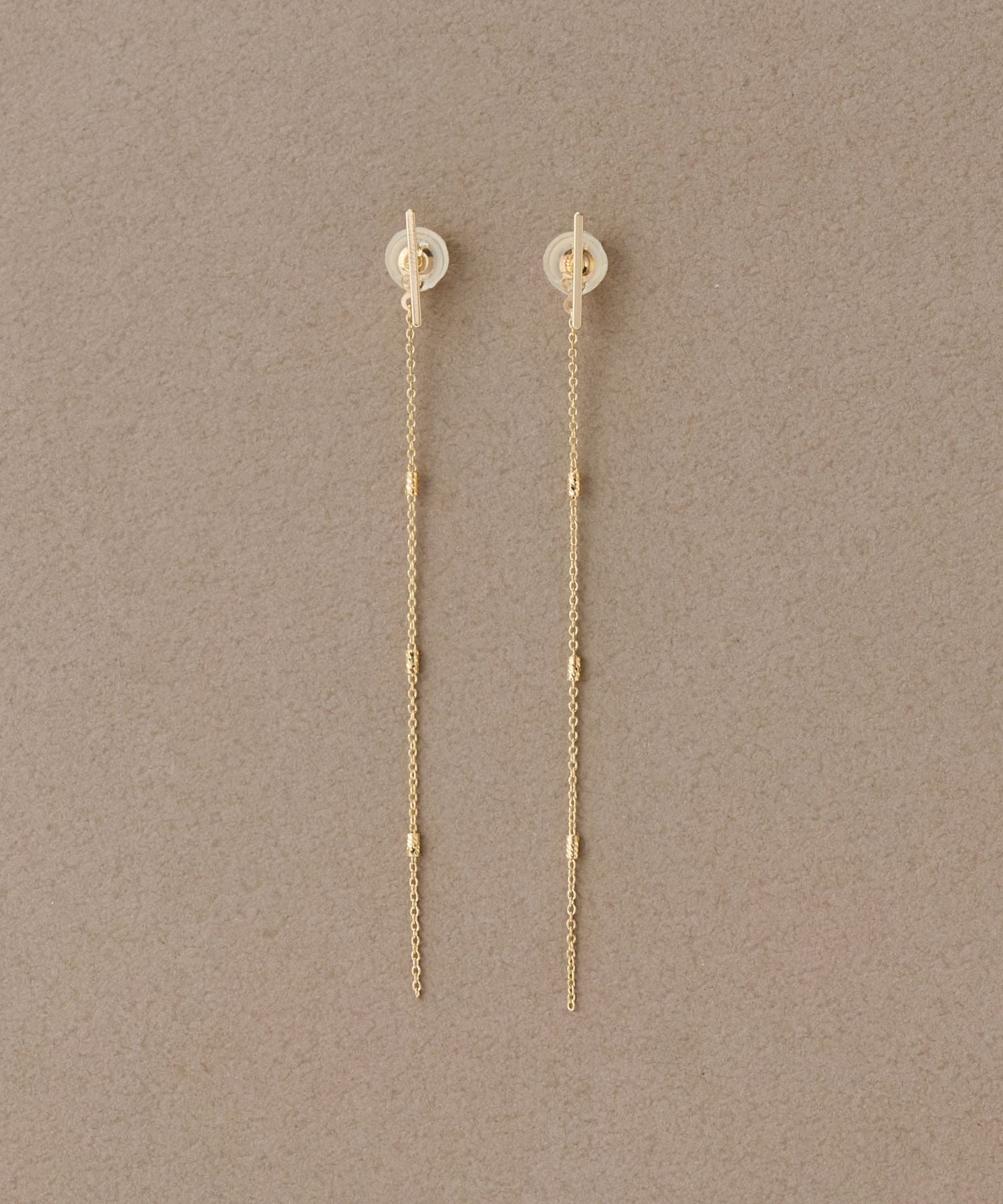 シンプルなバーピアスとデザインチェーンキャッチのセット