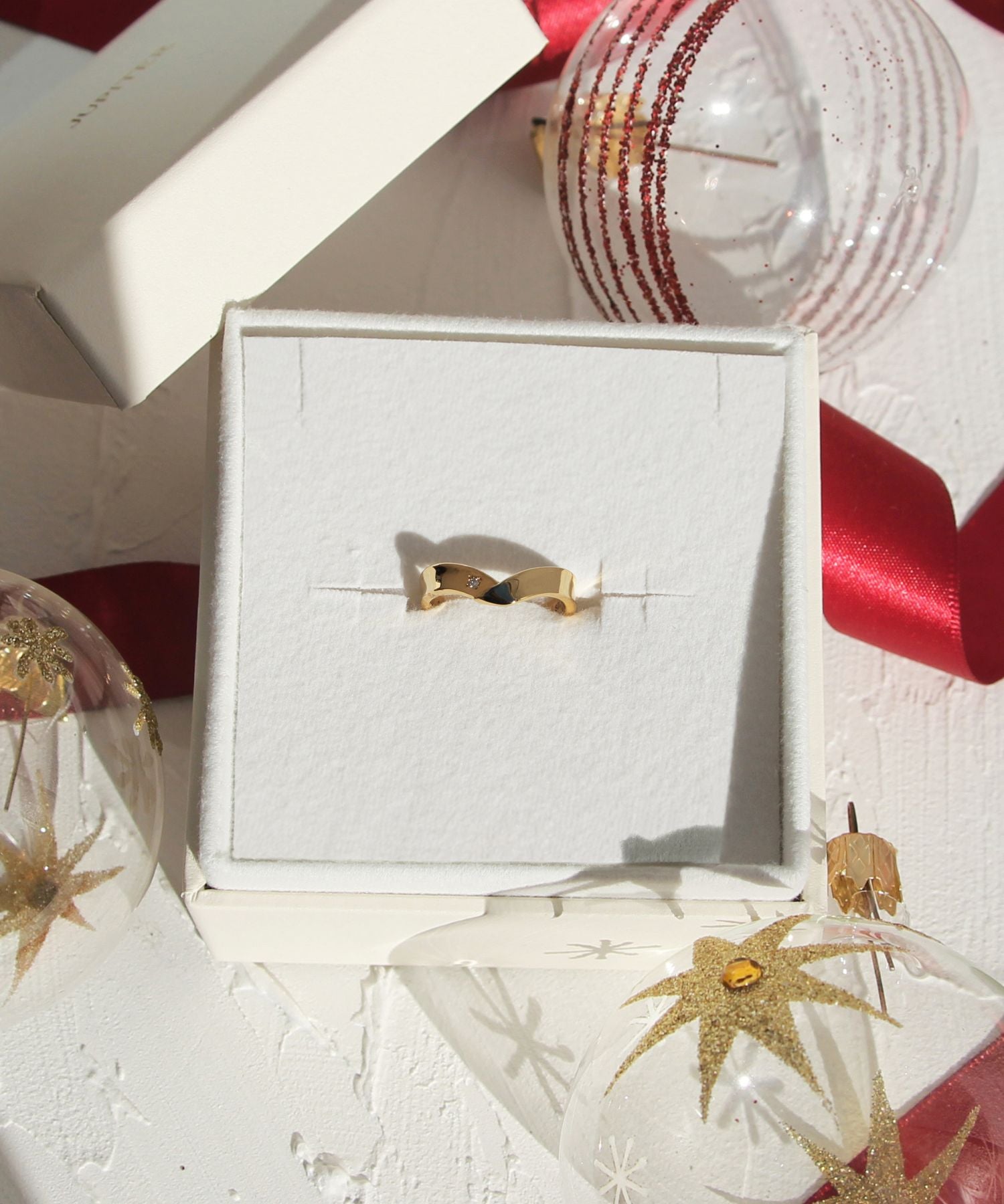 一粒のダイヤモンドがさりげなく輝き、女性らしい手元を演出します。毎日身に着けていたくなるようなベーシックデザインは、日常使いに最適です。