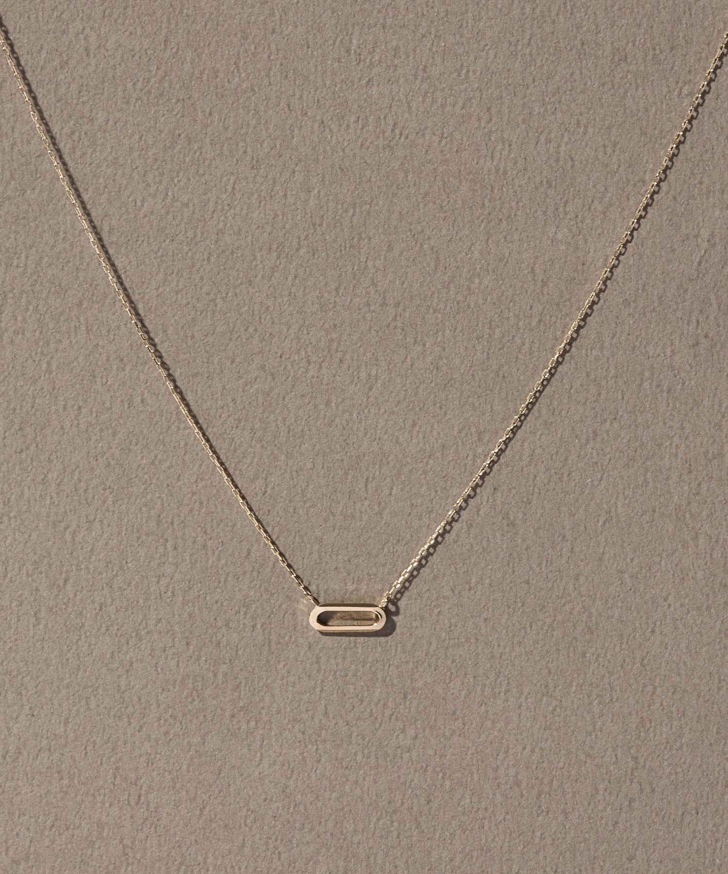 ナイフの刃を思わせるシャープなカットが印象的なオーバルモチーフのネックレス。