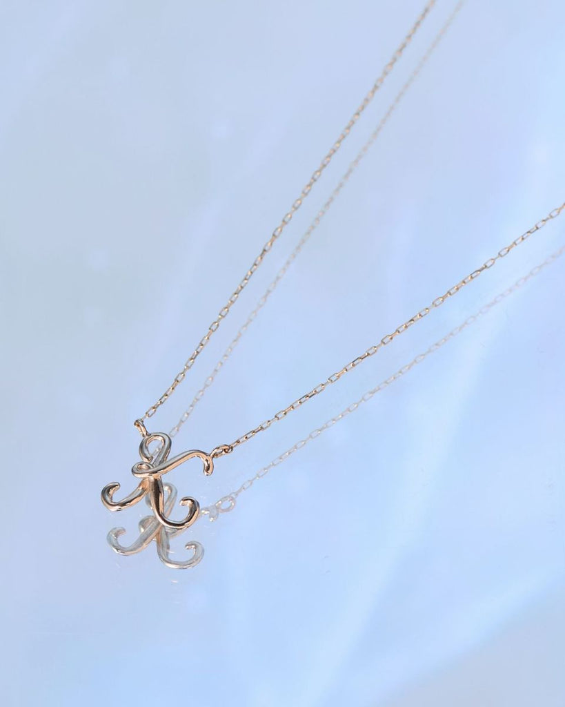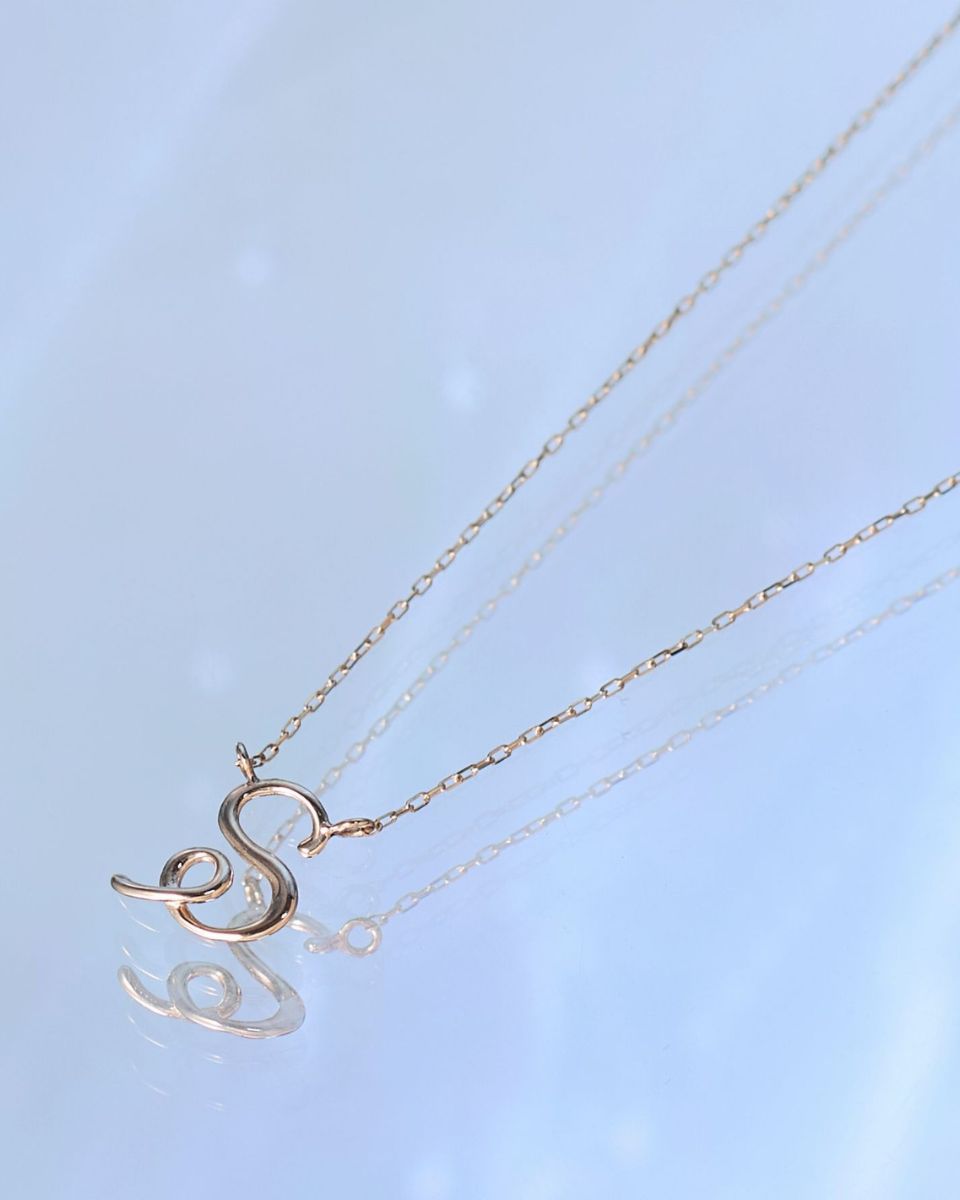 一筆書きのような柔らかいフォルムのイニシャルネックレス