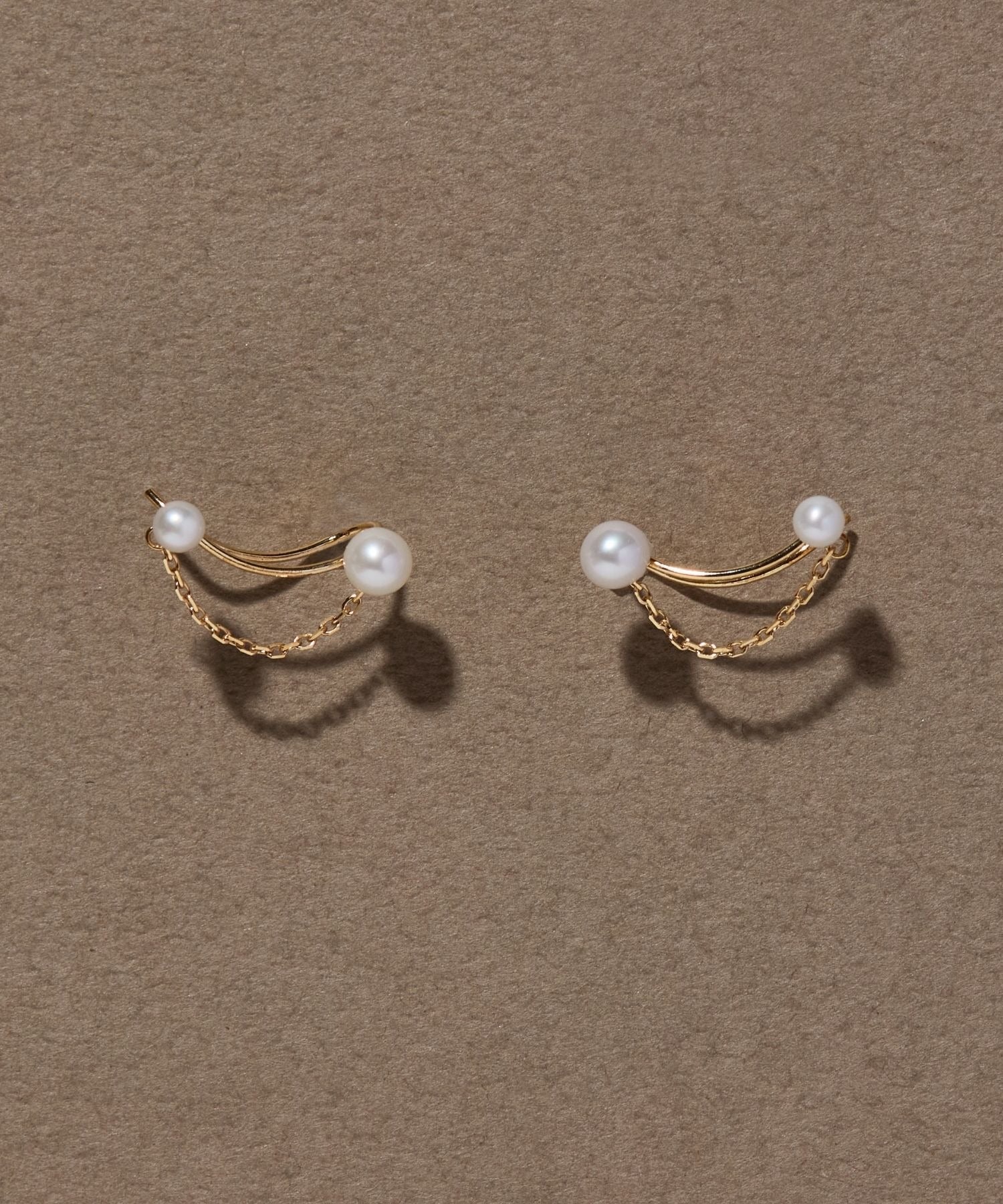 大小の淡水パールを架け橋に見立て金線で繋いだイヤリング