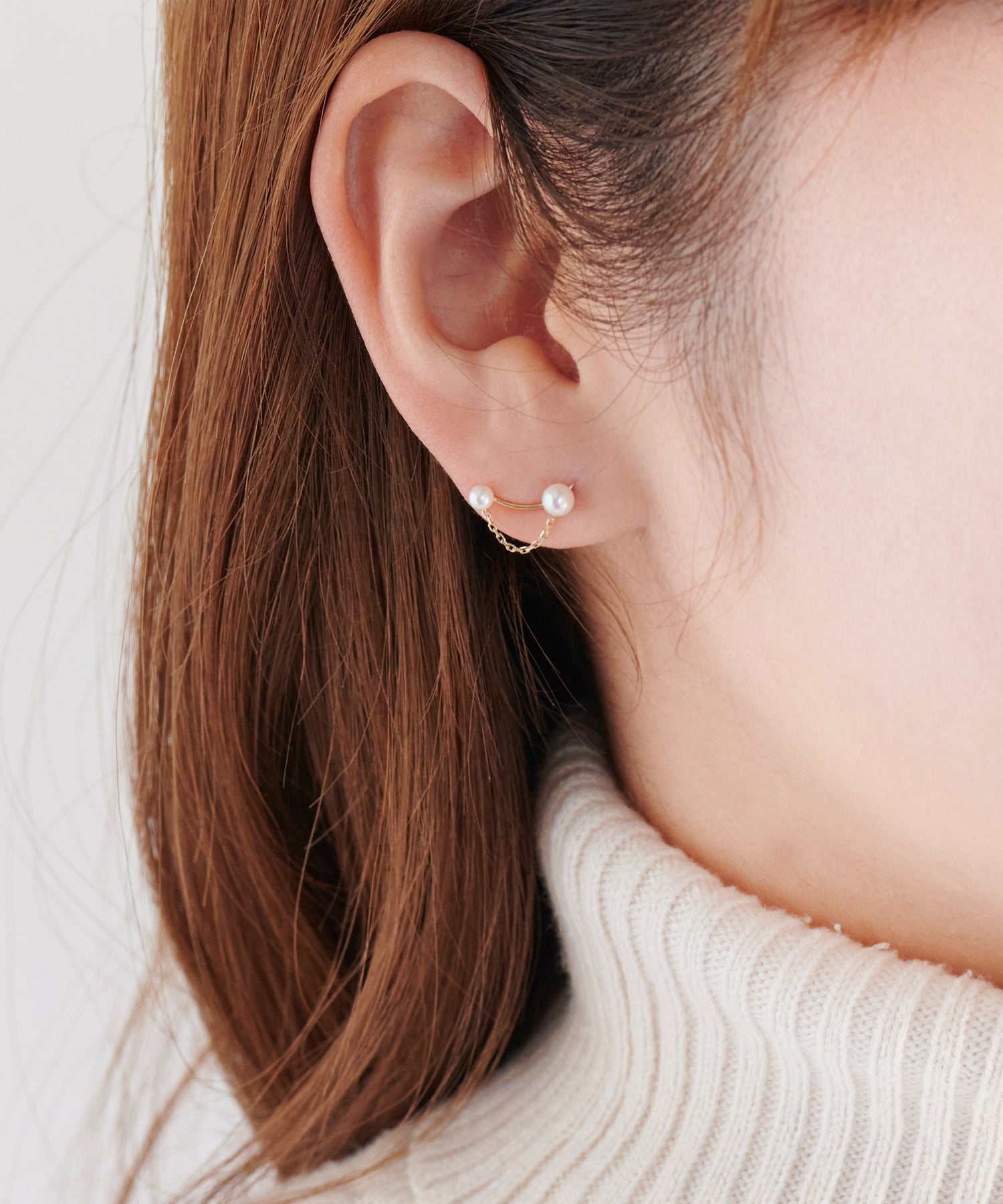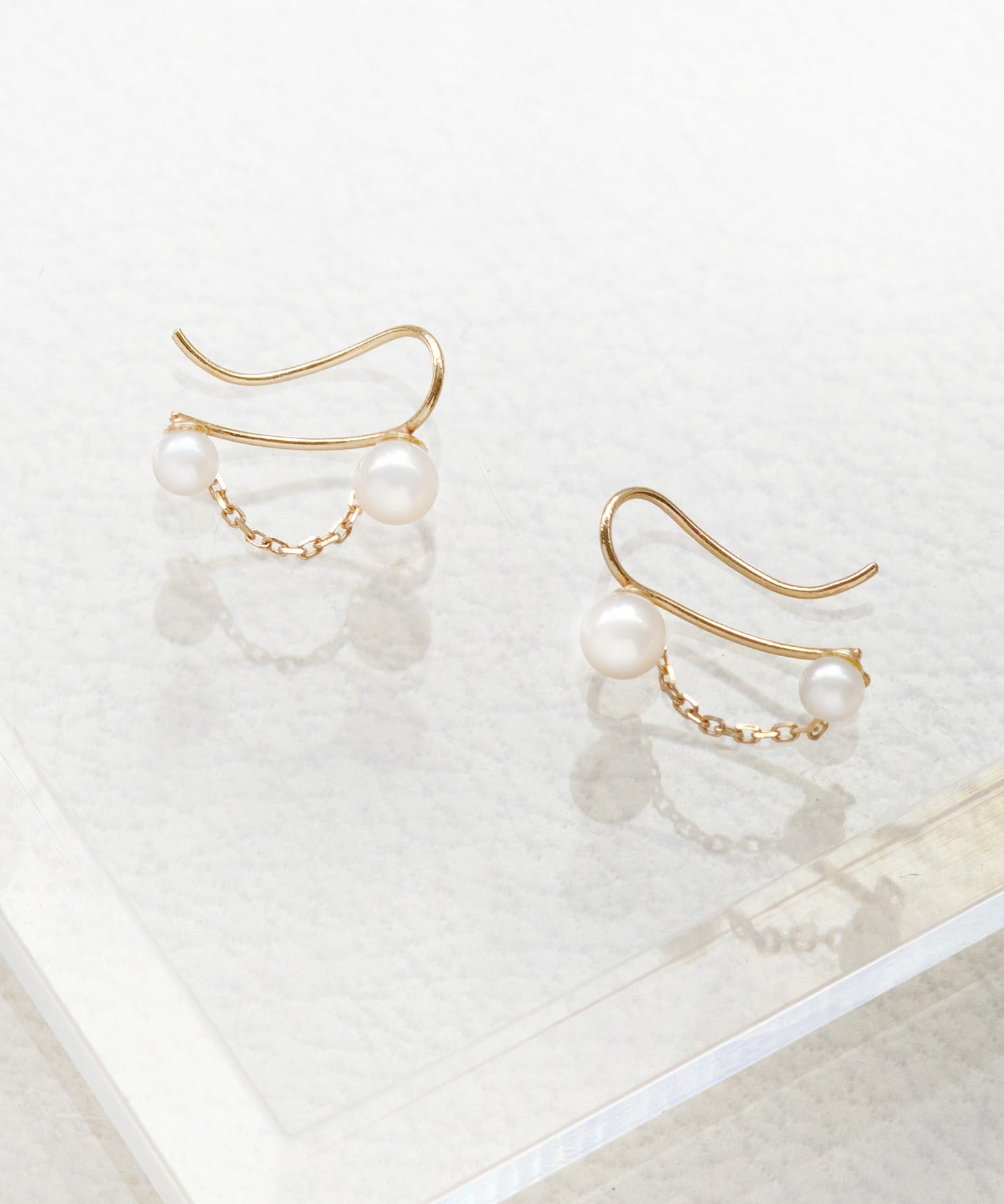 大きさの違うパール使いと揺らめくチェーンが繊細で上品な印象を与えます。