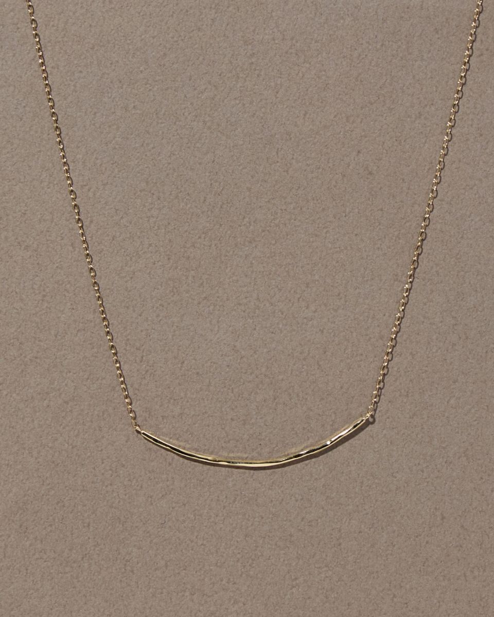角度によって輝きが変化する、緩やかなカーブデザインの大人シンプルネックレス