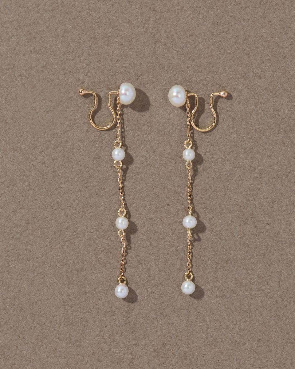 耳元で揺れるパールが目を惹き、上品で繊細な印象に魅せてくれます。