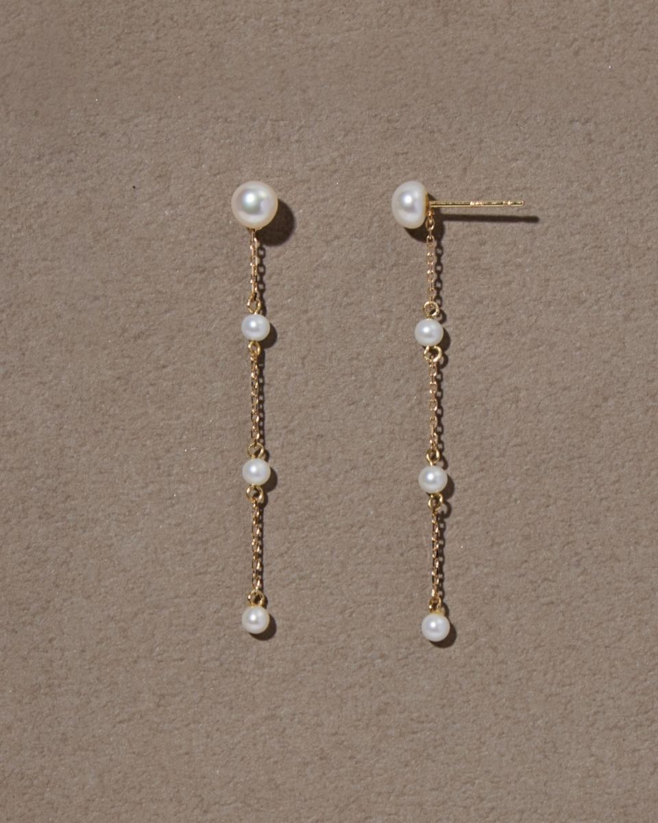 耳元で揺れるパールが目を惹き、上品で繊細な印象に魅せてくれます。