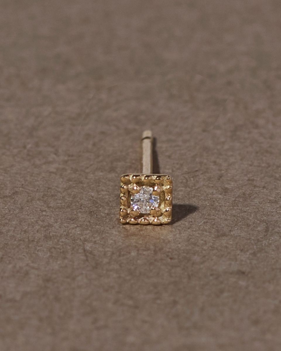 ダイヤモンドをスクエアフレームにセッティングした1粒タイプのピアス