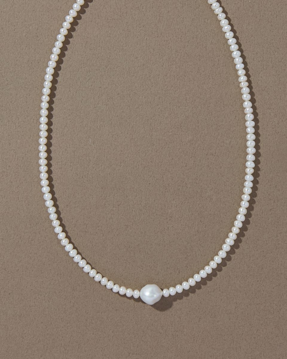 バロックパールと小粒の淡水パールが織りなす胸元を彩るネックレス