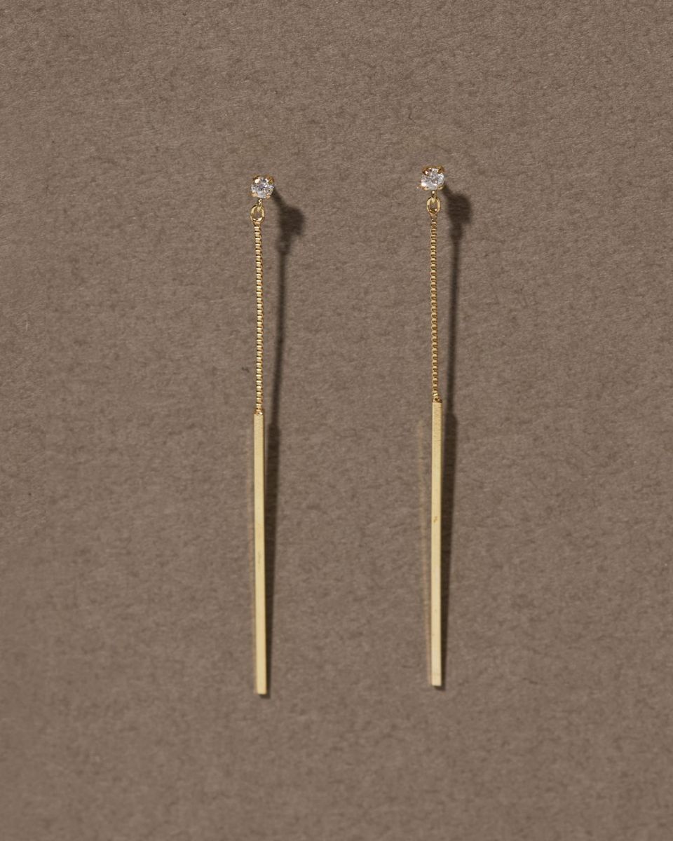 一粒ダイヤモンドが煌めくK10シンプルロングピアス