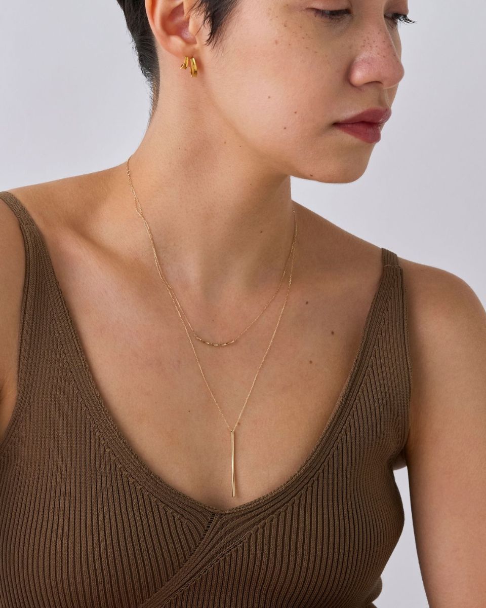 チェーンネックレスや1粒ダイヤモンドなど、重ね着けにも活躍します。