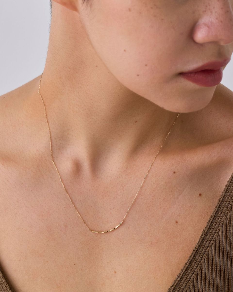 ゴールドの地金をアーチ状にツイストしたネックレス