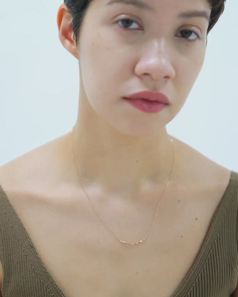 優しい色合いとシンプルなシルエットがデコルテに上品な輝きを添えます。