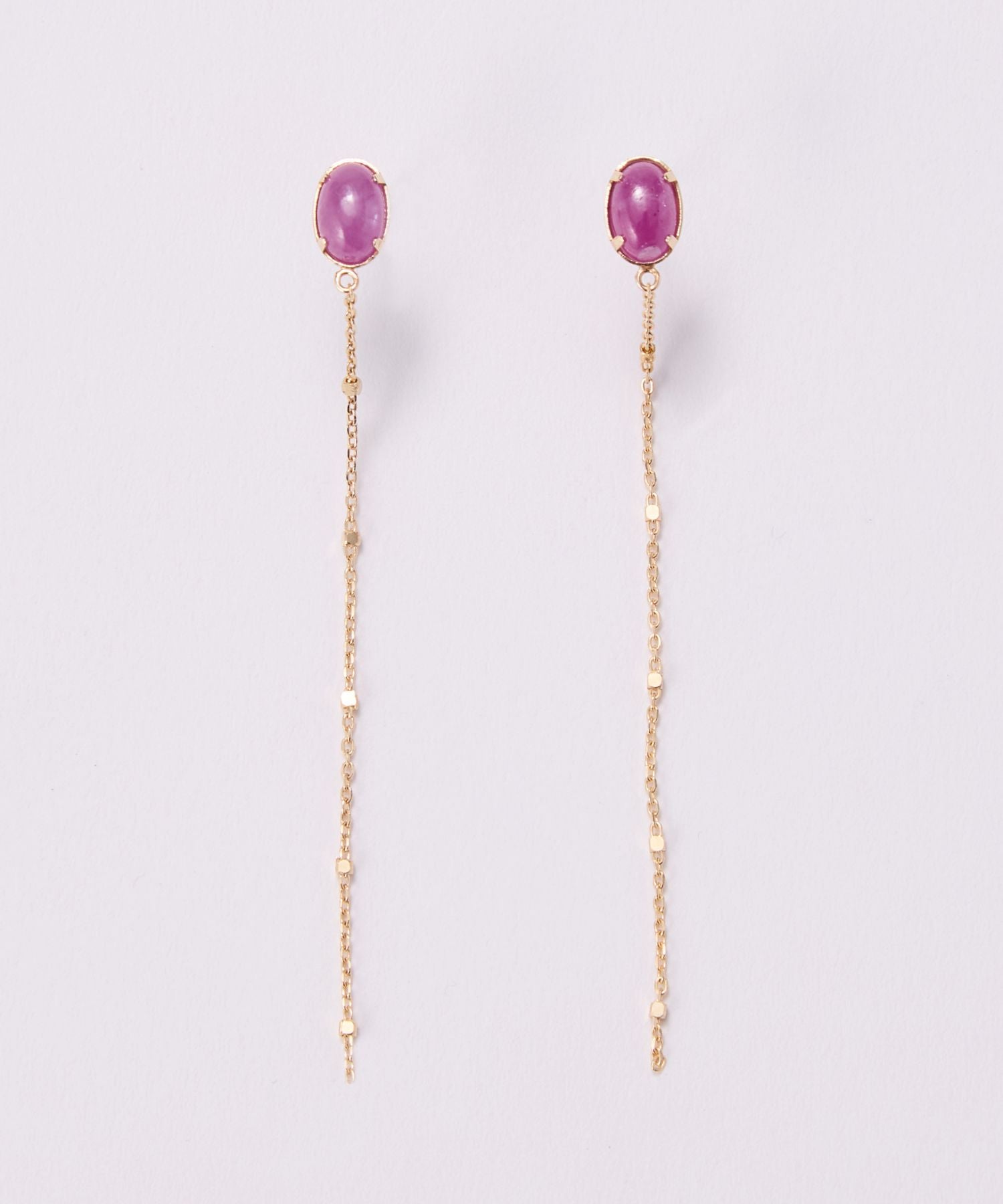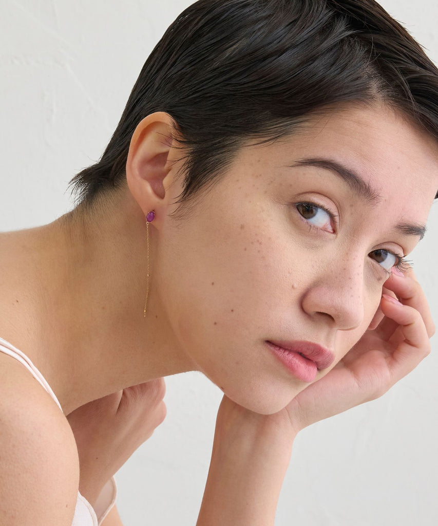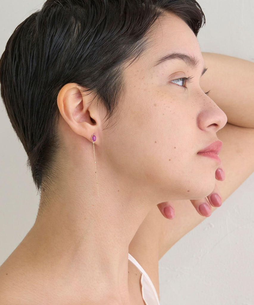デザインチェーンが耳元で揺れ、上品さと動きを与えます。