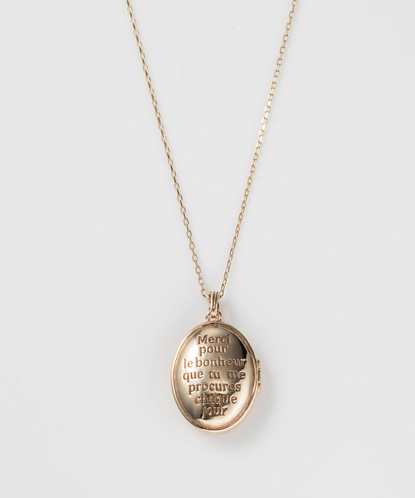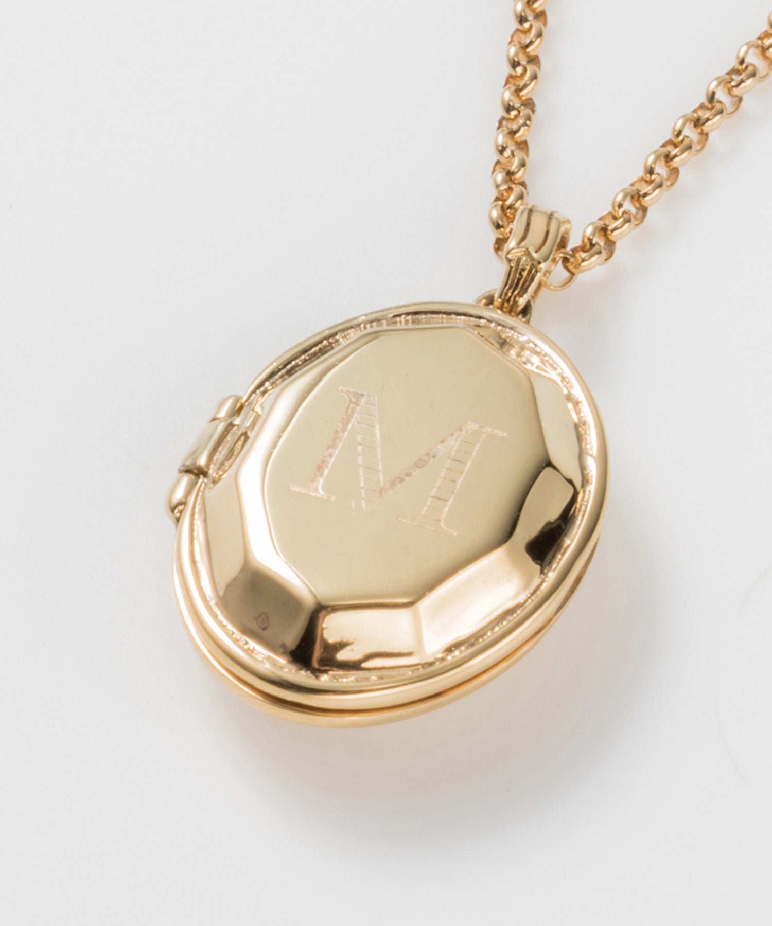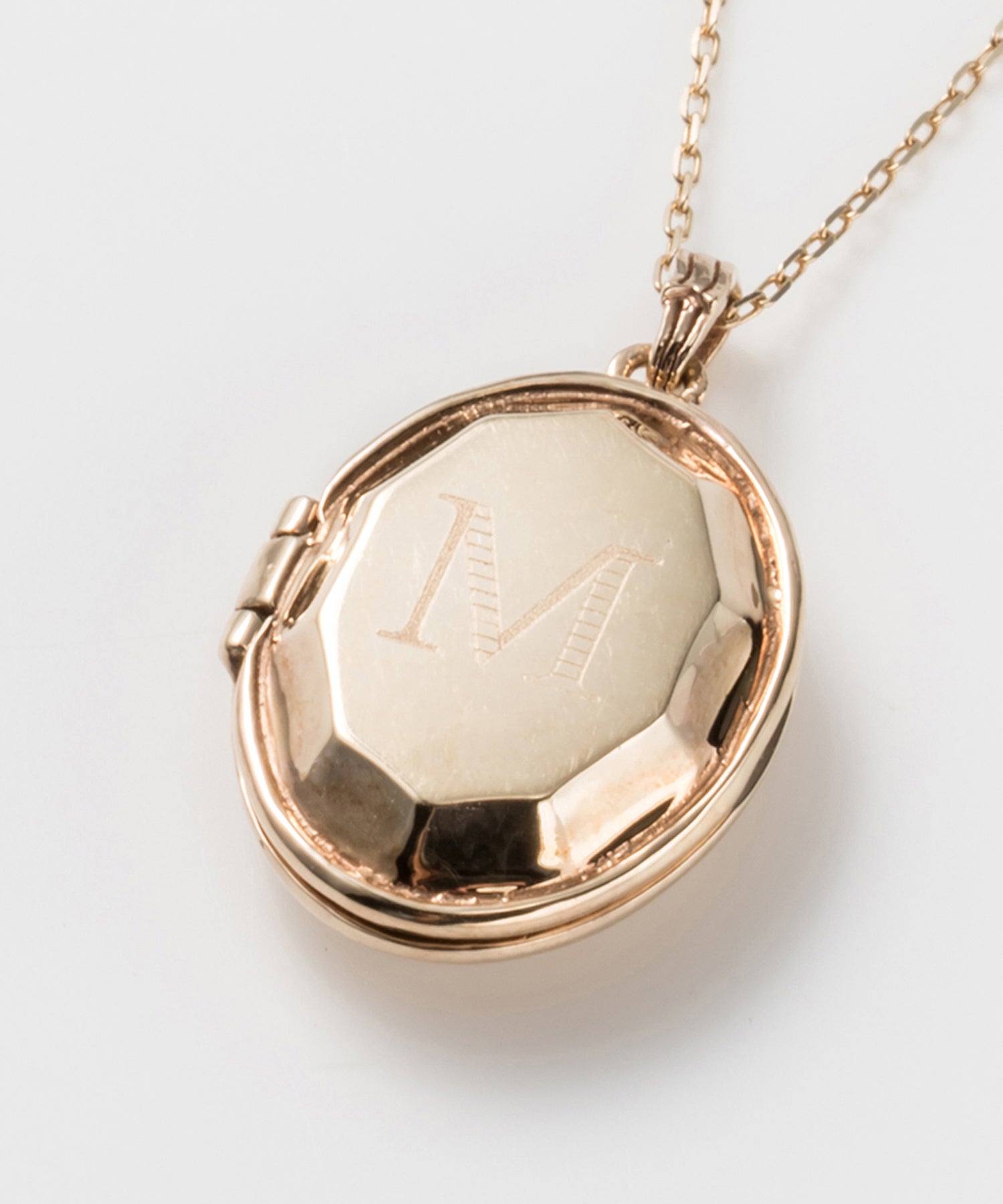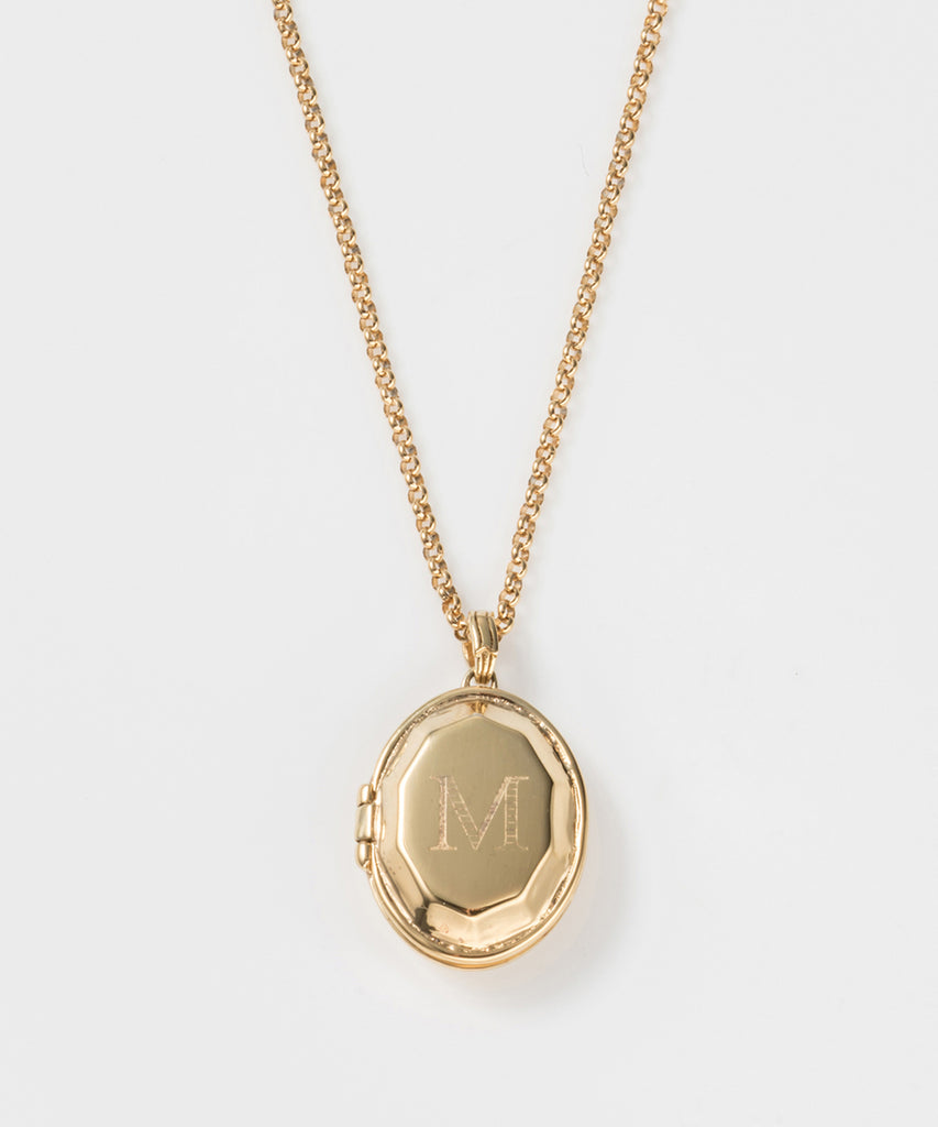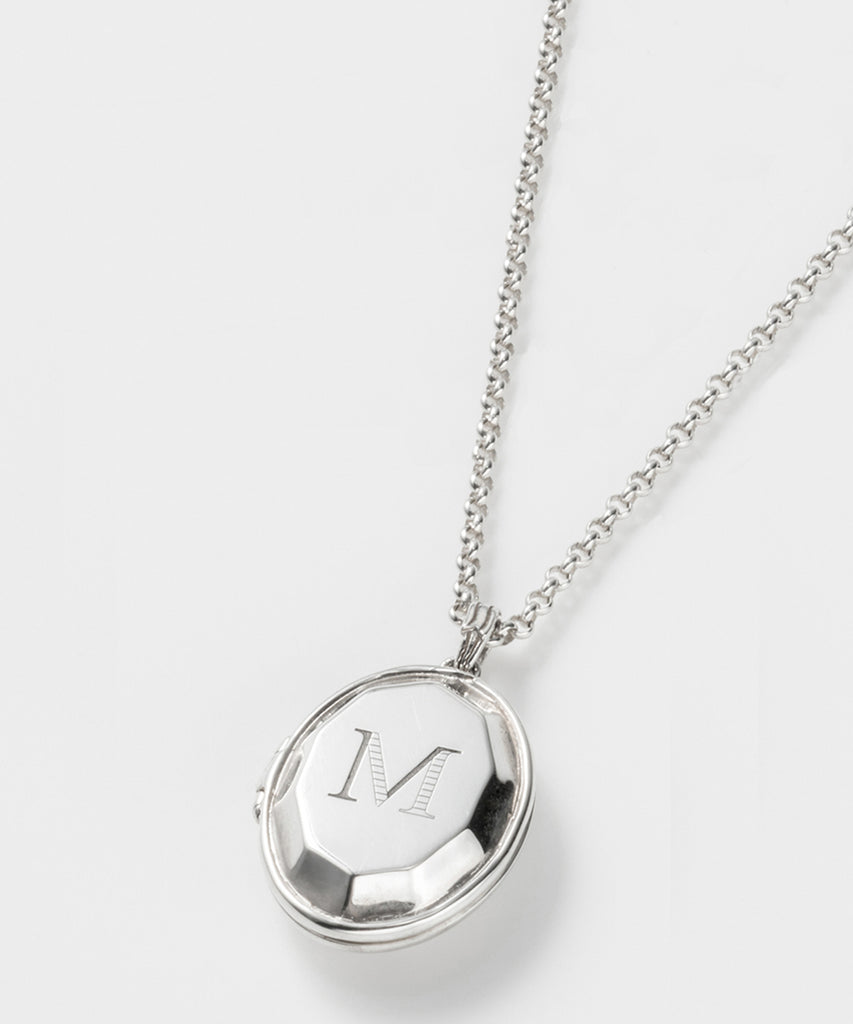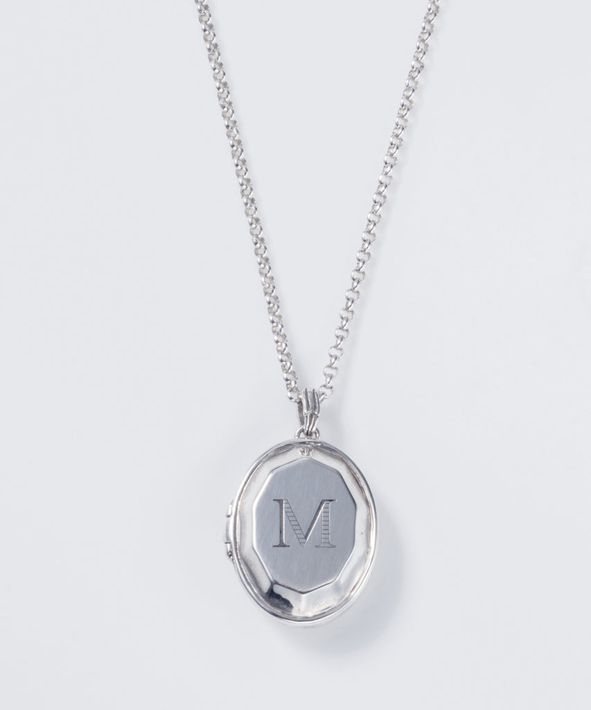 ロケットネックレスの表にイニシャルと、内側にお名前や日付を刻印できます。